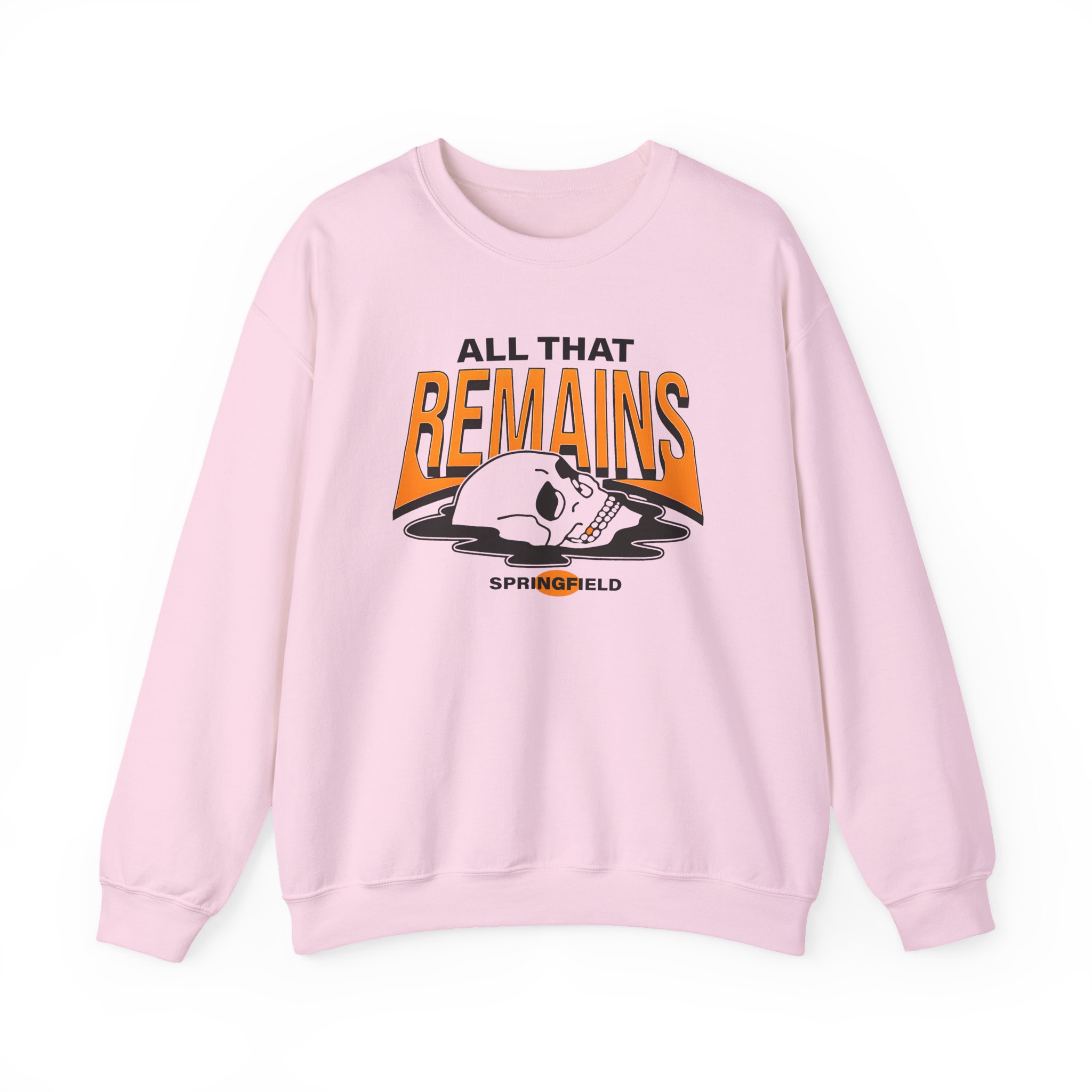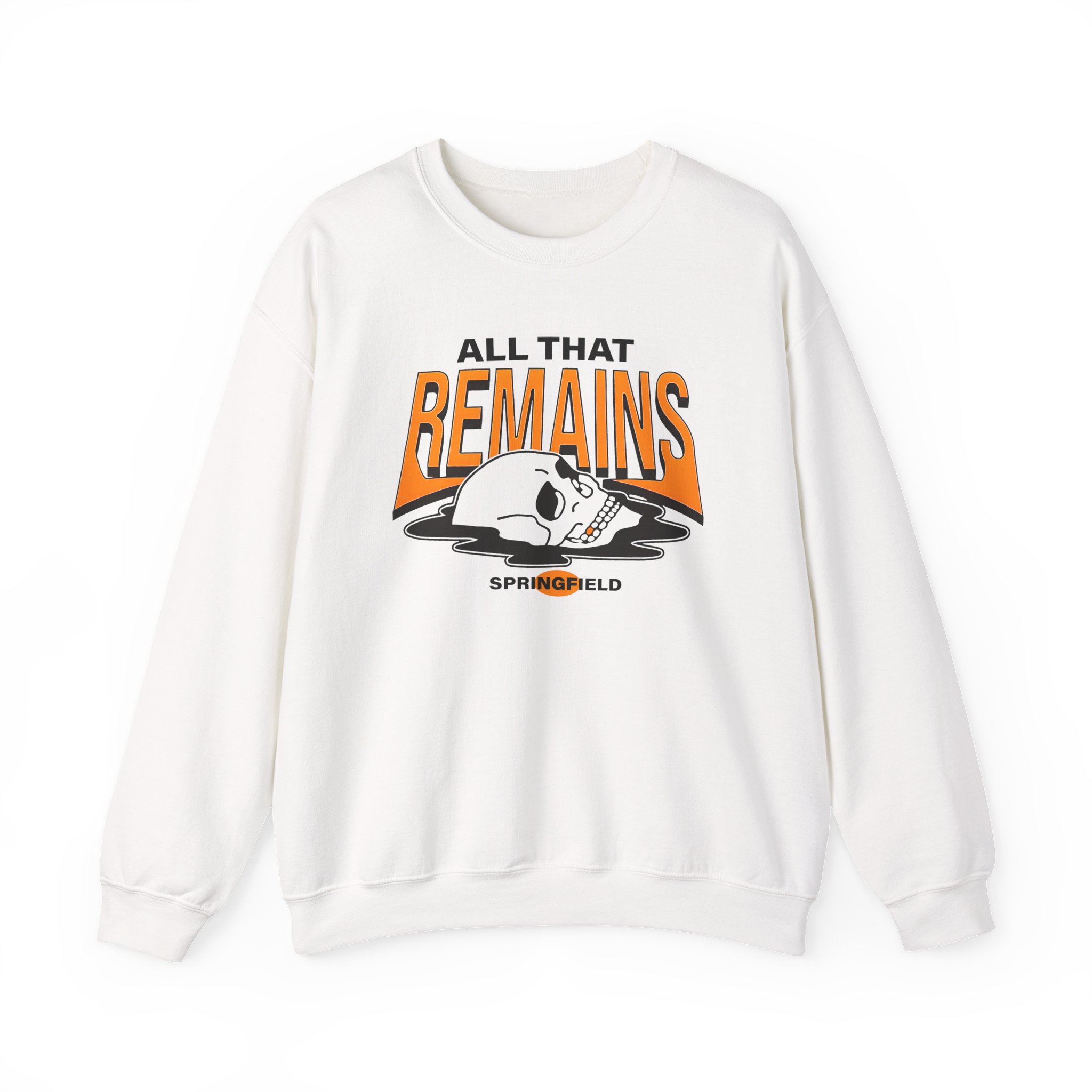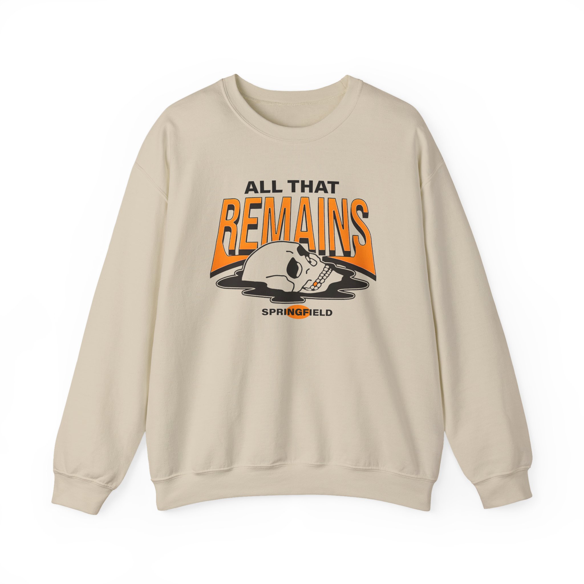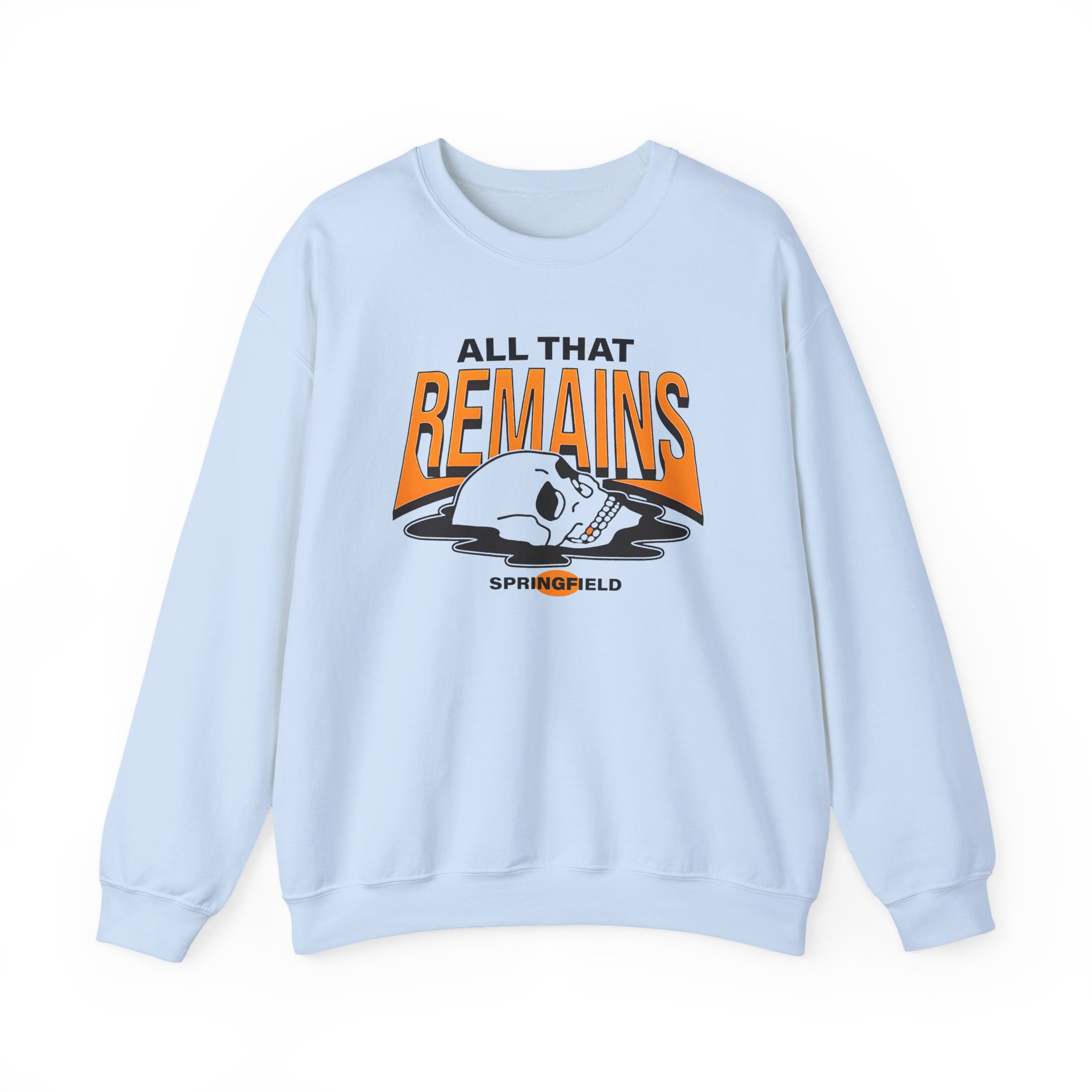 Ideal for any situation, a All That Remains Springfield Skull unisex heavy blend crewneck sweatshirt is pure comfort. These garments are made from polyester and cotton. This combination helps designs come out looking fresh and beautiful. The collar is ribbed knit, so it retains its shape even after washing. There are no itchy side seams on these sweaters.