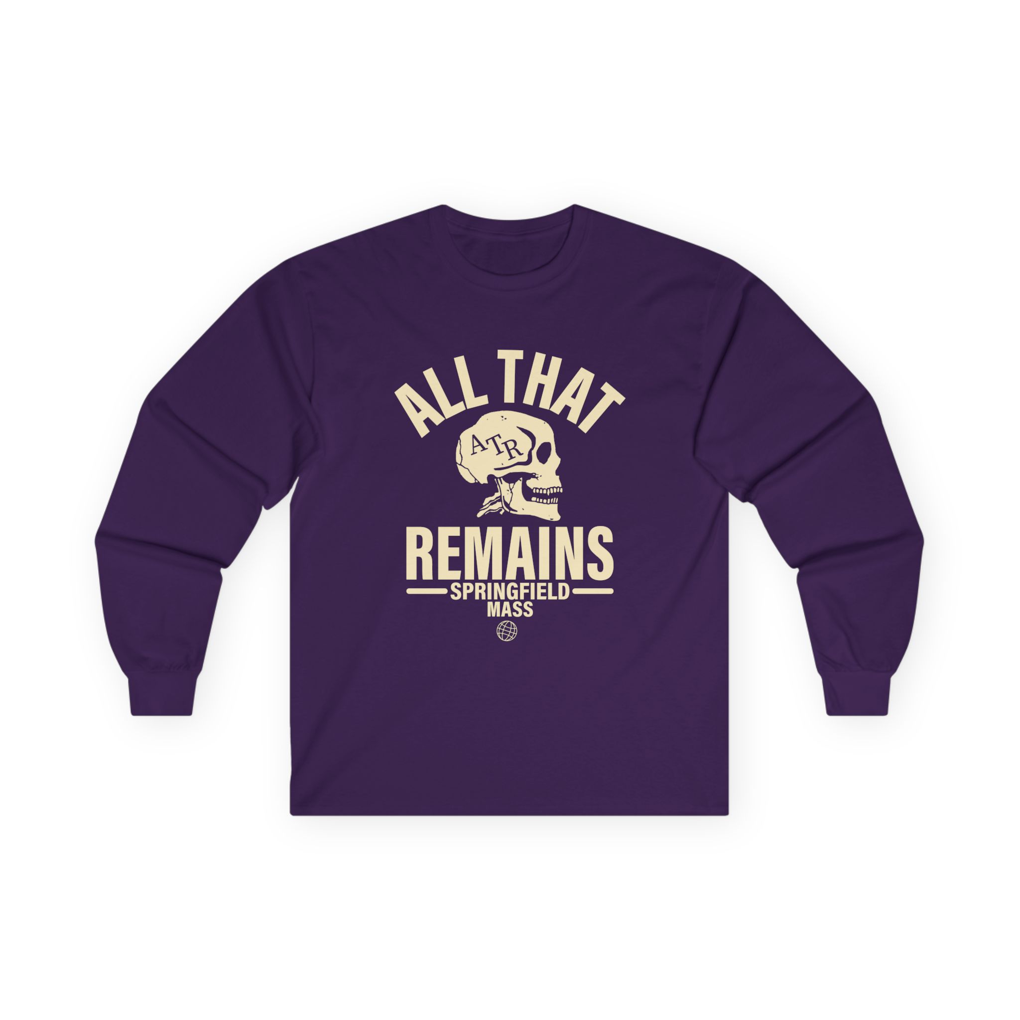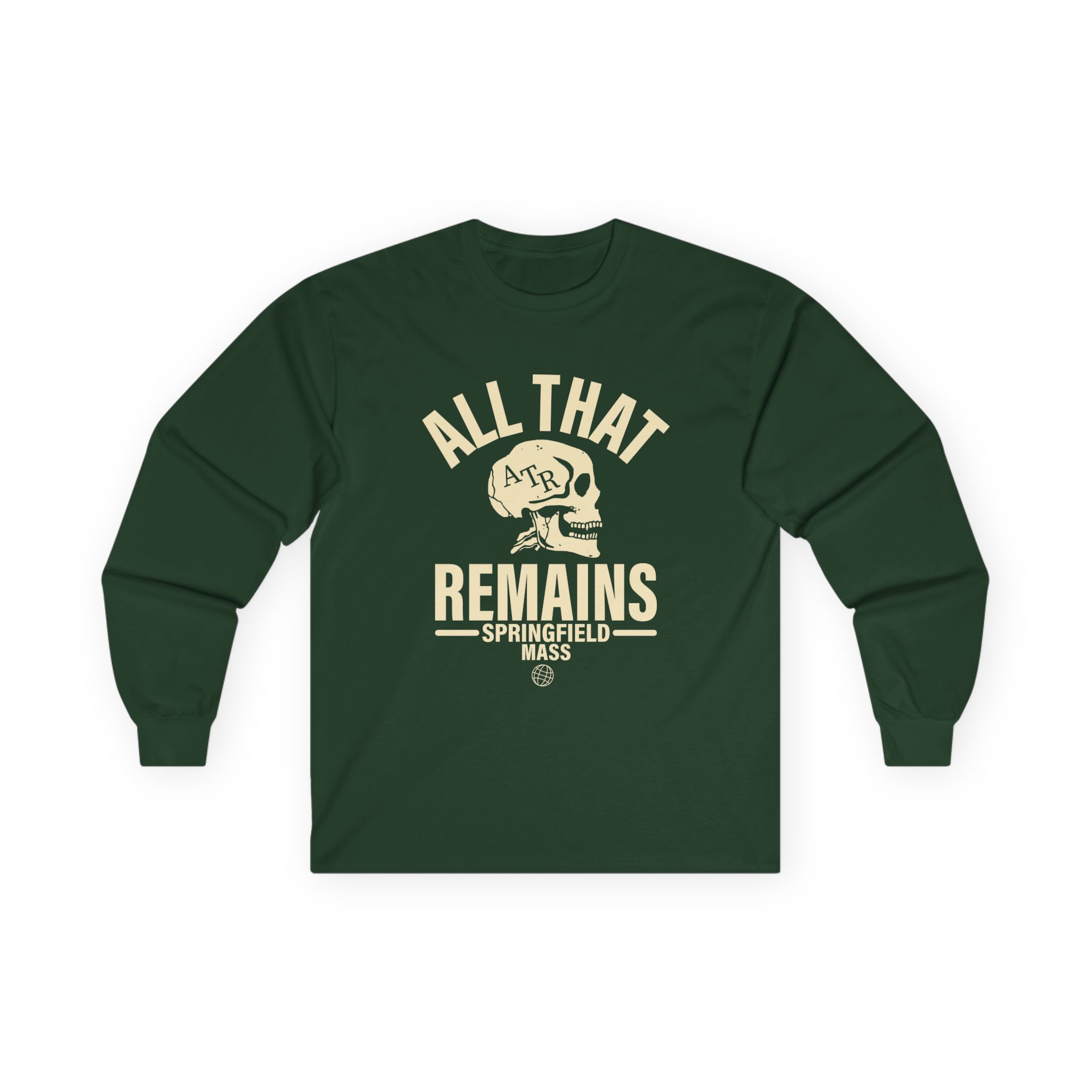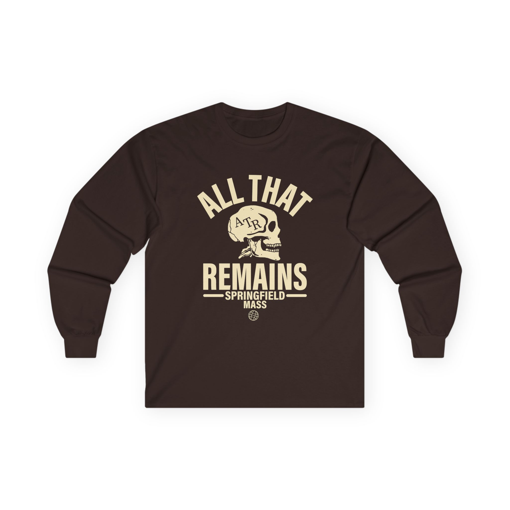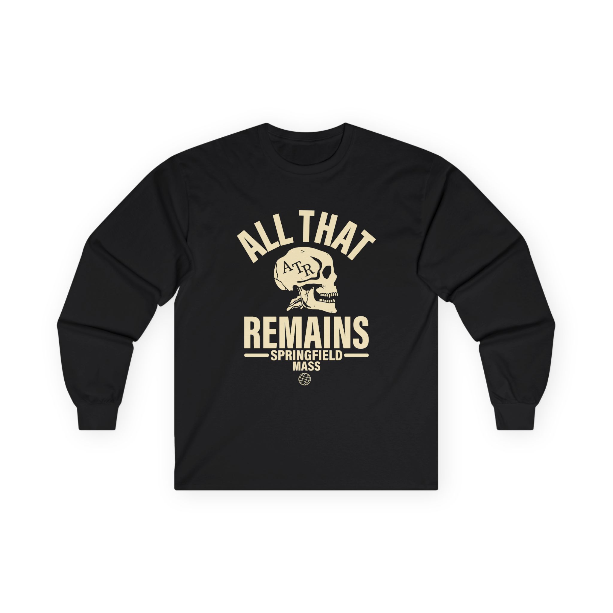 A bit more formal than a standard-issue t-shirt, the All That Remains Springfield Skull ultra cotton long sleeve tee is a clear comfort winner. The sleeves also act as a nice frame. There are no side seams. The shoulders are taped for improved durability. This makes for a good fitting around the shoulders and neck. The cotton used for these shirts is environmentally friendly.