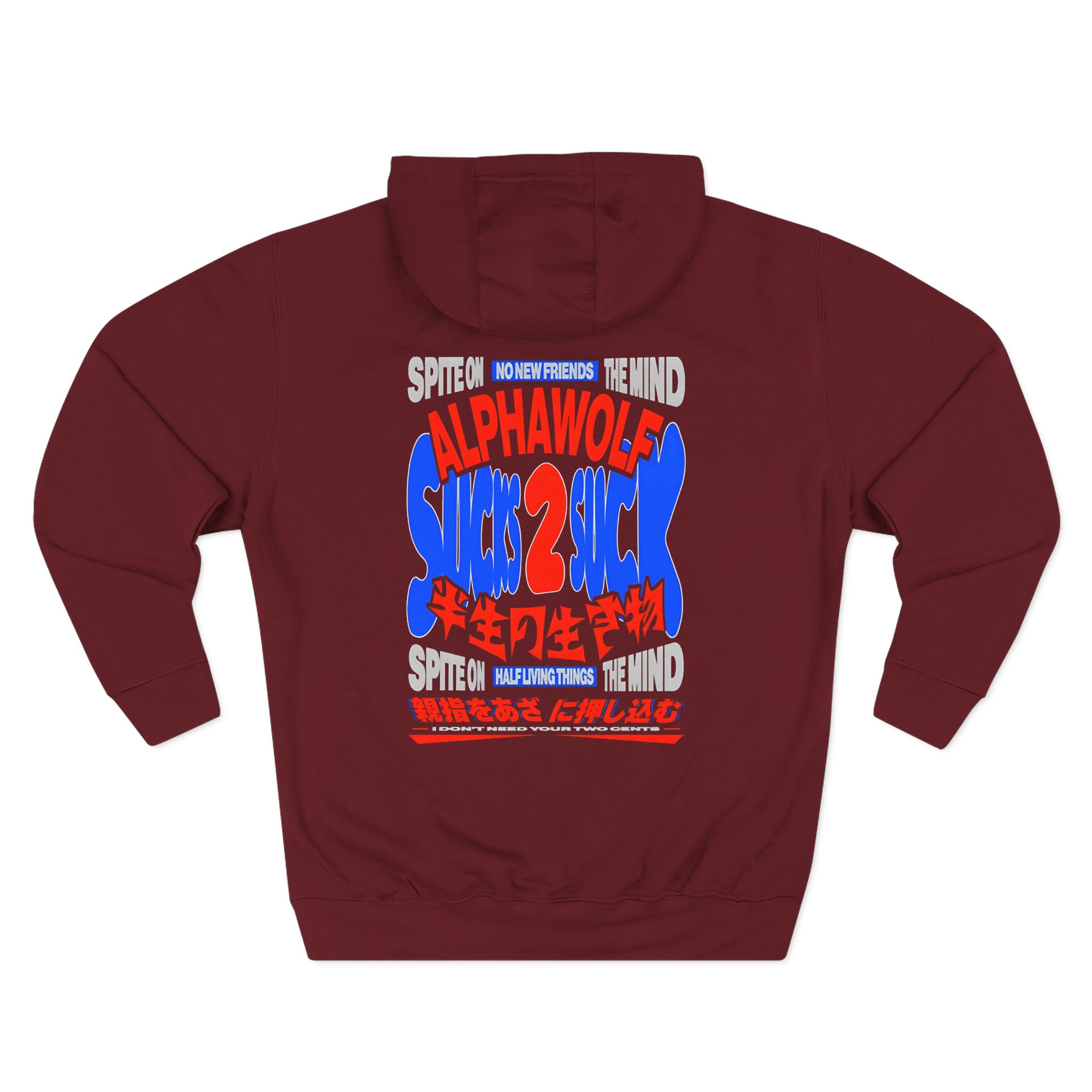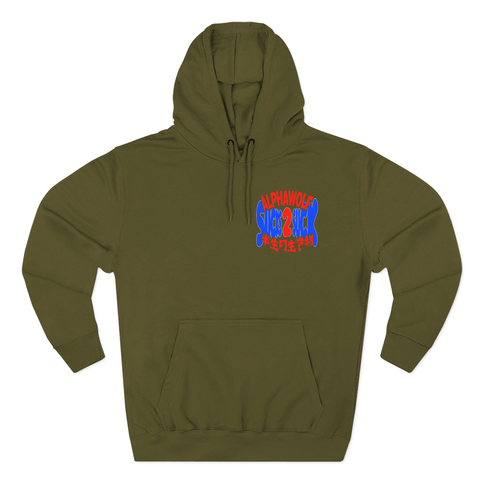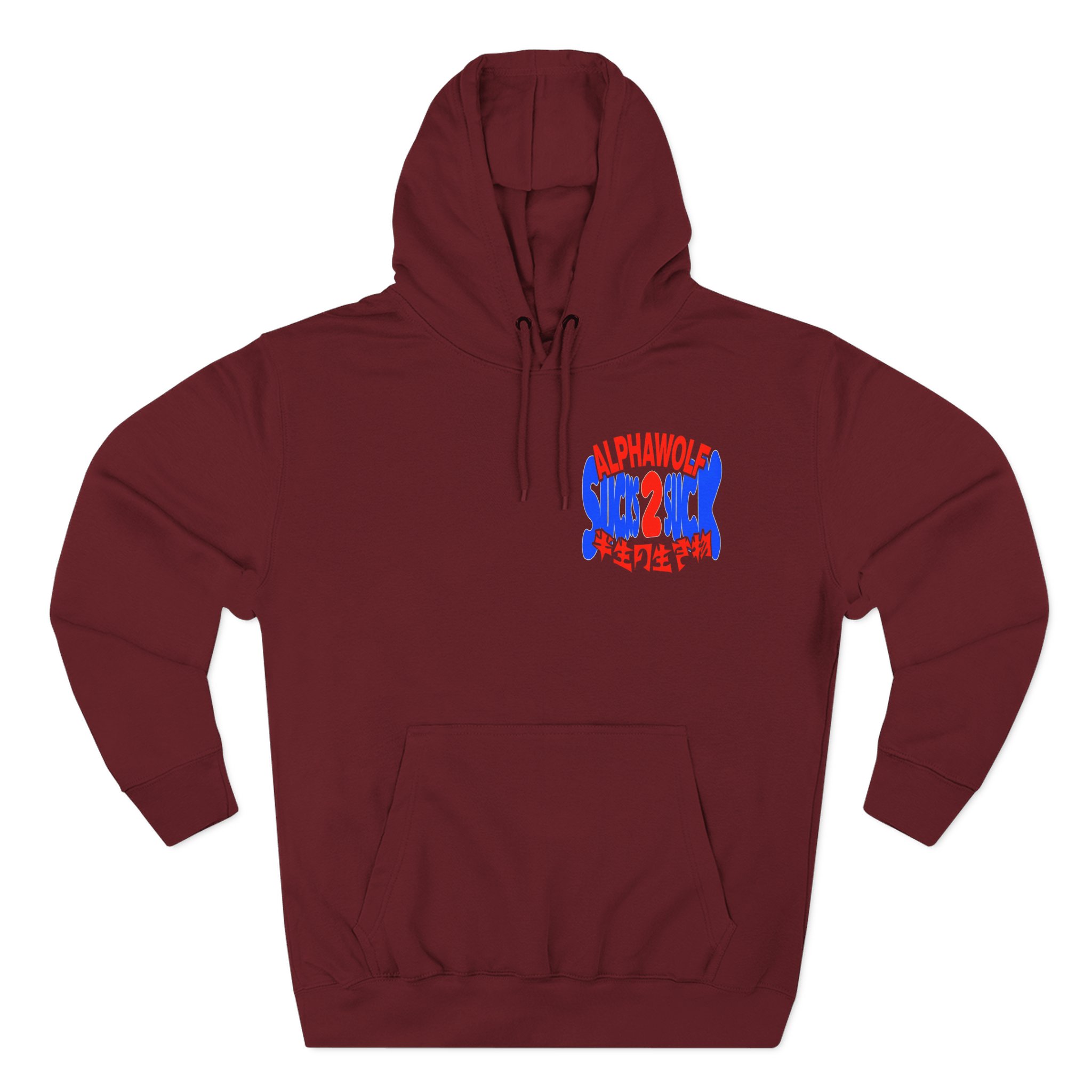 Beat the cold with this Alpha Wolf Sucks 2 Suck premium pullover hoodie that’s just the right layer of warm and cozy. Made with three-panel fleece lining, this pullover is double stitched for durability and roomy. Pick one in your favorite color to match your style.