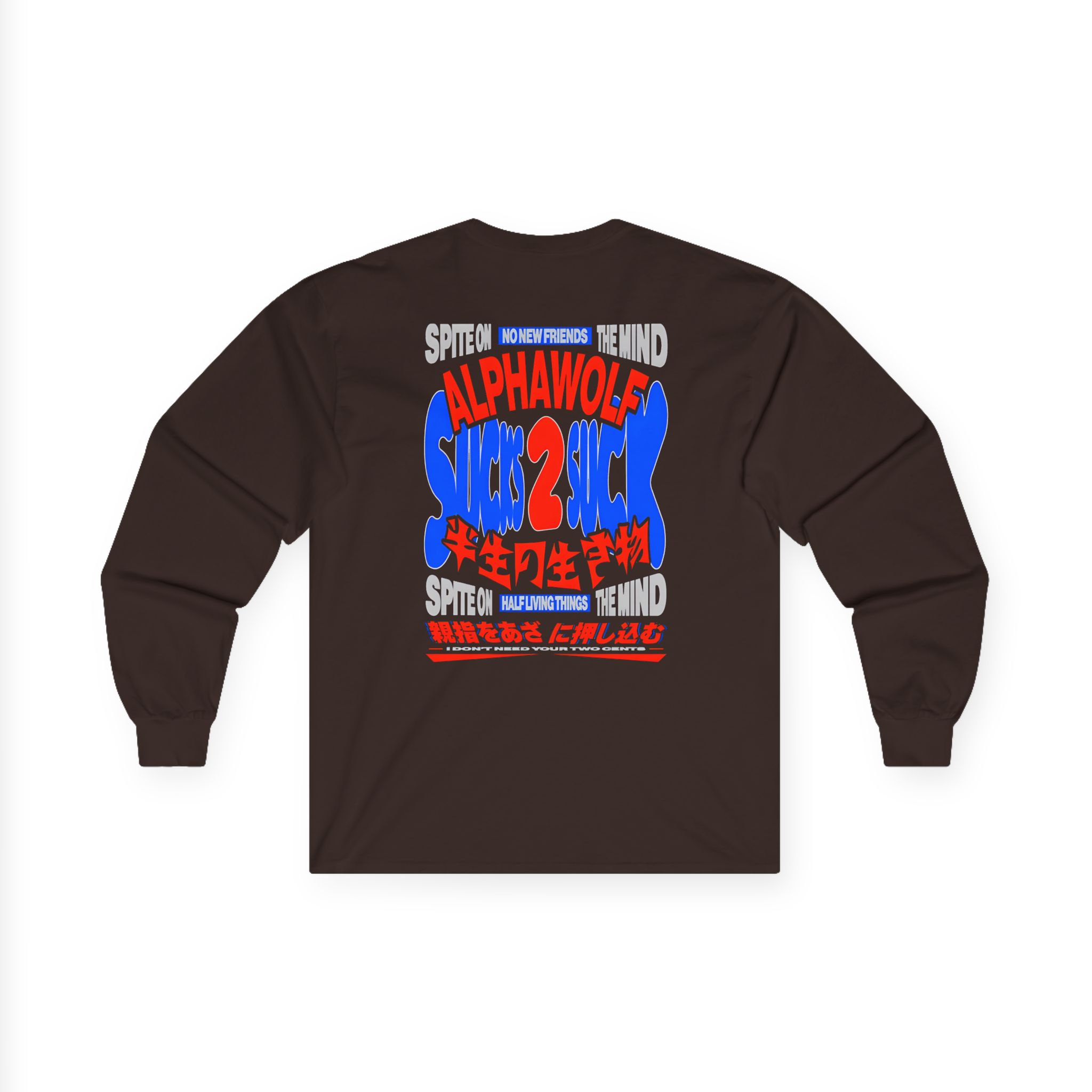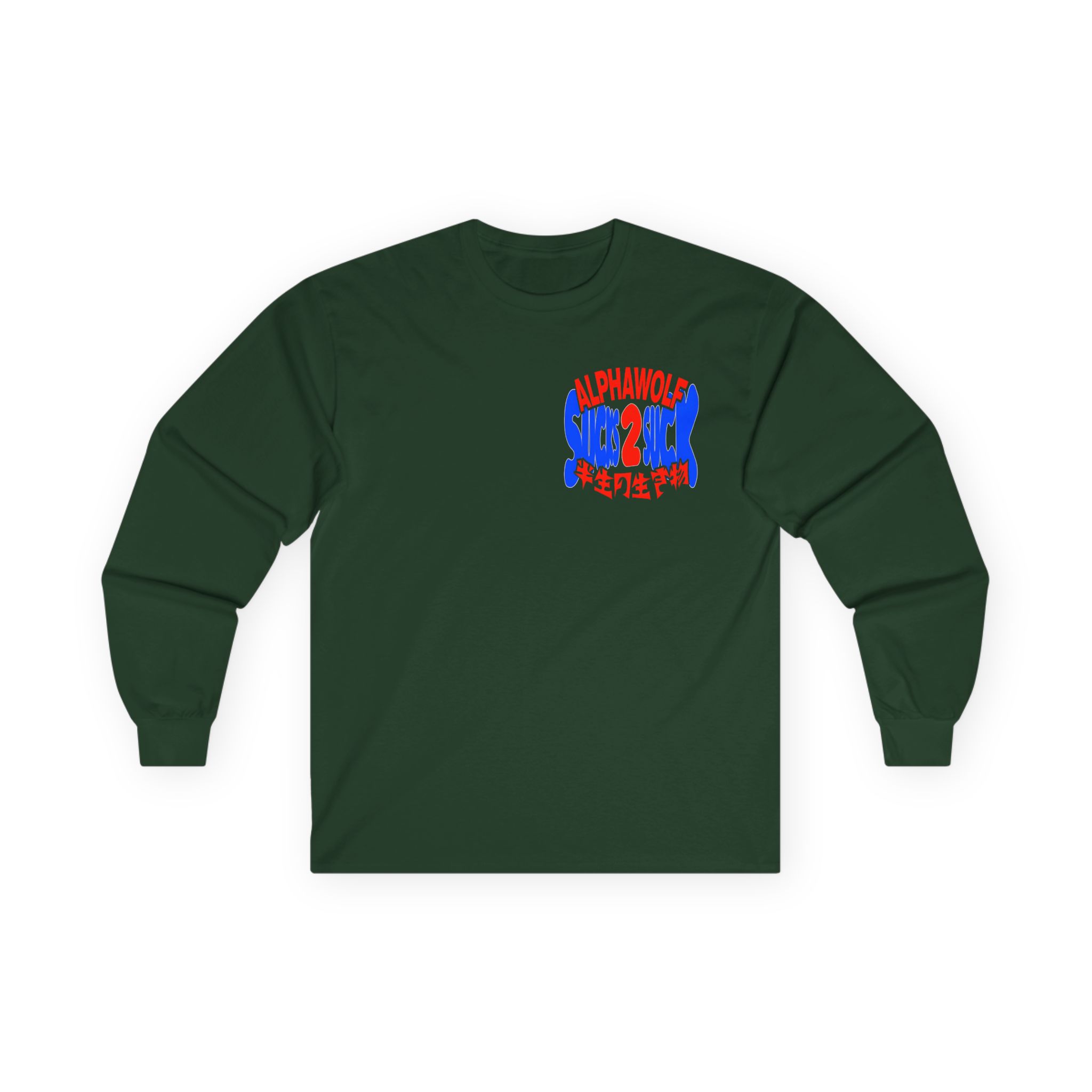 A bit more formal than a standard-issue t-shirt, the Alpha Wolf Sucks 2 Suck ultra cotton long sleeve tee is a clear comfort winner. The sleeves also act as a nice frame. There are no side seams. The shoulders are taped for improved durability. This makes for a good fitting around the shoulders and neck. The cotton used for these shirts is environmentally friendly.
