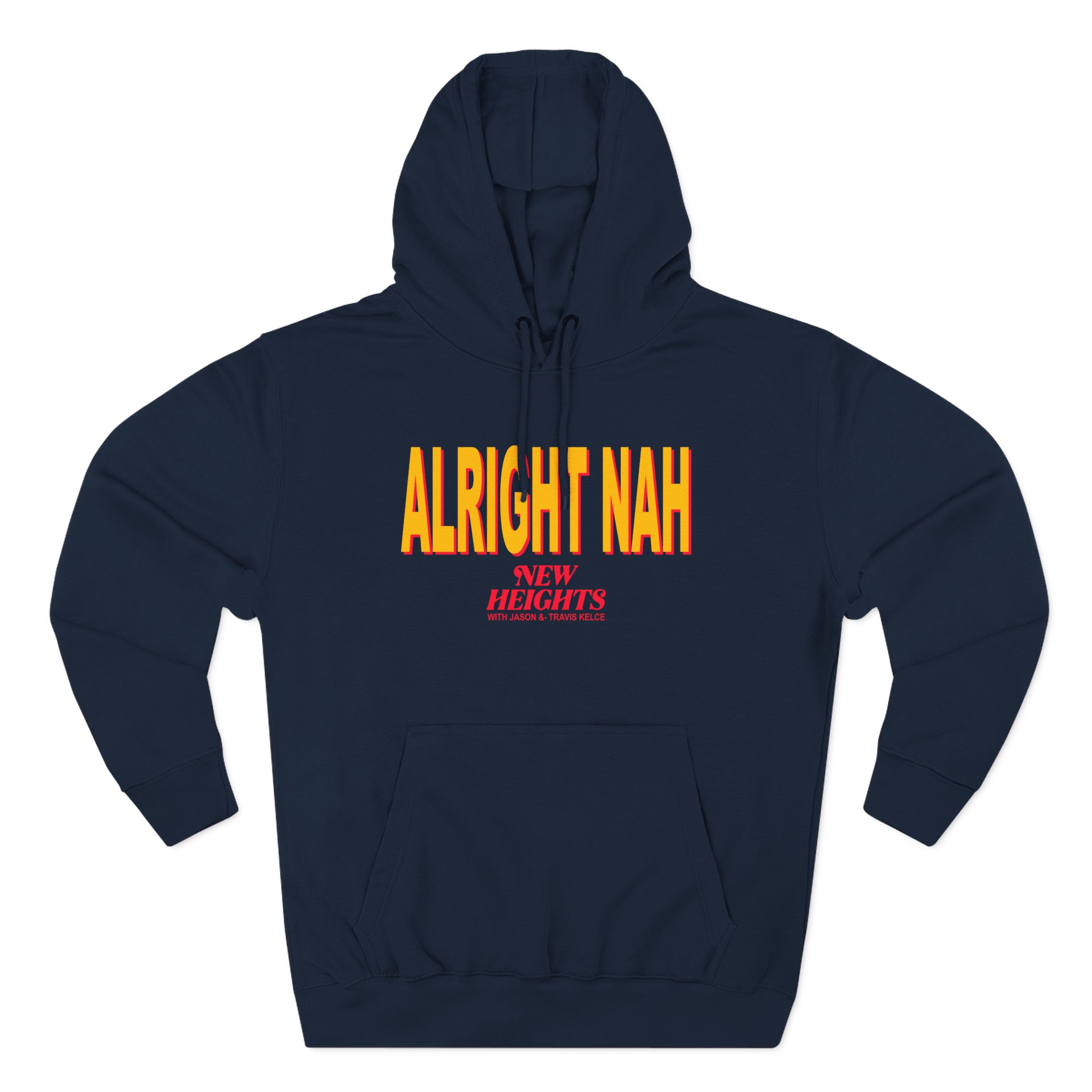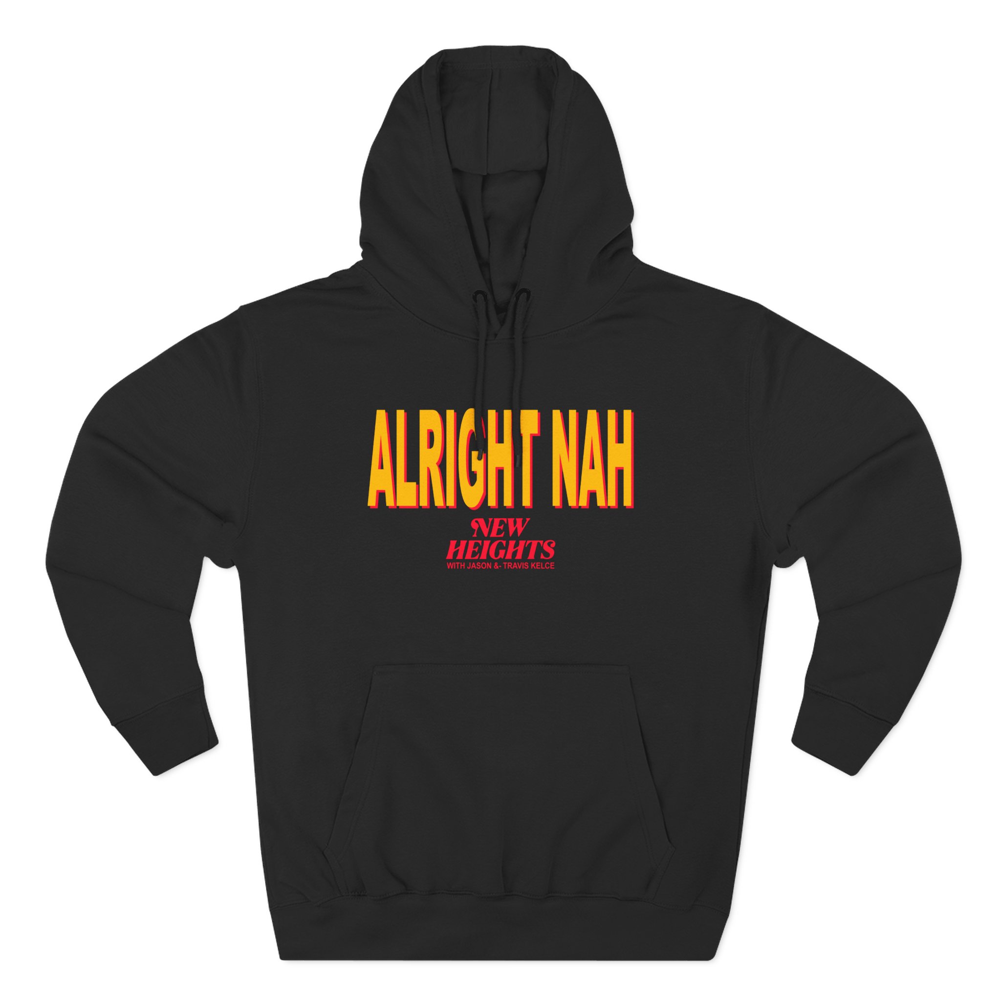 Beat the cold with this Alright Nah New Heights premium pullover hoodie that’s just the right layer of warm and cozy. Made with three-panel fleece lining, this pullover is double stitched for durability and roomy. Pick one in your favorite color to match your style.