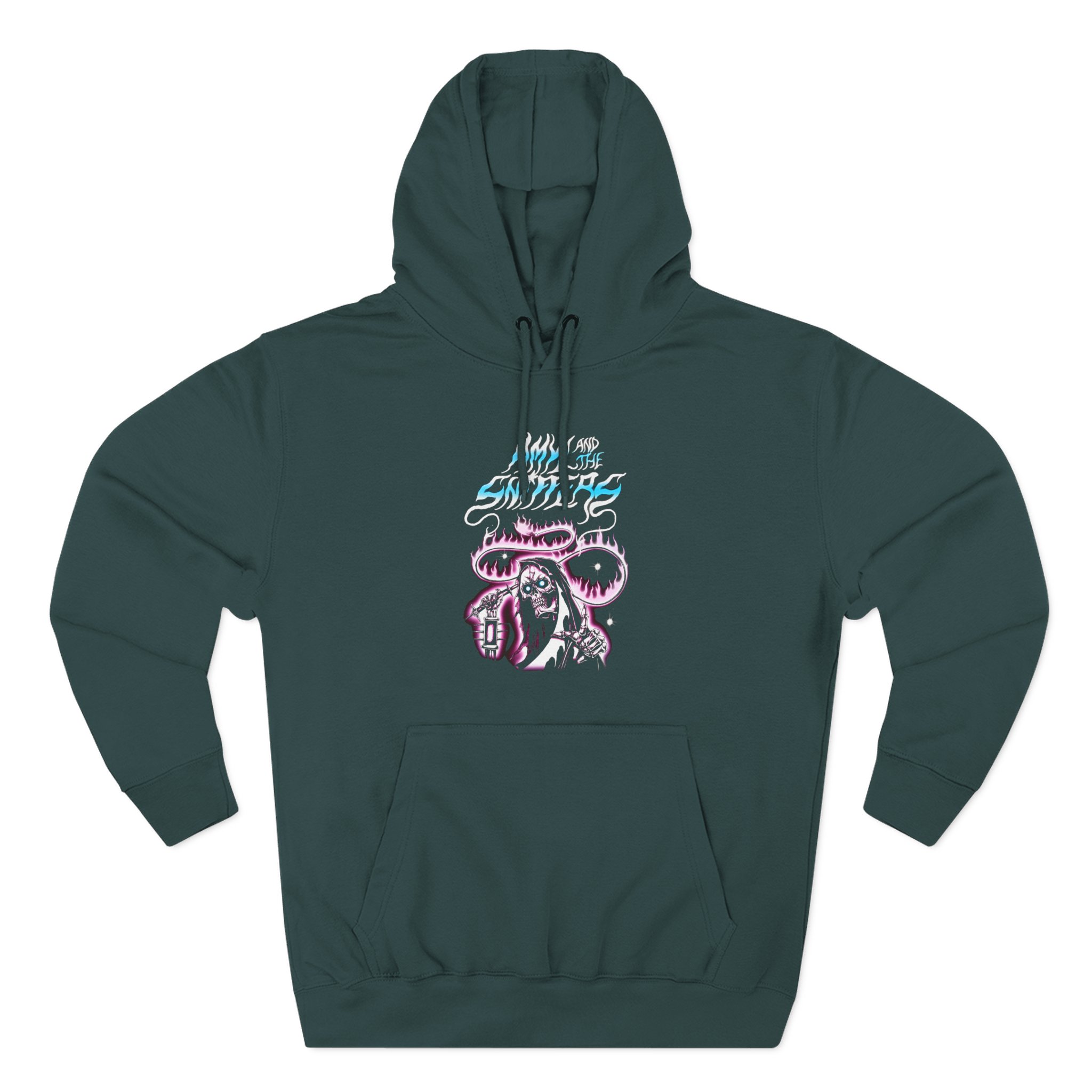 Beat the cold with this Amyl and the Sniffers Reapern premium pullover hoodie that’s just the right layer of warm and cozy. Made with three-panel fleece lining, this pullover is double stitched for durability and roomy. Pick one in your favorite color to match your style.