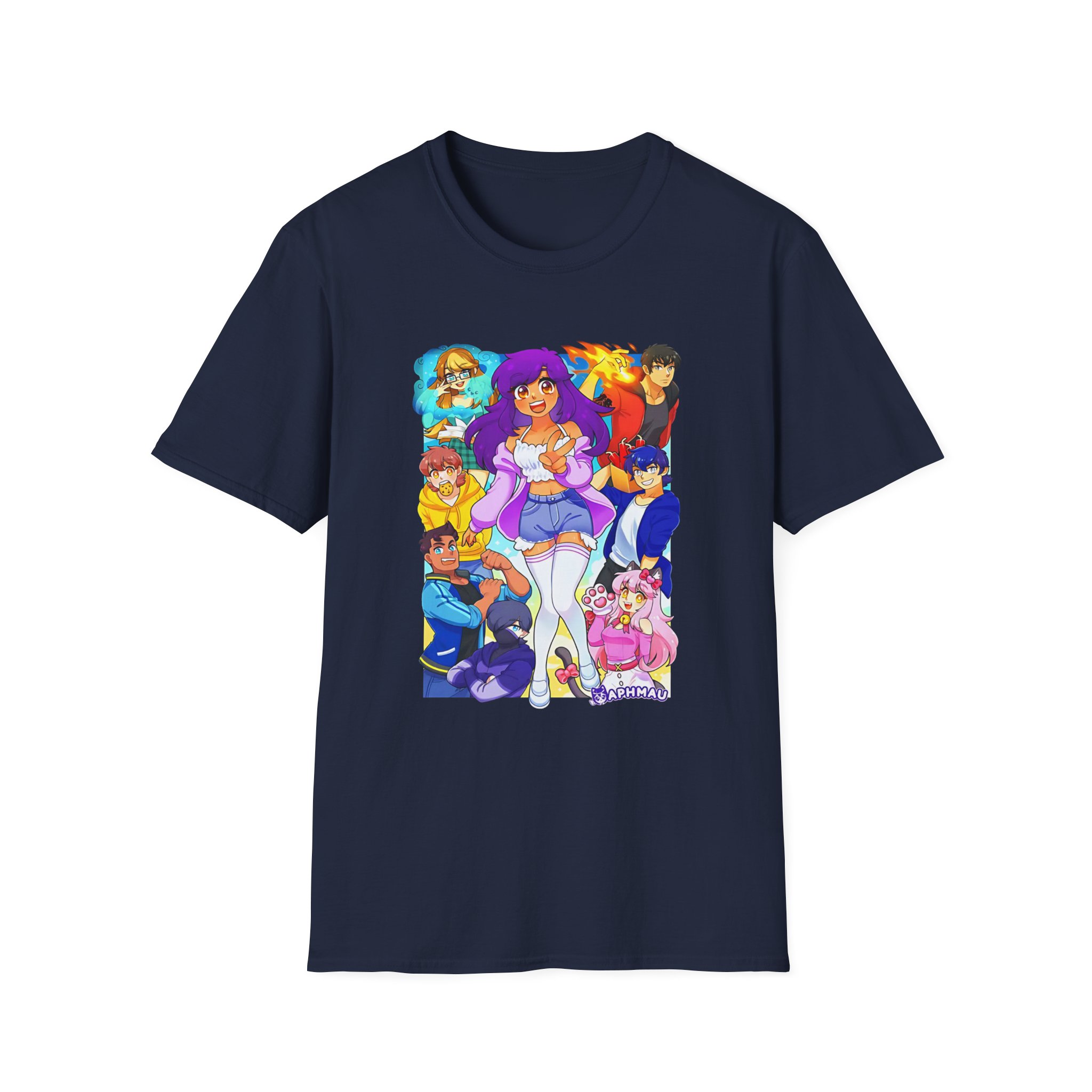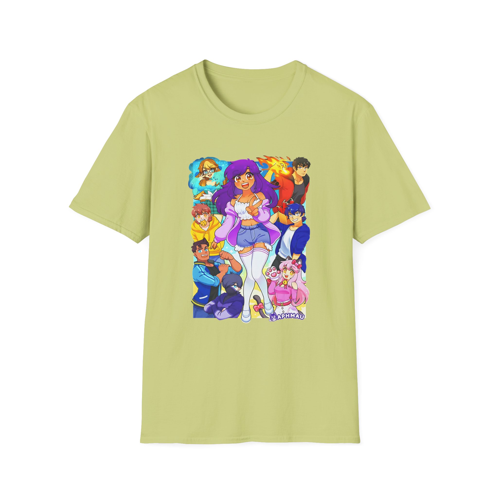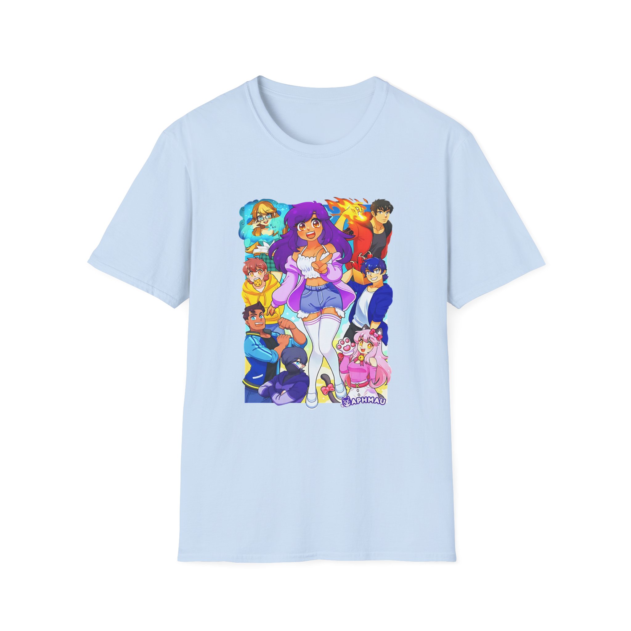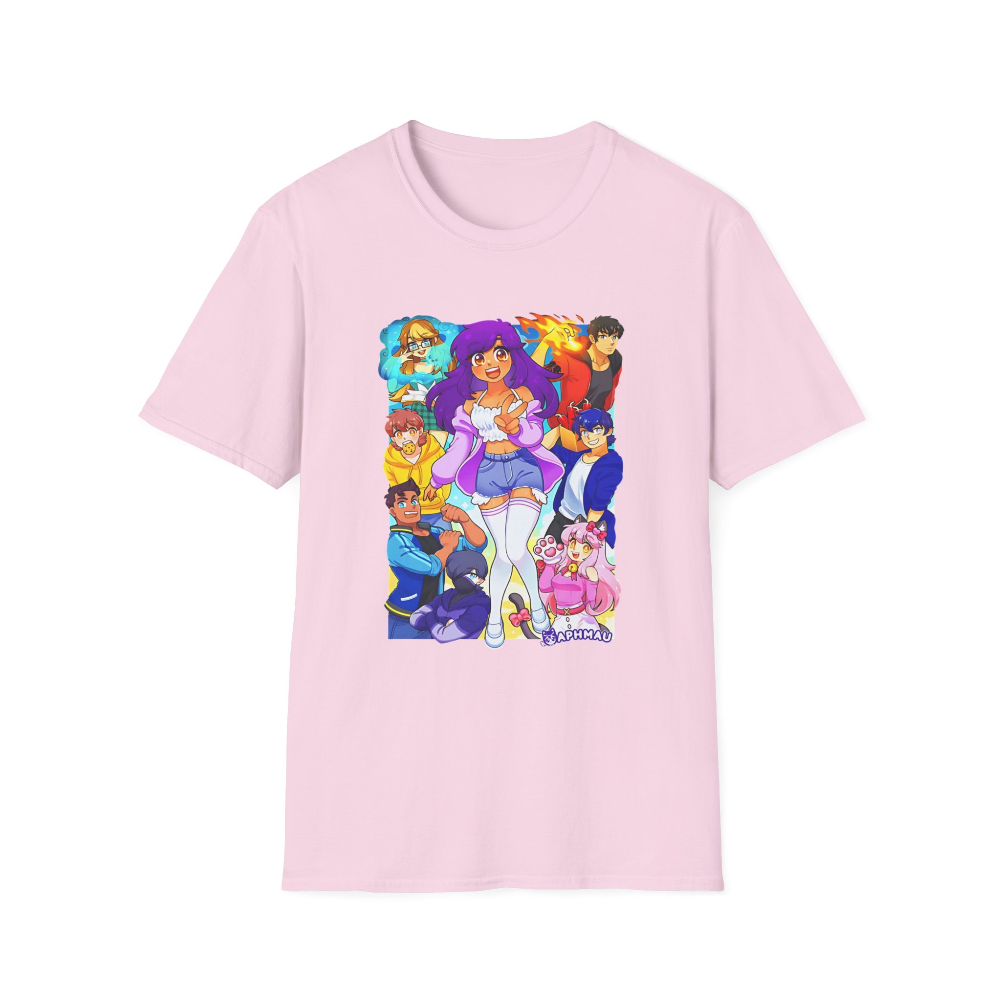 The Aphmau & Friends unisex soft-style t-shirt puts a new spin on casual comfort. Made from very soft materials, this tee is 100% cotton for solid colors. Heather colors and sports grey include polyester. The shoulders have twill tape for improved durability. There are no side seams. The collar is made with ribbed knitting to prevent curling damage.