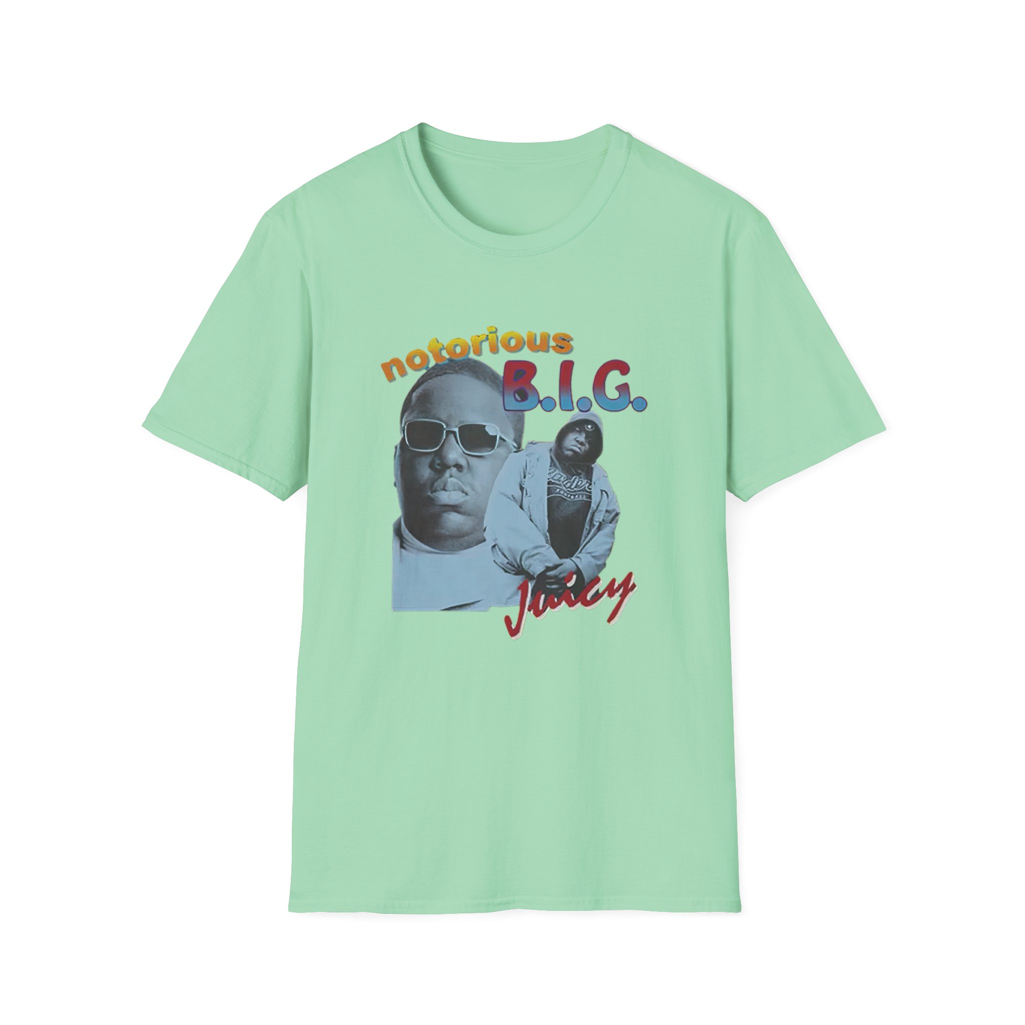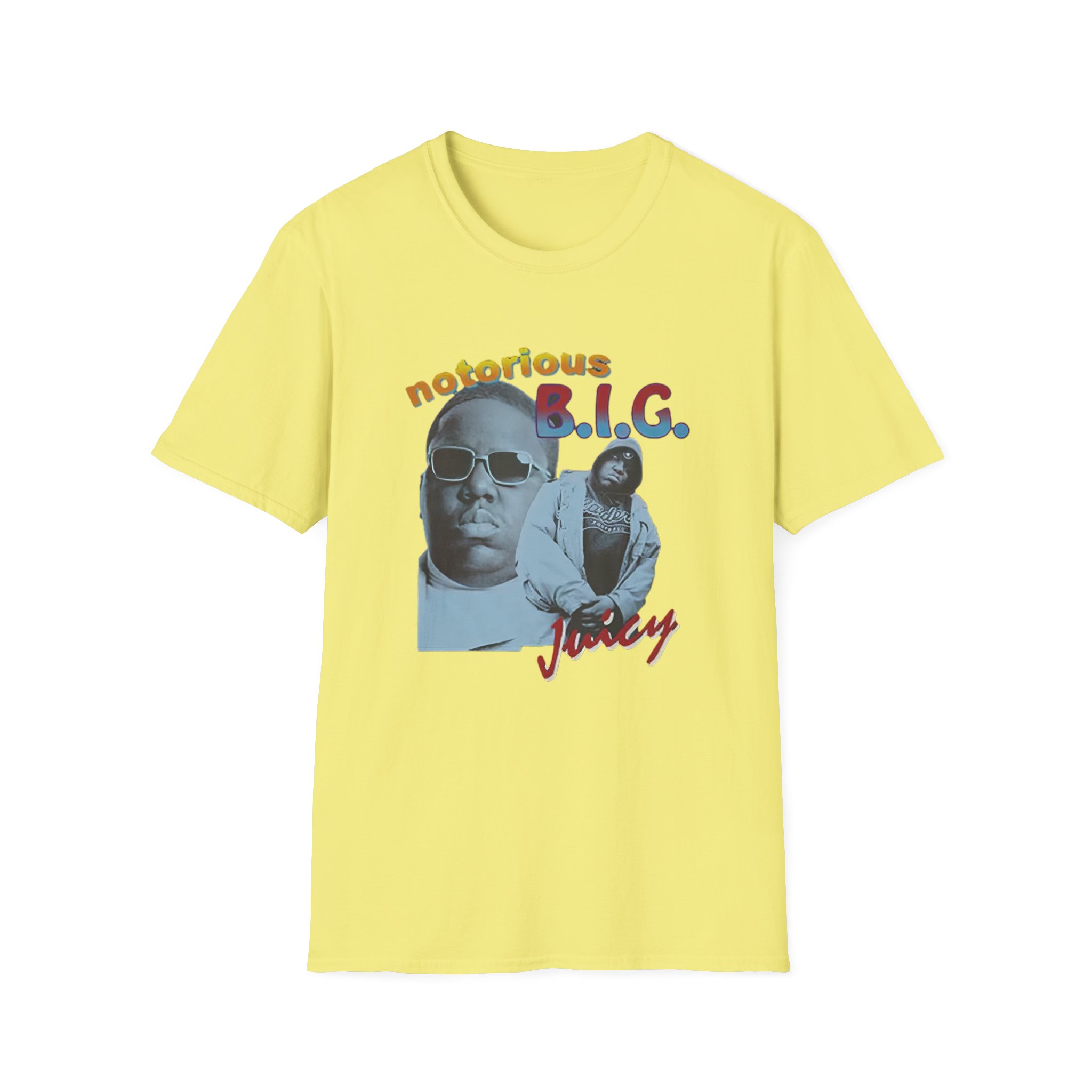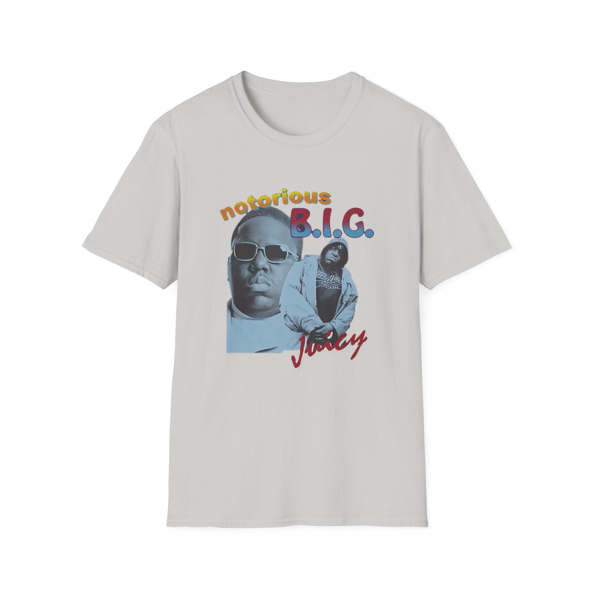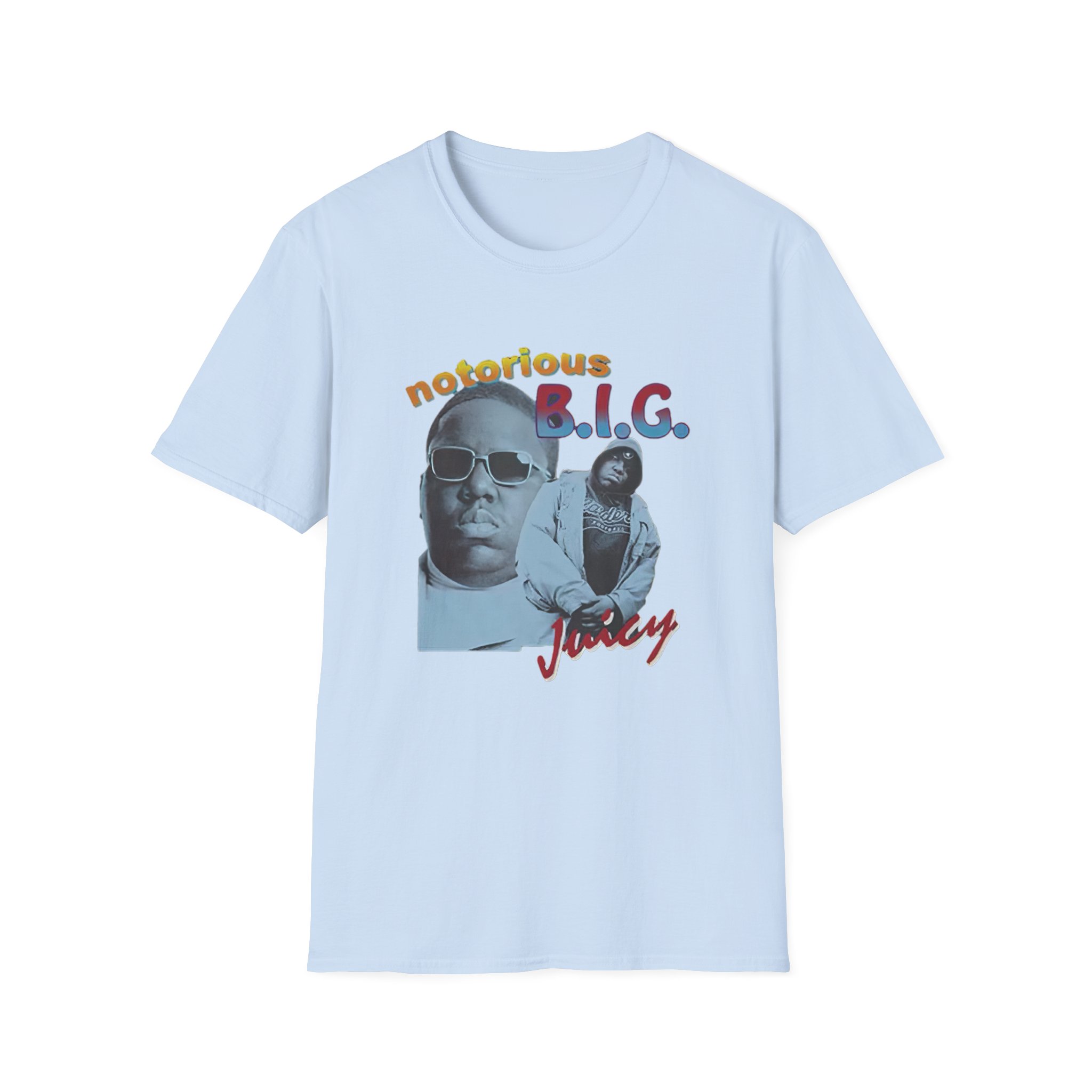The Biggie Smalls Juicy unisex soft-style t-shirt puts a new spin on casual comfort. Made from very soft materials, this tee is 100% cotton for solid colors. Heather colors and sports grey include polyester. The shoulders have twill tape for improved durability. There are no side seams. The collar is made with ribbed knitting to prevent curling damage.