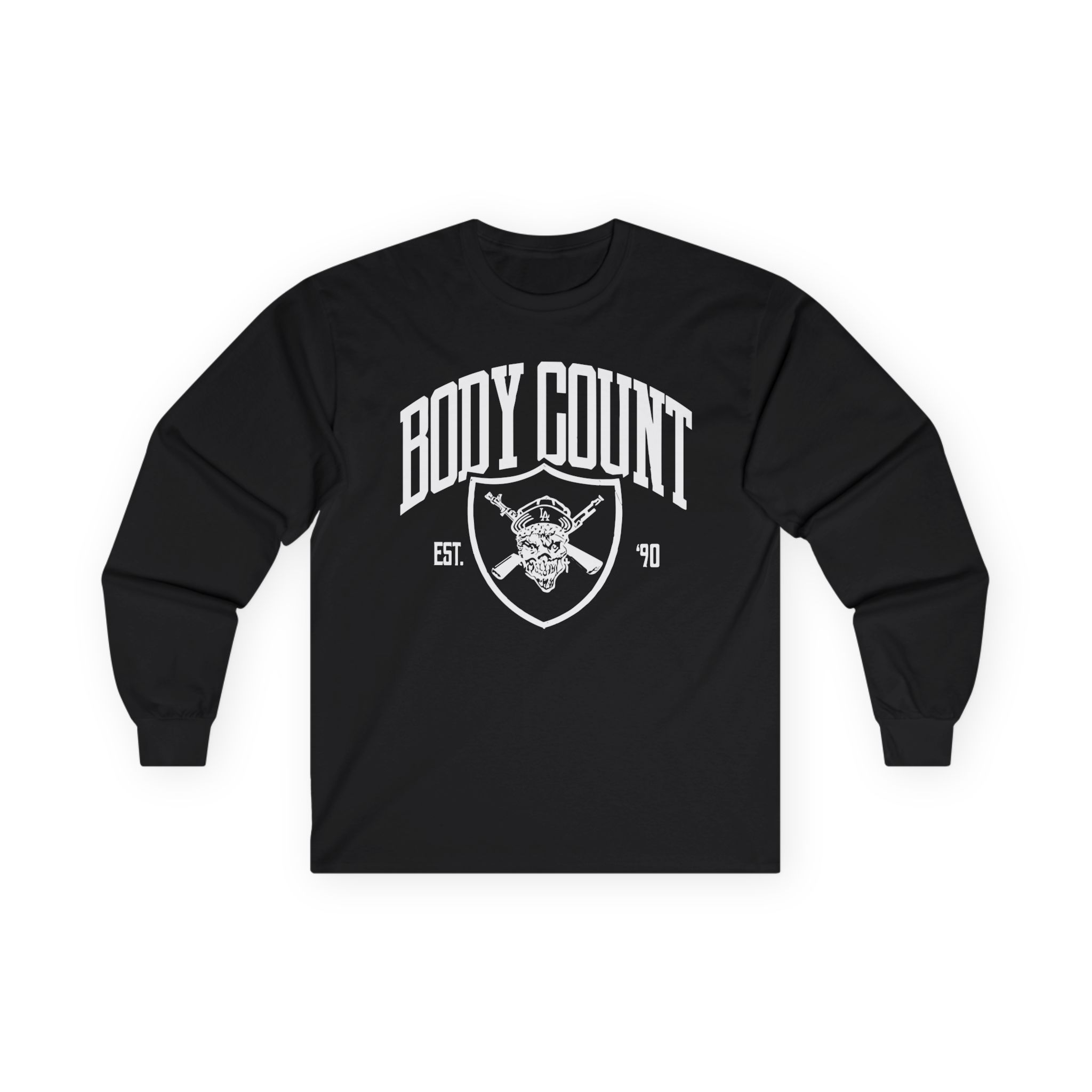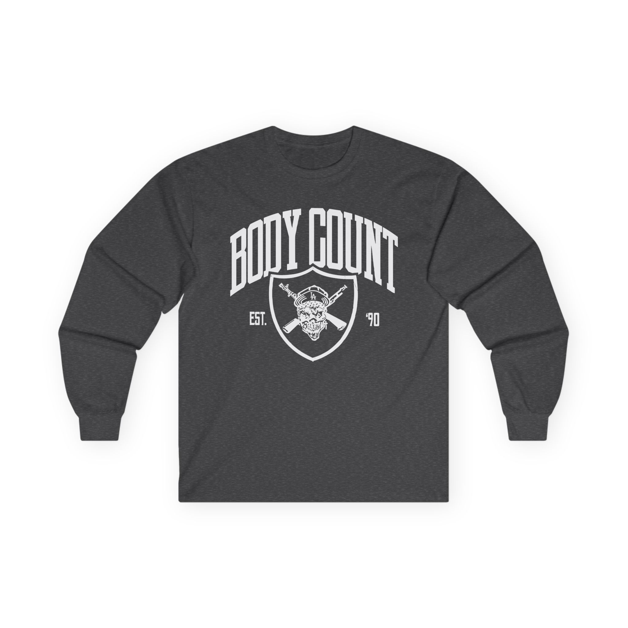 A bit more formal than a standard-issue t-shirt, the Body Count BC x LA ultra cotton long sleeve tee is a clear comfort winner. The sleeves also act as a nice frame. There are no side seams. The shoulders are taped for improved durability. This makes for a good fitting around the shoulders and neck. The cotton used for these shirts is environmentally friendly.
