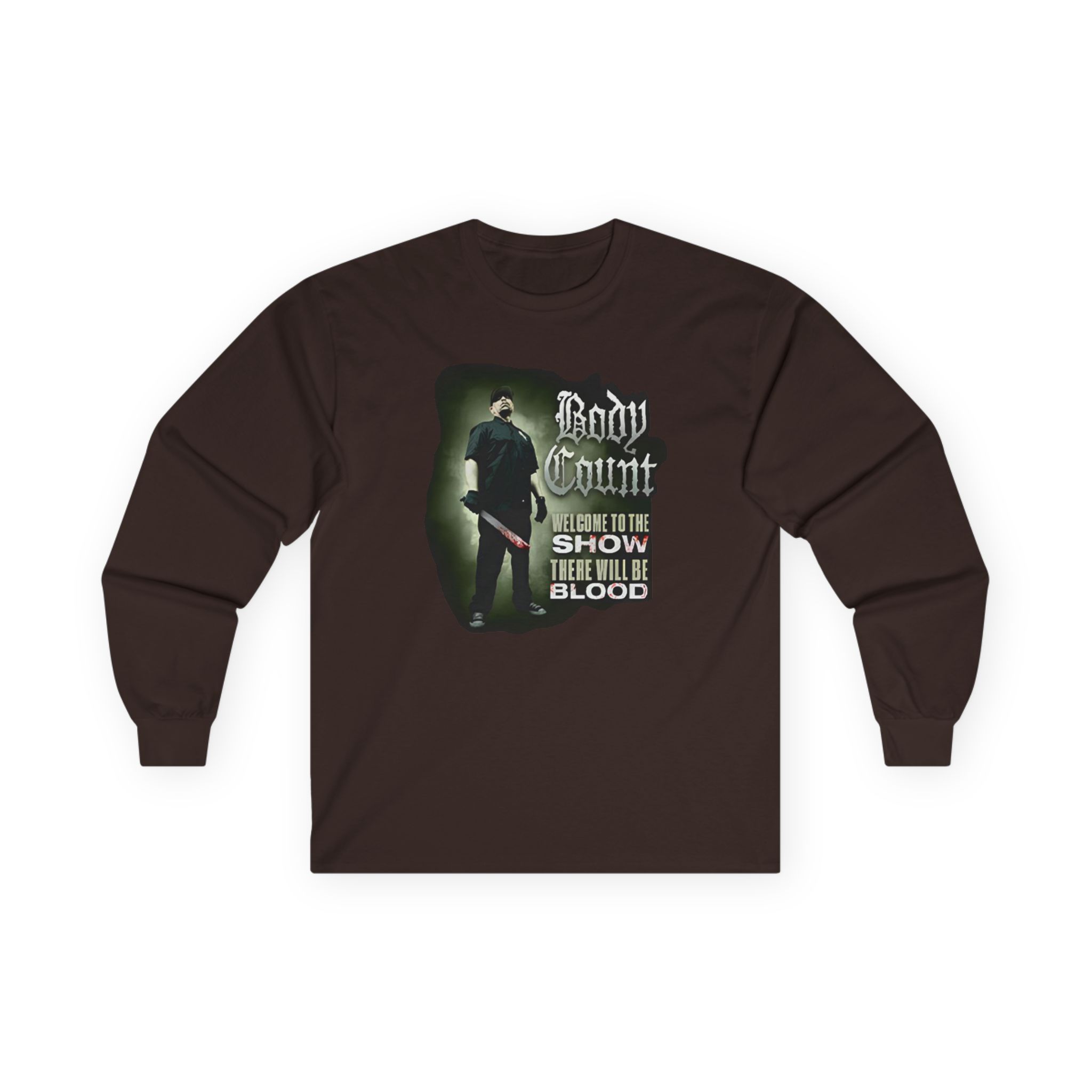 A bit more formal than a standard-issue t-shirt, the Body Count There Will Be Blood ultra cotton long sleeve tee is a clear comfort winner. The sleeves also act as a nice frame. There are no side seams. The shoulders are taped for improved durability. This makes for a good fitting around the shoulders and neck. The cotton used for these shirts is environmentally friendly.