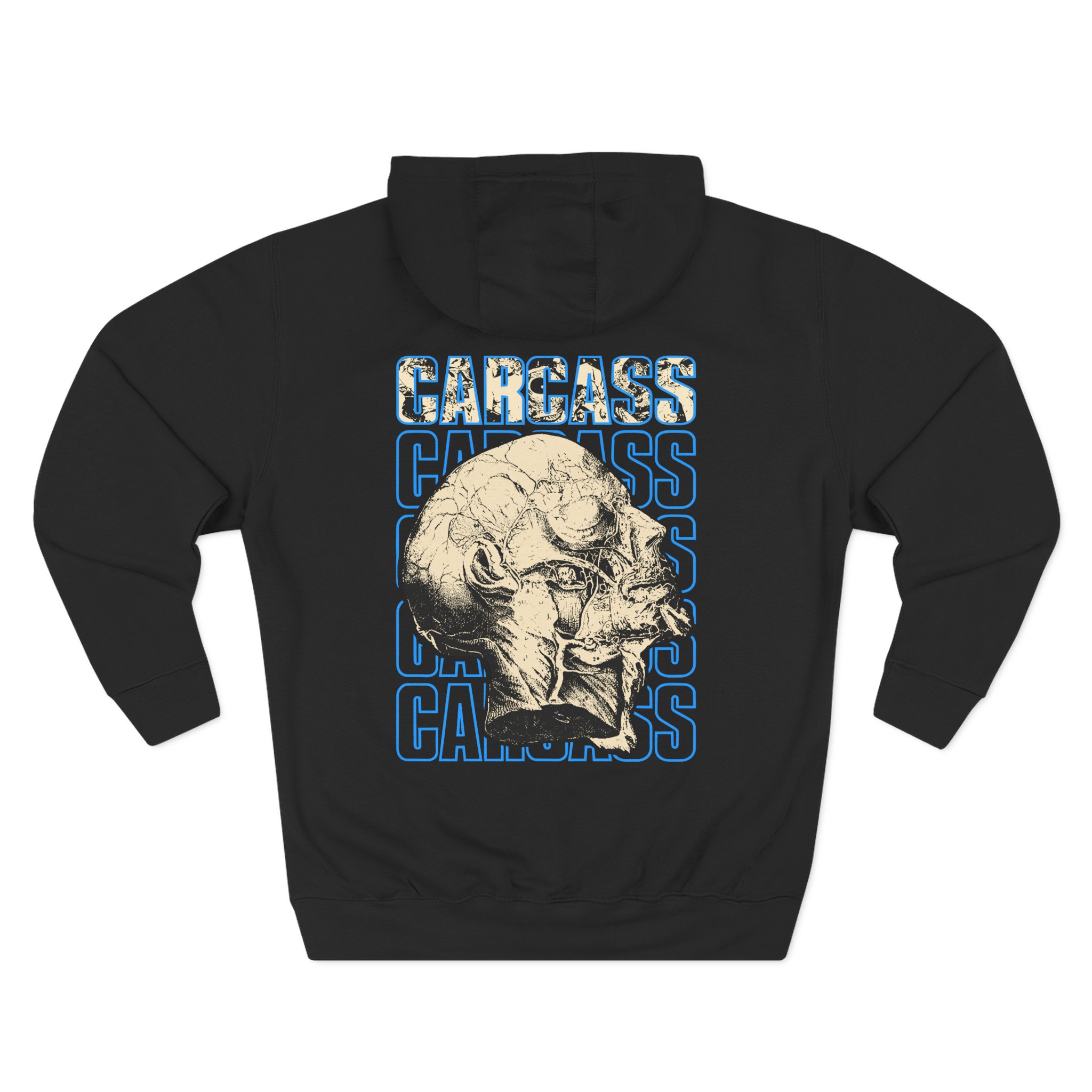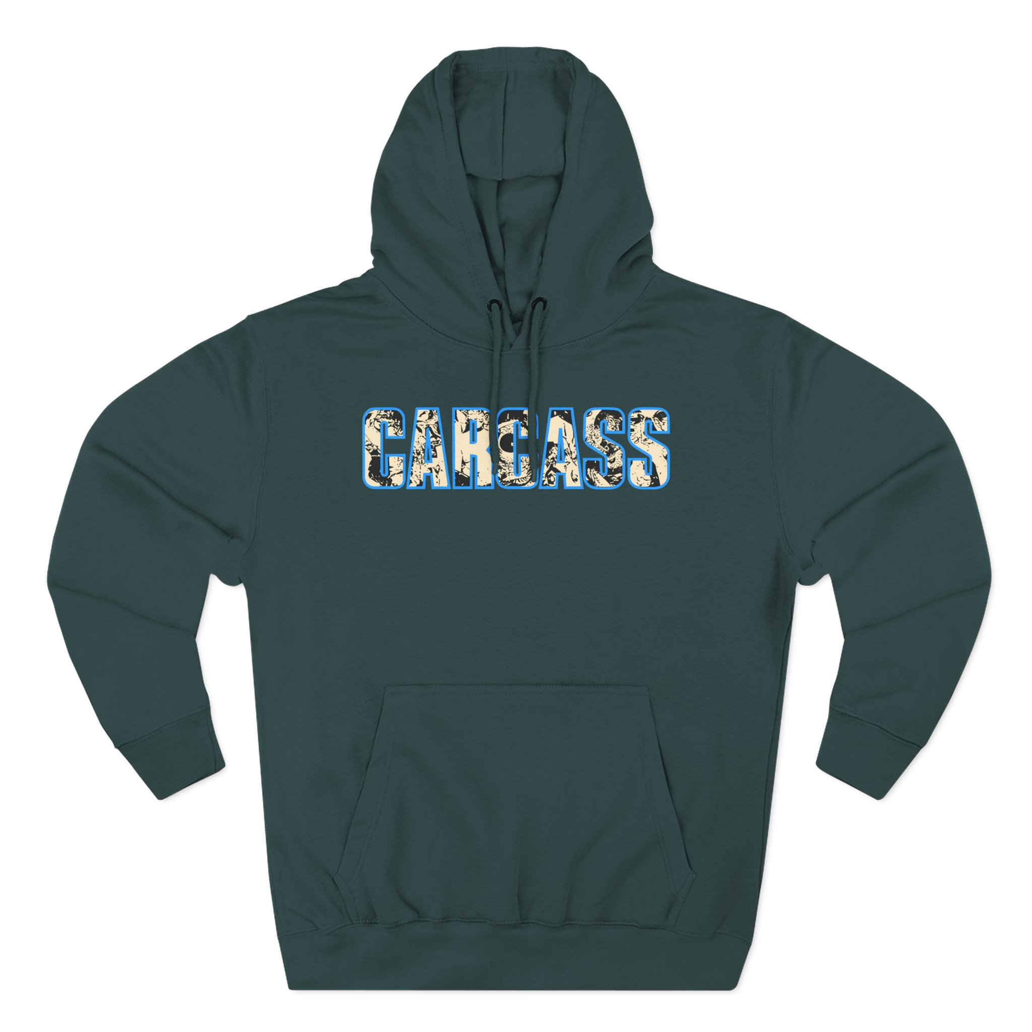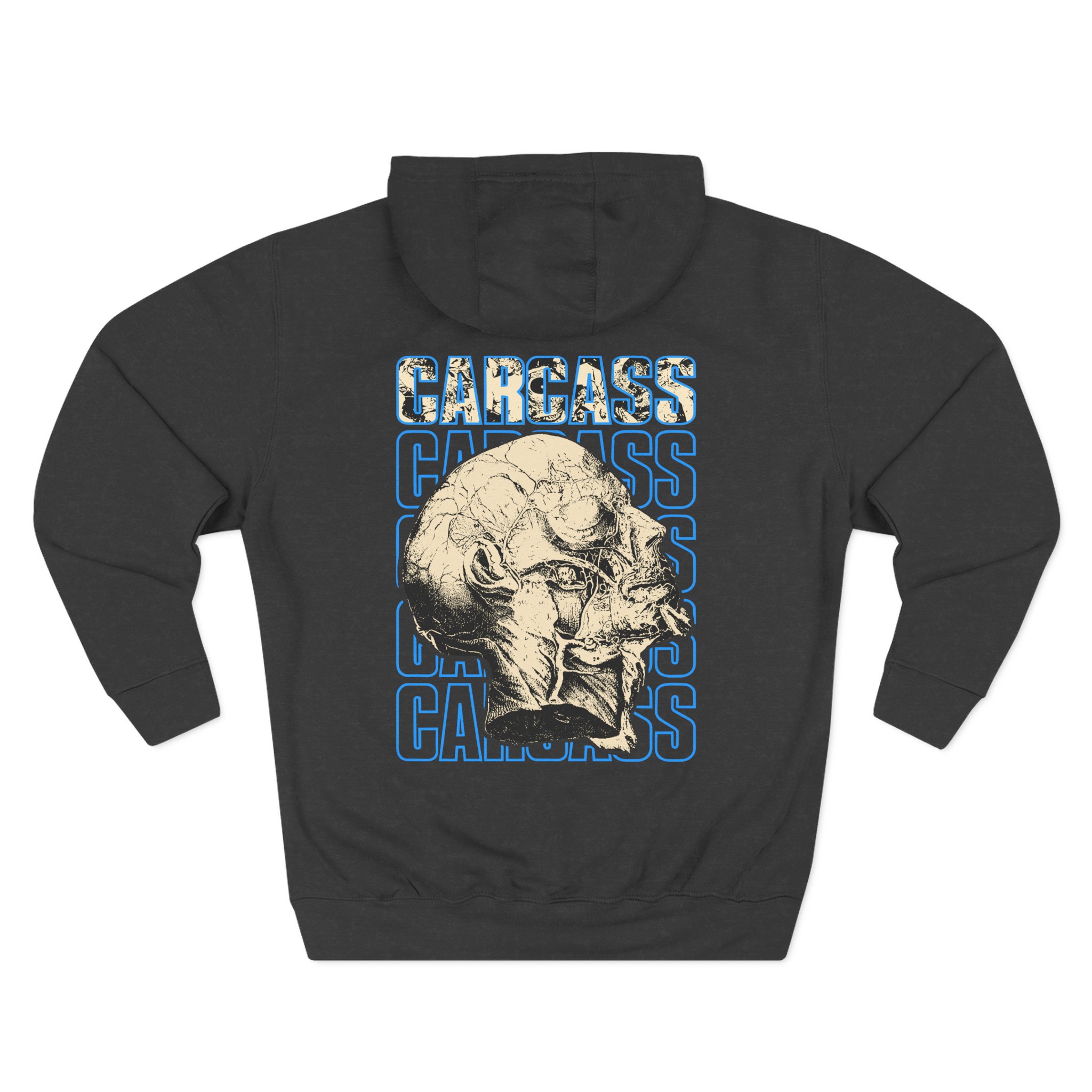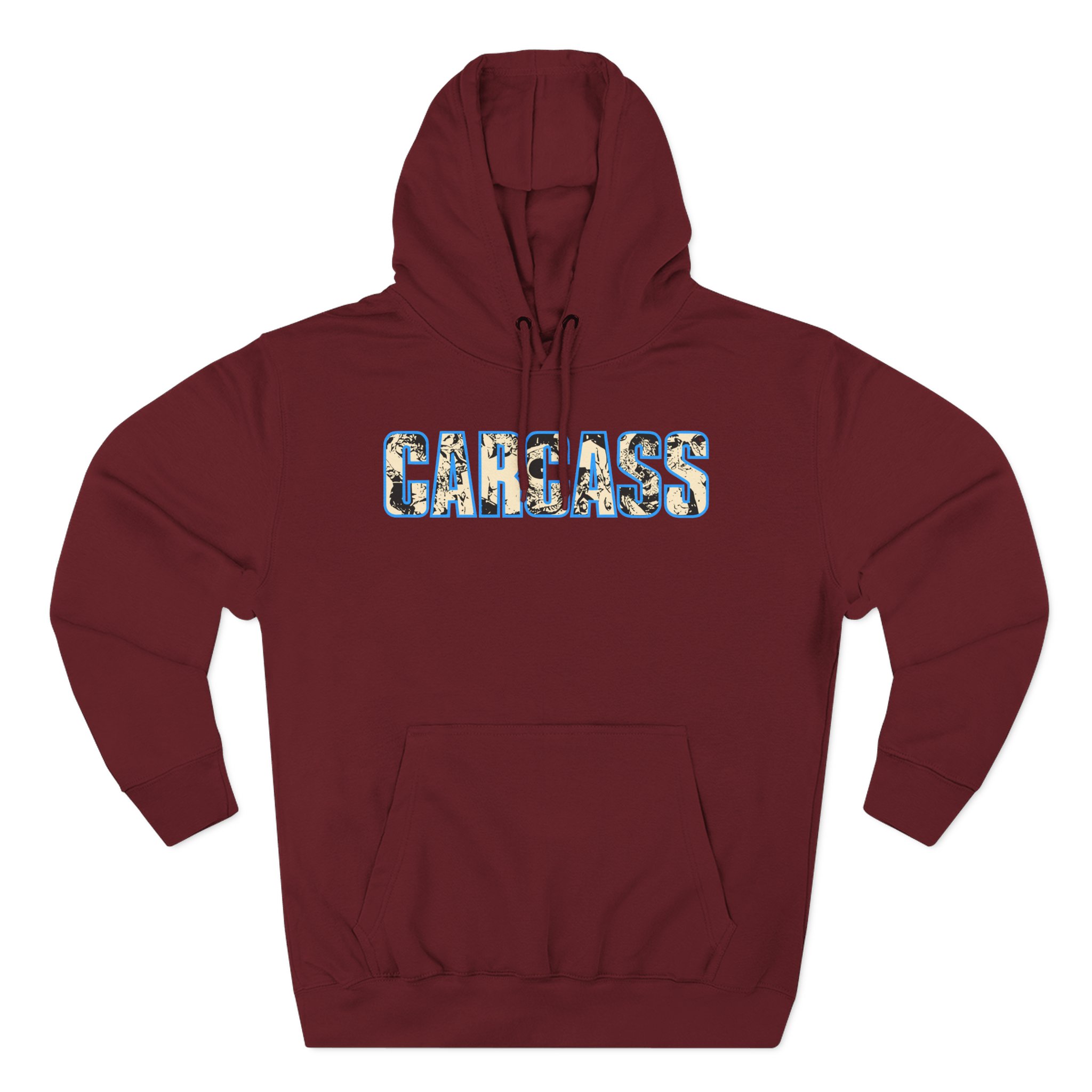 Beat the cold with this premium Carcass Head & Tools pullover hoodie that’s just the right layer of warm and cozy. Made with three-panel fleece lining, this pullover is double stitched for durability and roomy. Pick one in your favorite color to match your style.