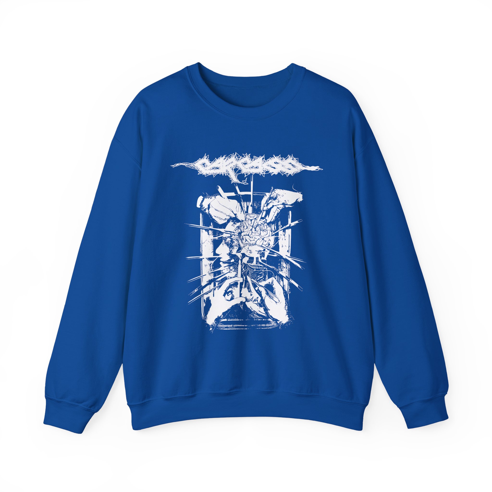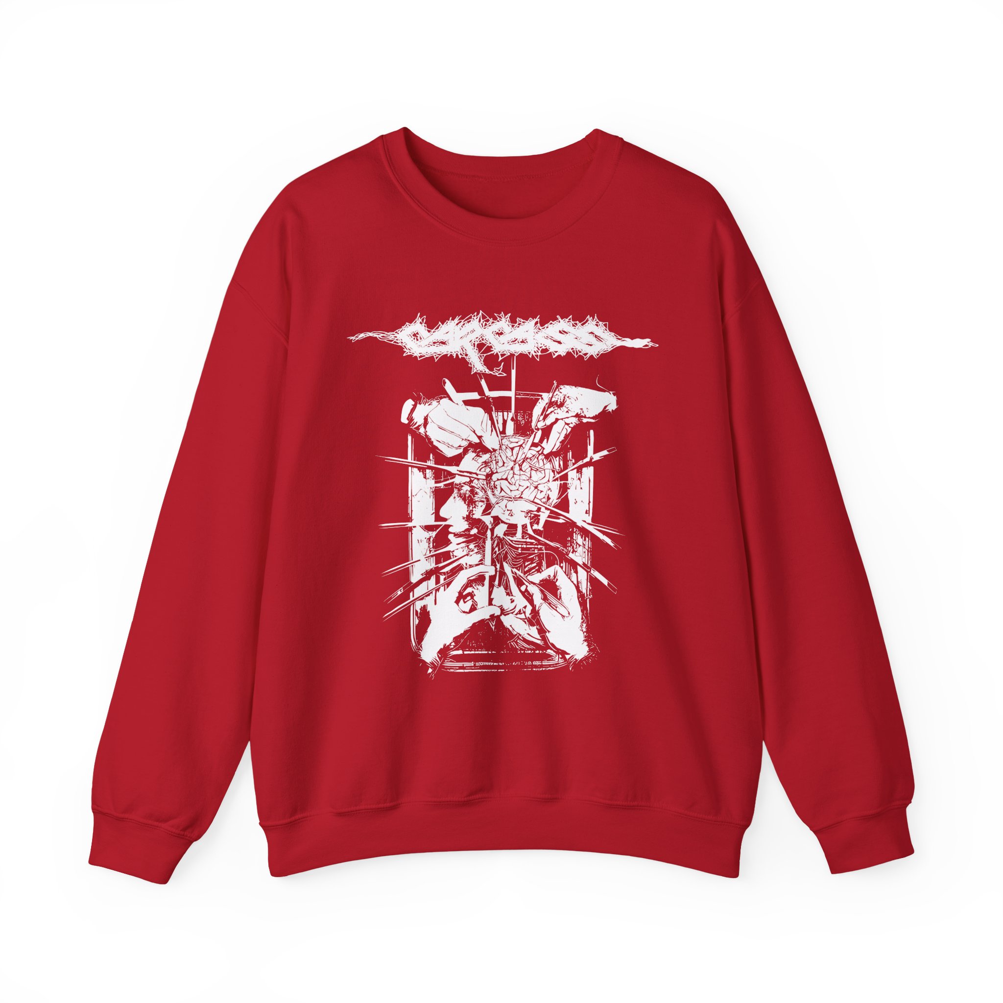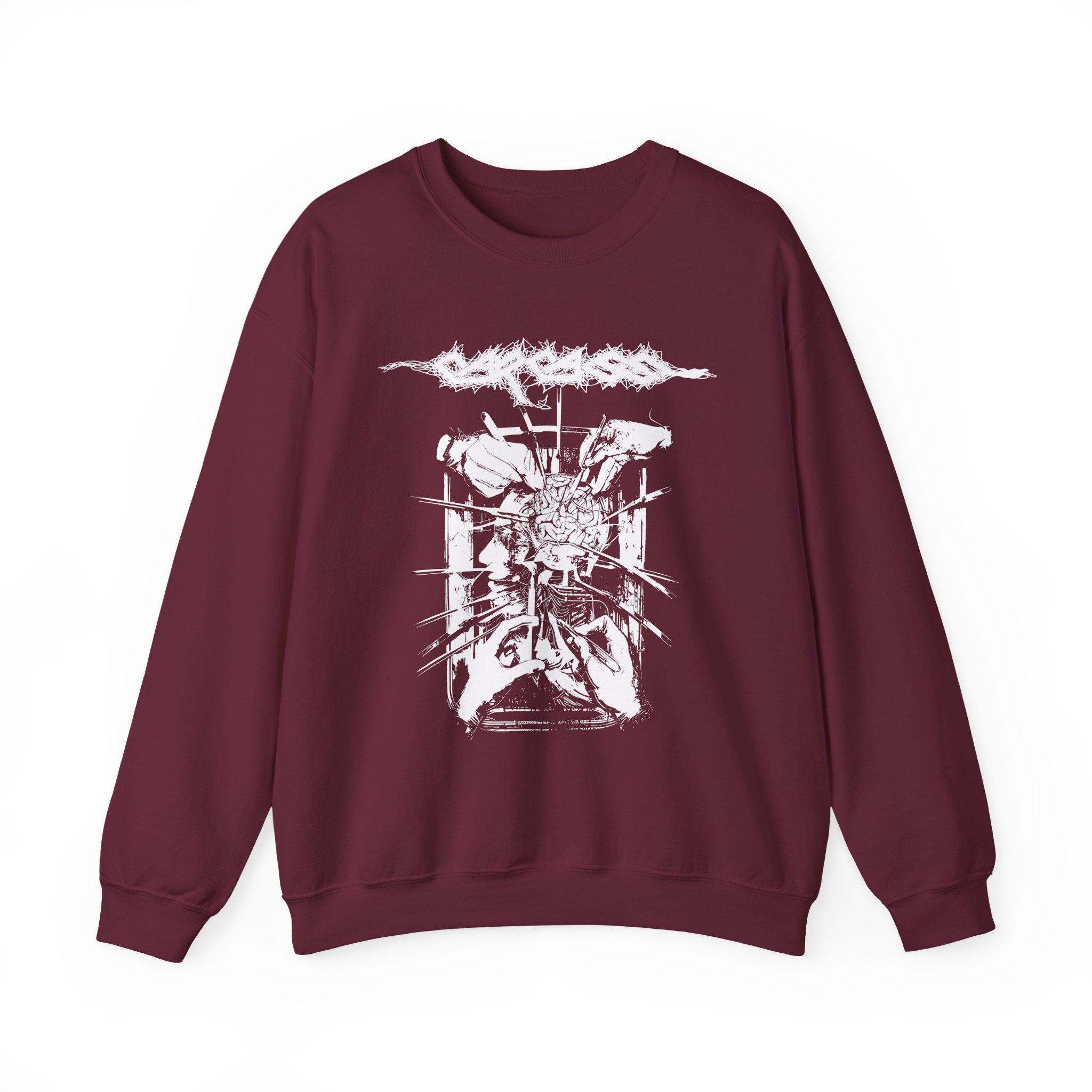 Ideal for any situation, a Carcass Rotten to the Gore unisex heavy blend crewneck sweatshirt is pure comfort. These garments are made from polyester and cotton. This combination helps designs come out looking fresh and beautiful. The collar is ribbed knit, so it retains its shape even after washing. There are no itchy side seams on these sweaters.