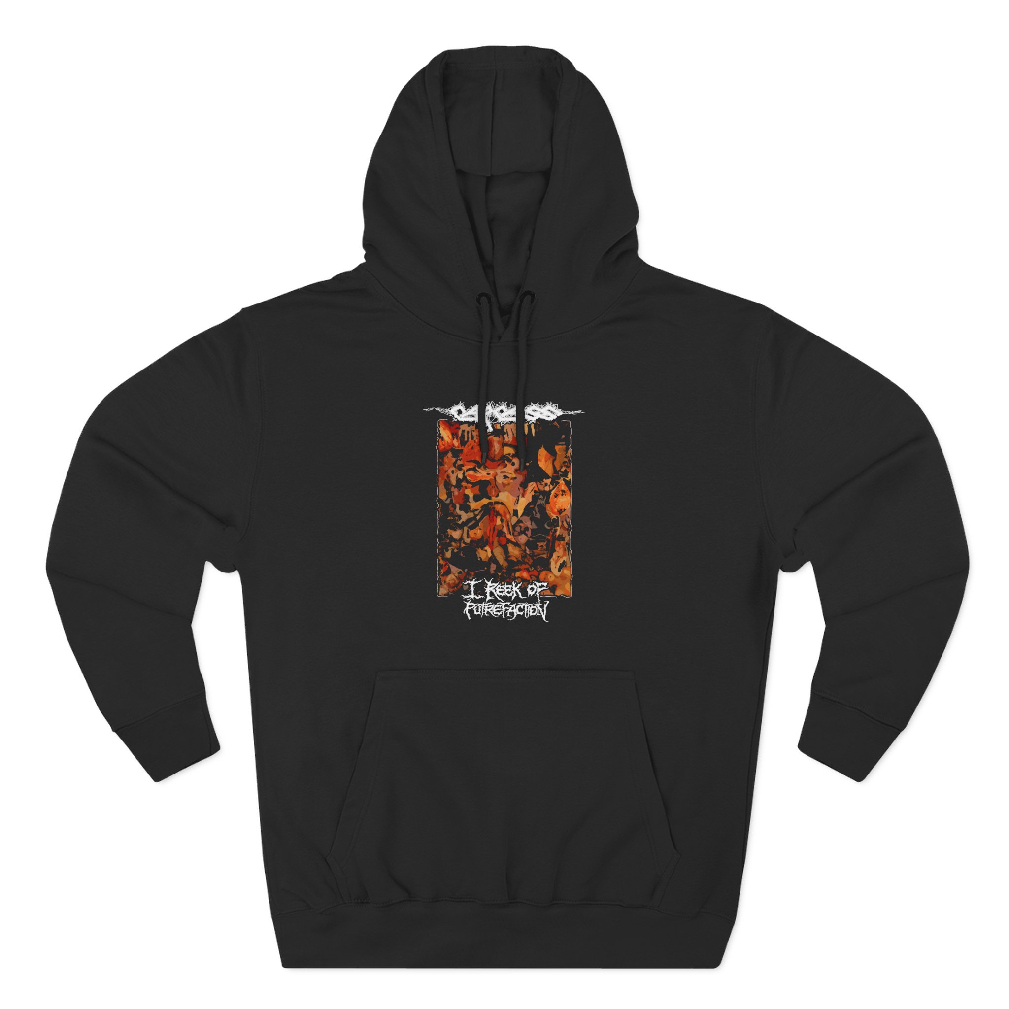 Beat the cold with this premium Carcass pullover hoodie that’s just the right layer of warm and cozy. Made with three-panel fleece lining, this pullover is double stitched for durability and roomy. Pick one in your favorite color to match your style.