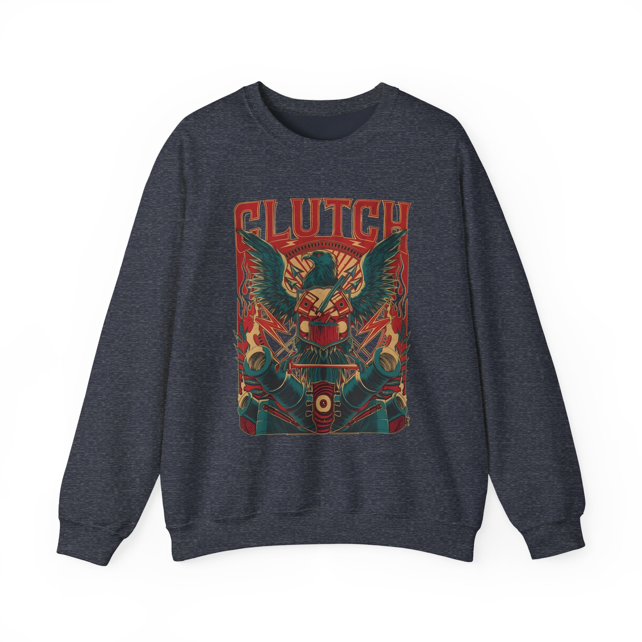 Ideal for any situation, a Clutch Eagle Eye unisex heavy blend crewneck sweatshirt is pure comfort. These garments are made from polyester and cotton. This combination helps designs come out looking fresh and beautiful. The collar is ribbed knit, so it retains its shape even after washing. There are no itchy side seams on these sweaters.