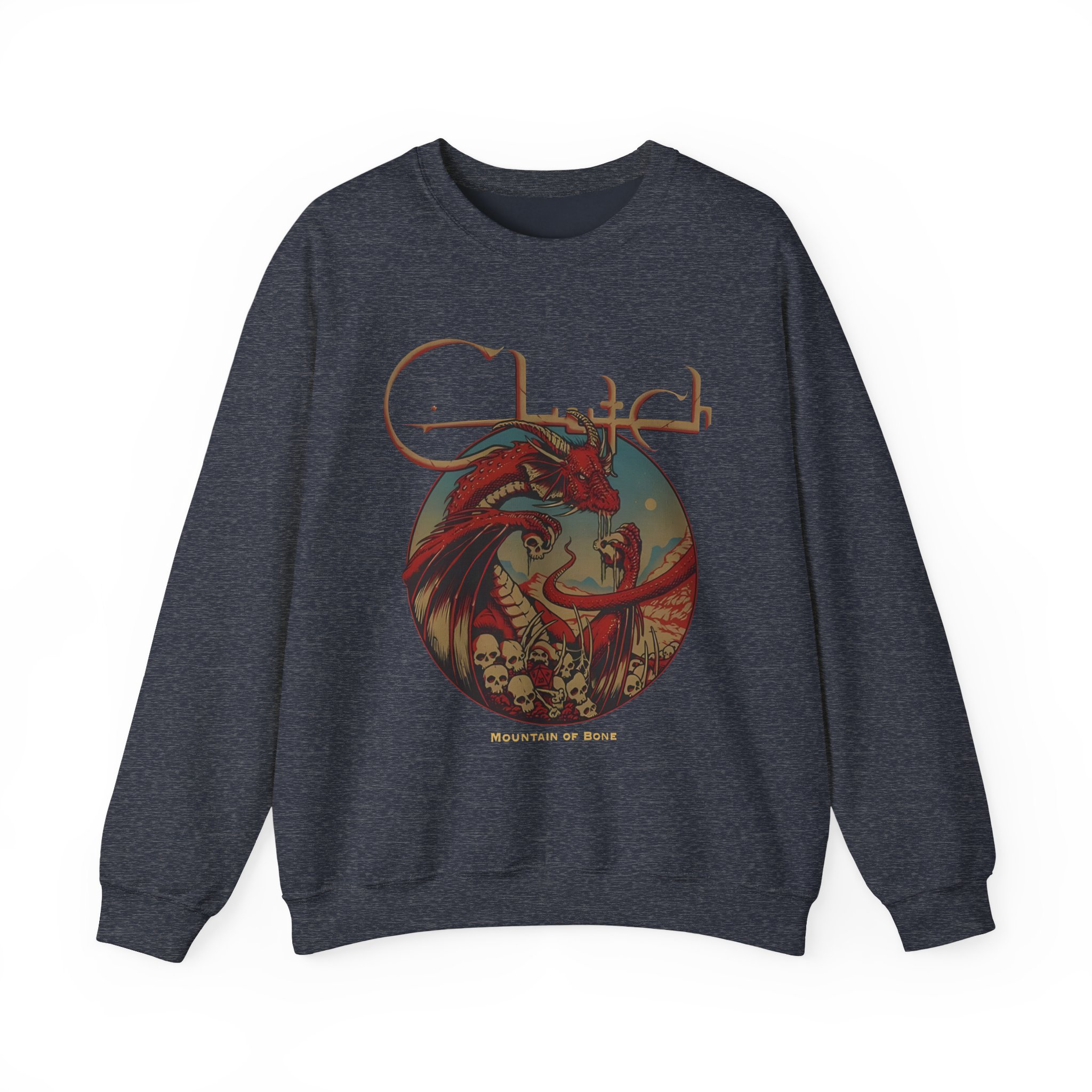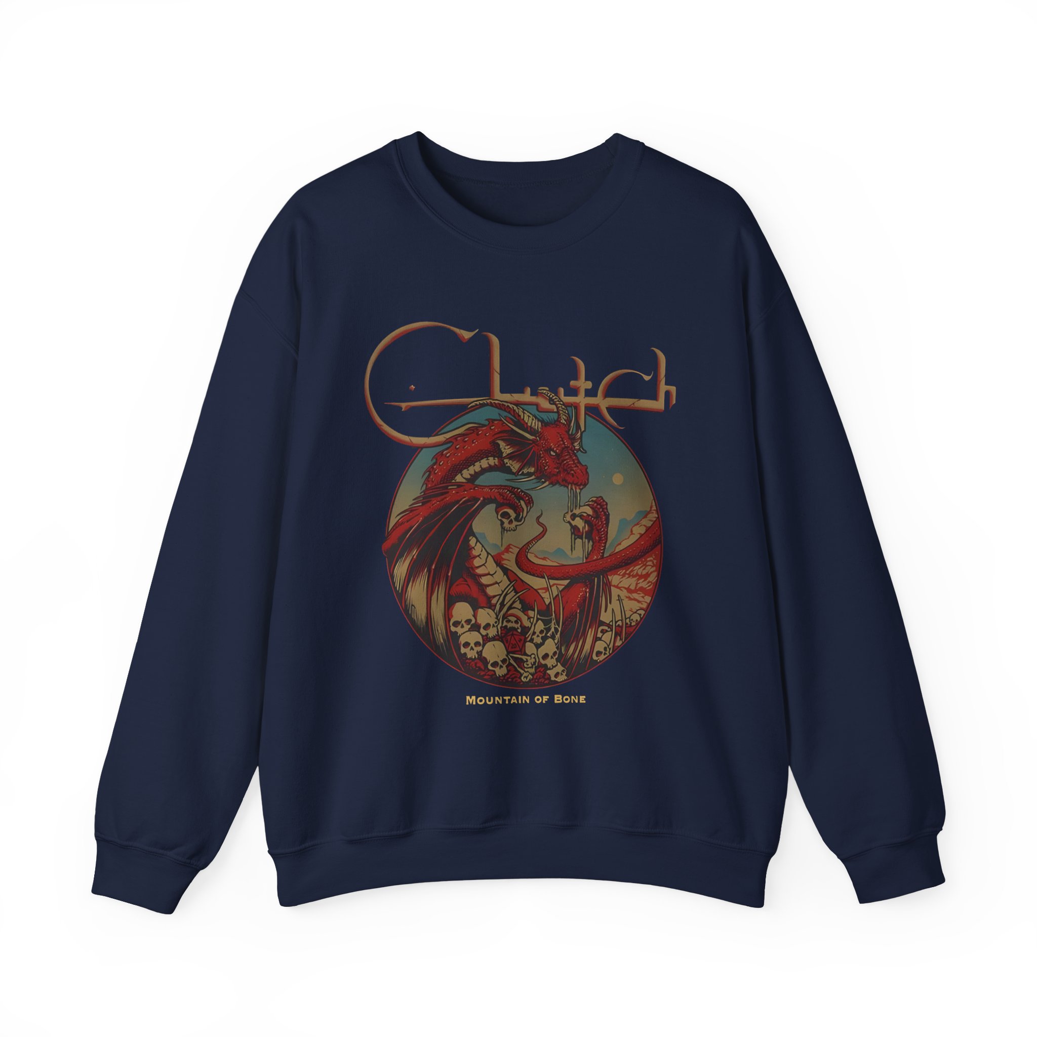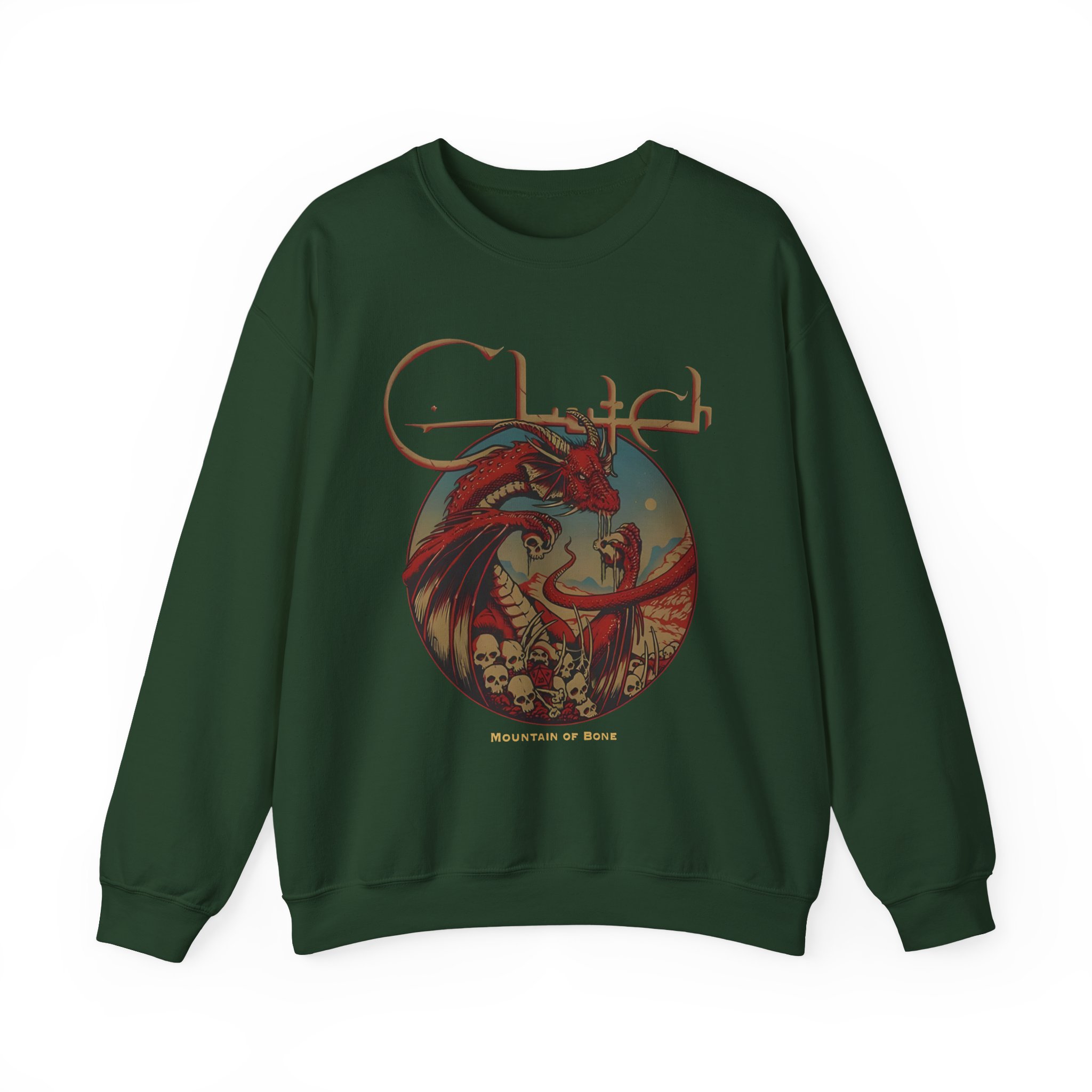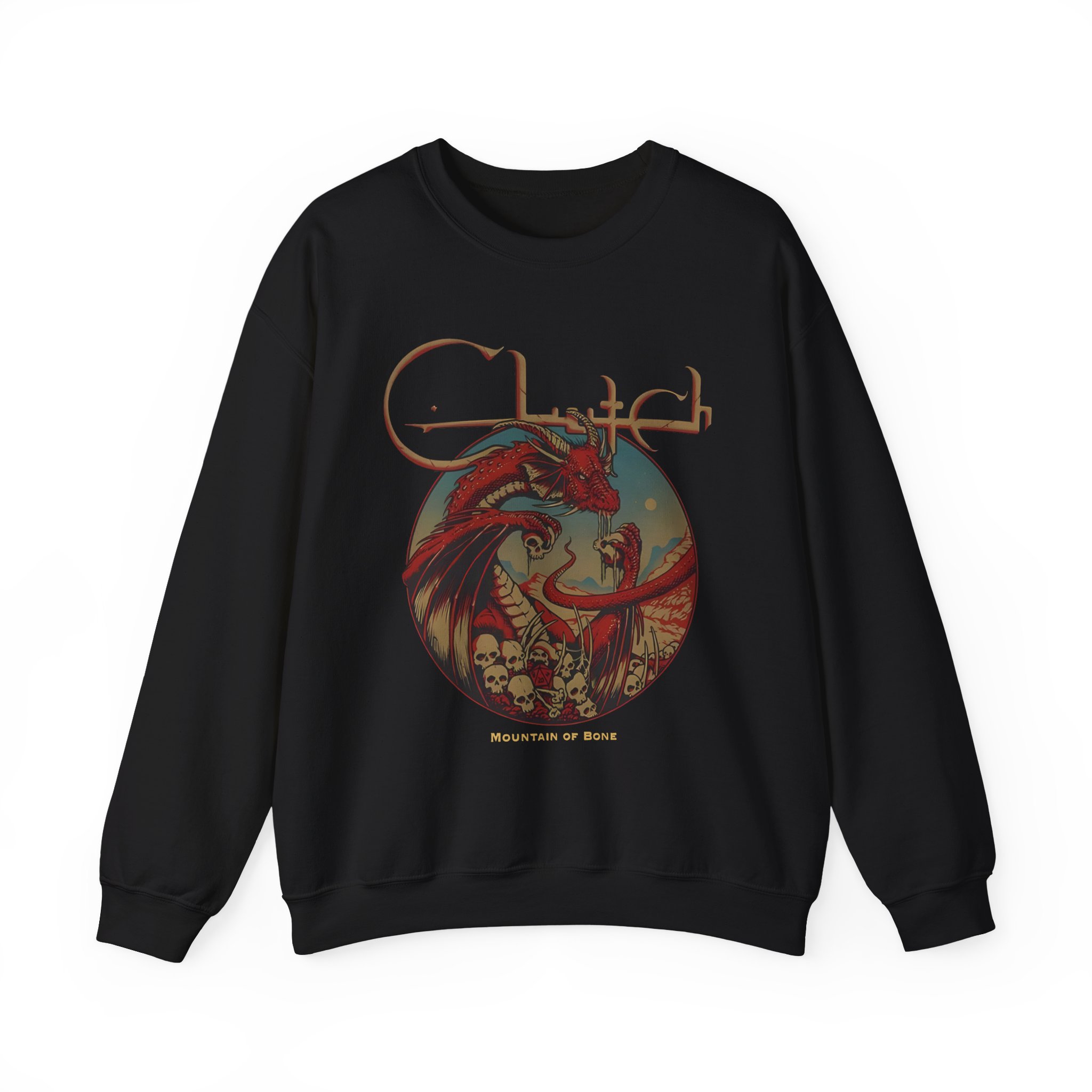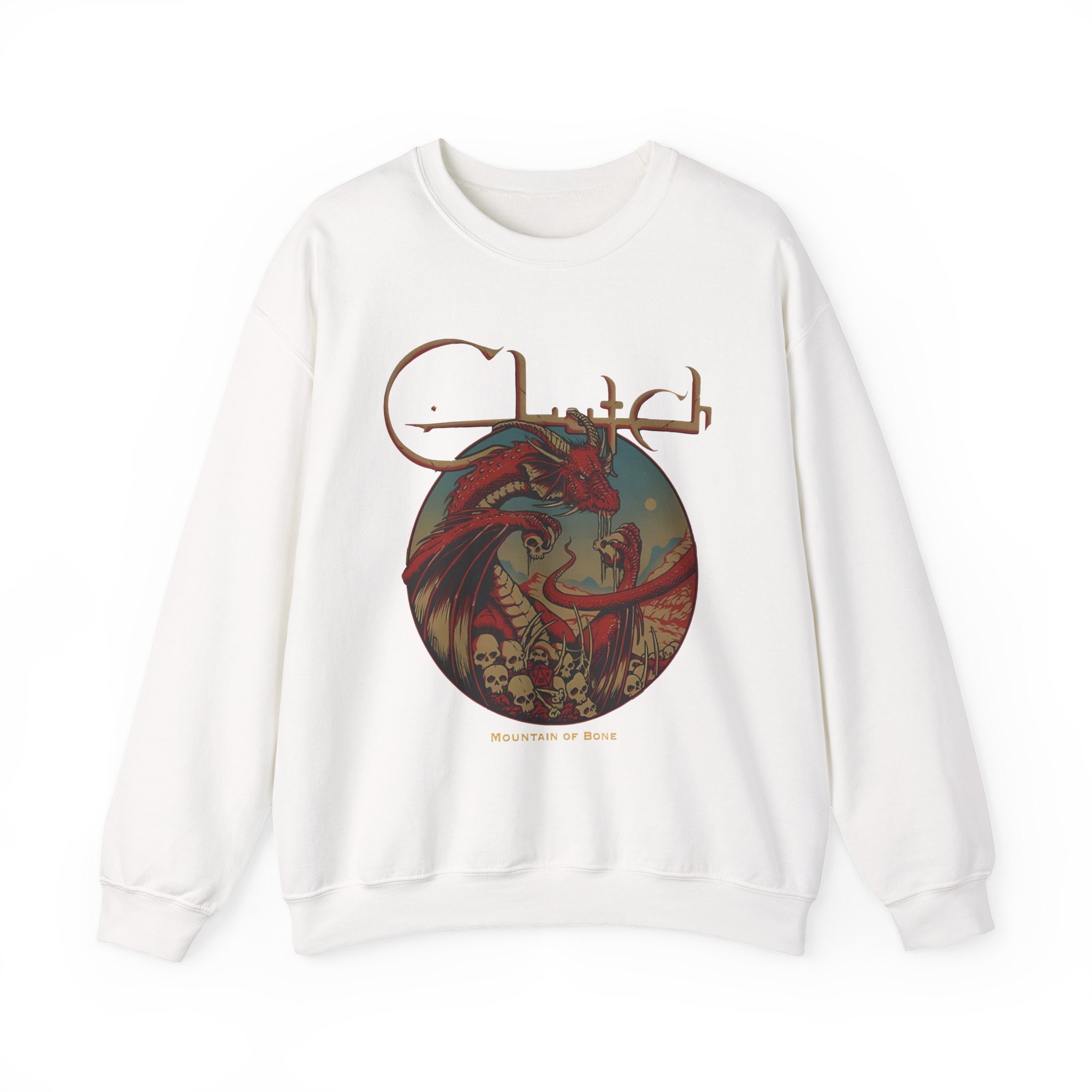 Ideal for any situation, a Clutch Mountain Of Bone unisex heavy blend crewneck sweatshirt is pure comfort. These garments are made from polyester and cotton. This combination helps designs come out looking fresh and beautiful. The collar is ribbed knit, so it retains its shape even after washing. There are no itchy side seams on these sweaters.