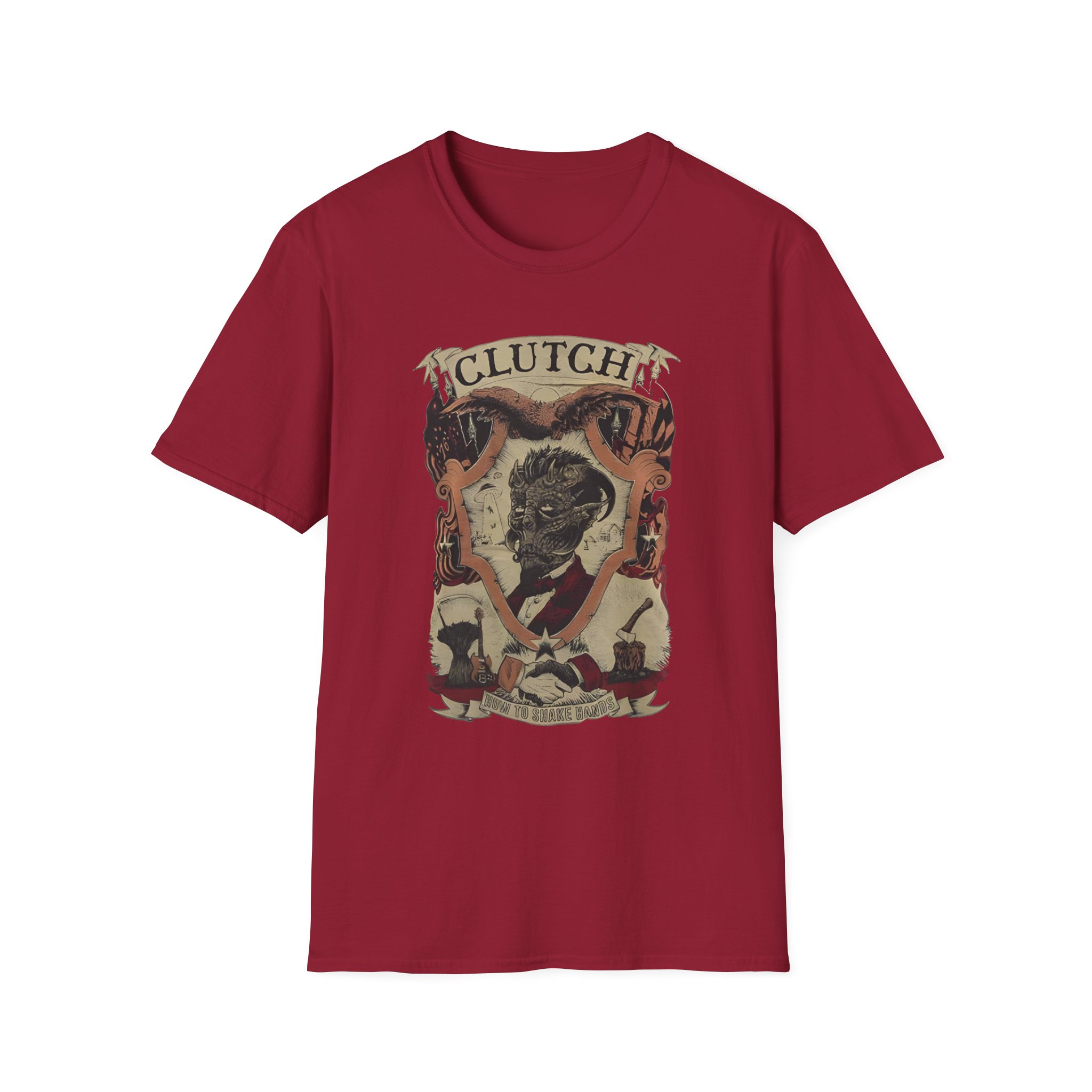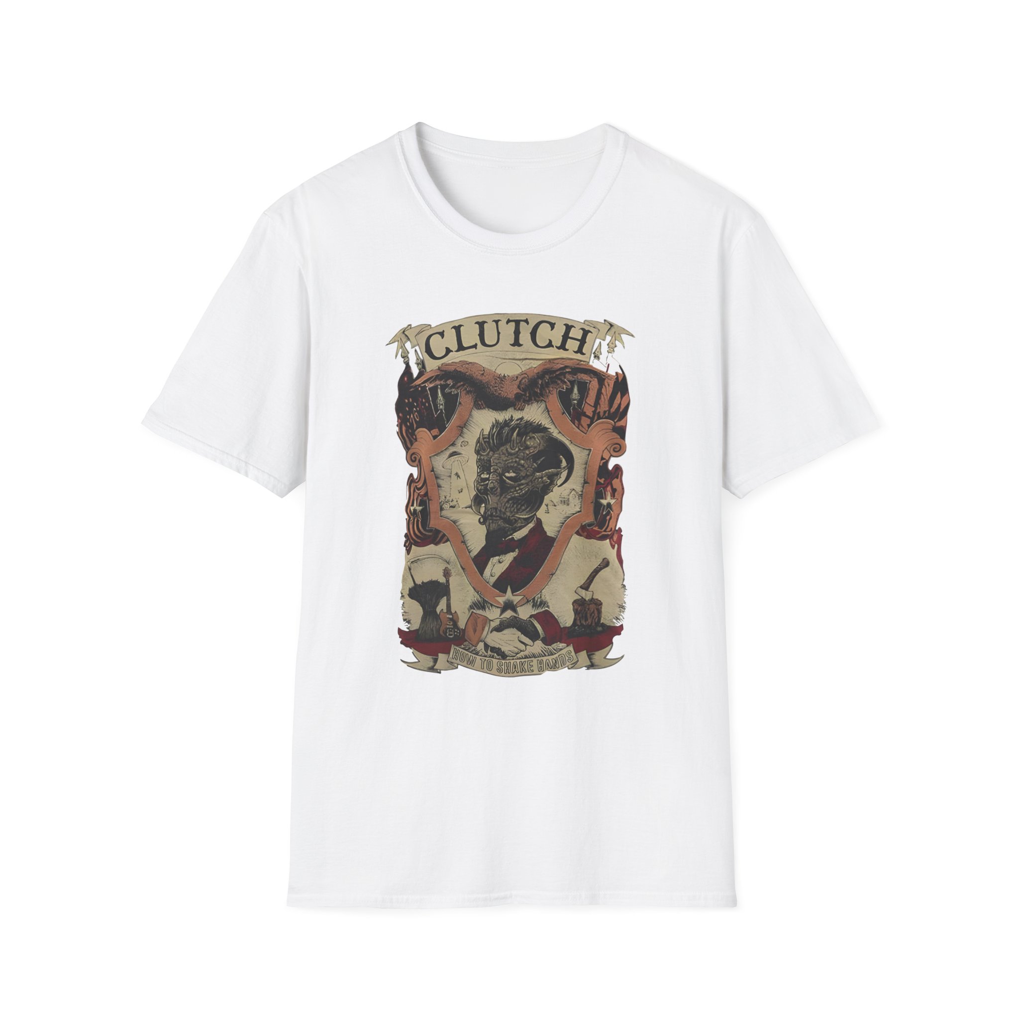 The Clutchv How To Shake Hands unisex soft-style t-shirt puts a new spin on casual comfort. Made from very soft materials, this tee is 100% cotton for solid colors. Heather colors and sports grey include polyester. The shoulders have twill tape for improved durability. There are no side seams. The collar is made with ribbed knitting to prevent curling damage.