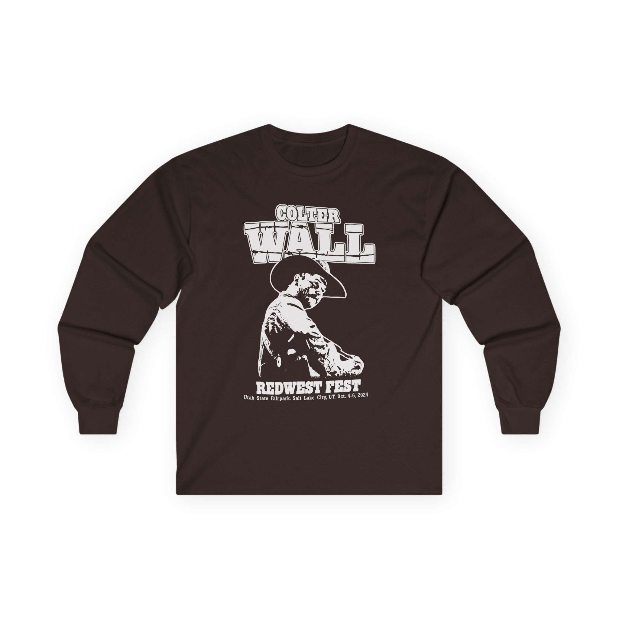 A bit more formal than a standard-issue t-shirt, the Colter Wall RedWest Fest ultra cotton long sleeve tee is a clear comfort winner. The sleeves also act as a nice frame. There are no side seams. The shoulders are taped for improved durability. This makes for a good fitting around the shoulders and neck. The cotton used for these shirts is environmentally friendly.