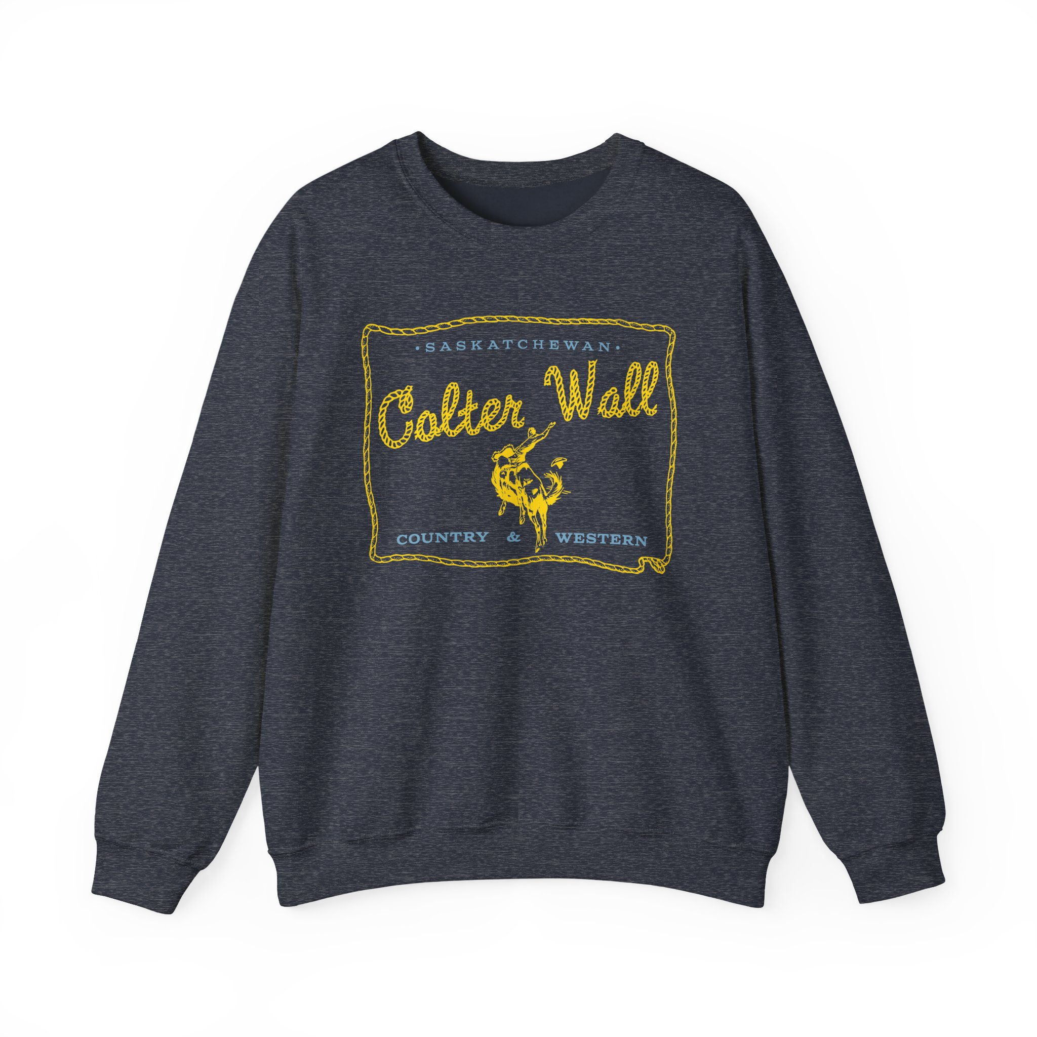 Ideal for any situation, a Colter Wall Saskatchewan unisex heavy blend crewneck sweatshirt is pure comfort. These garments are made from polyester and cotton. This combination helps designs come out looking fresh and beautiful. The collar is ribbed knit, so it retains its shape even after washing. There are no itchy side seams on these sweaters.
