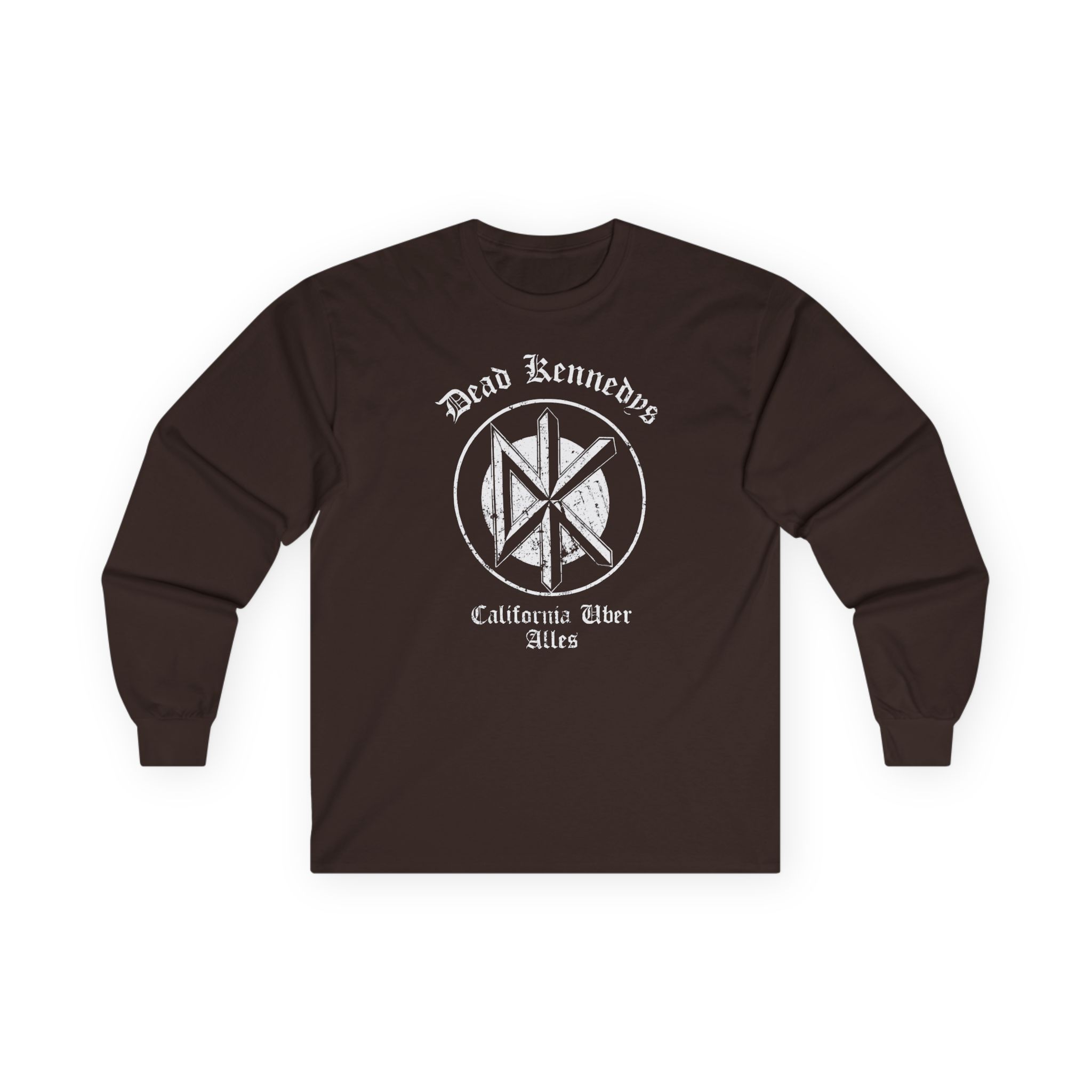 A bit more formal than a standard-issue t-shirt, the Dead Kennedys alifornia Uber Alles ultra cotton long sleeve tee is a clear comfort winner. The sleeves also act as a nice frame. There are no side seams. The shoulders are taped for improved durability. This makes for a good fitting around the shoulders and neck. The cotton used for these shirts is environmentally friendly.