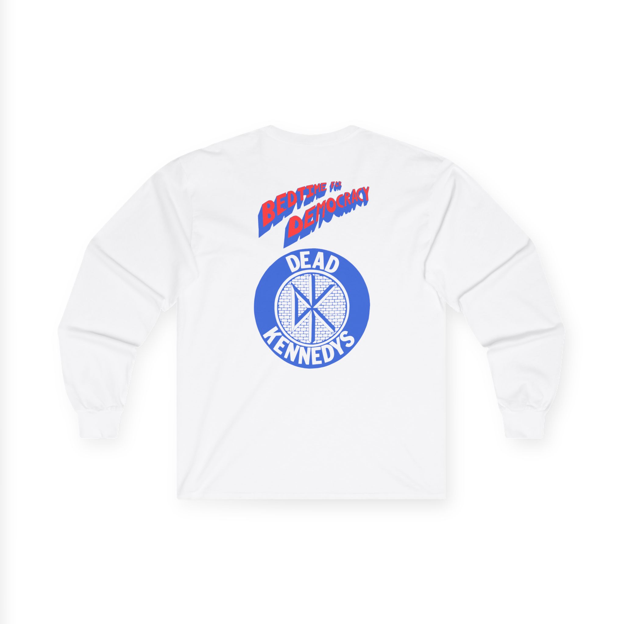 A bit more formal than a standard-issue t-shirt, the Dead Kennedys Bedtime for Democracy ultra cotton long sleeve tee is a clear comfort winner. The sleeves also act as a nice frame. There are no side seams. The shoulders are taped for improved durability. This makes for a good fitting around the shoulders and neck. The cotton used for these shirts is environmentally friendly.
