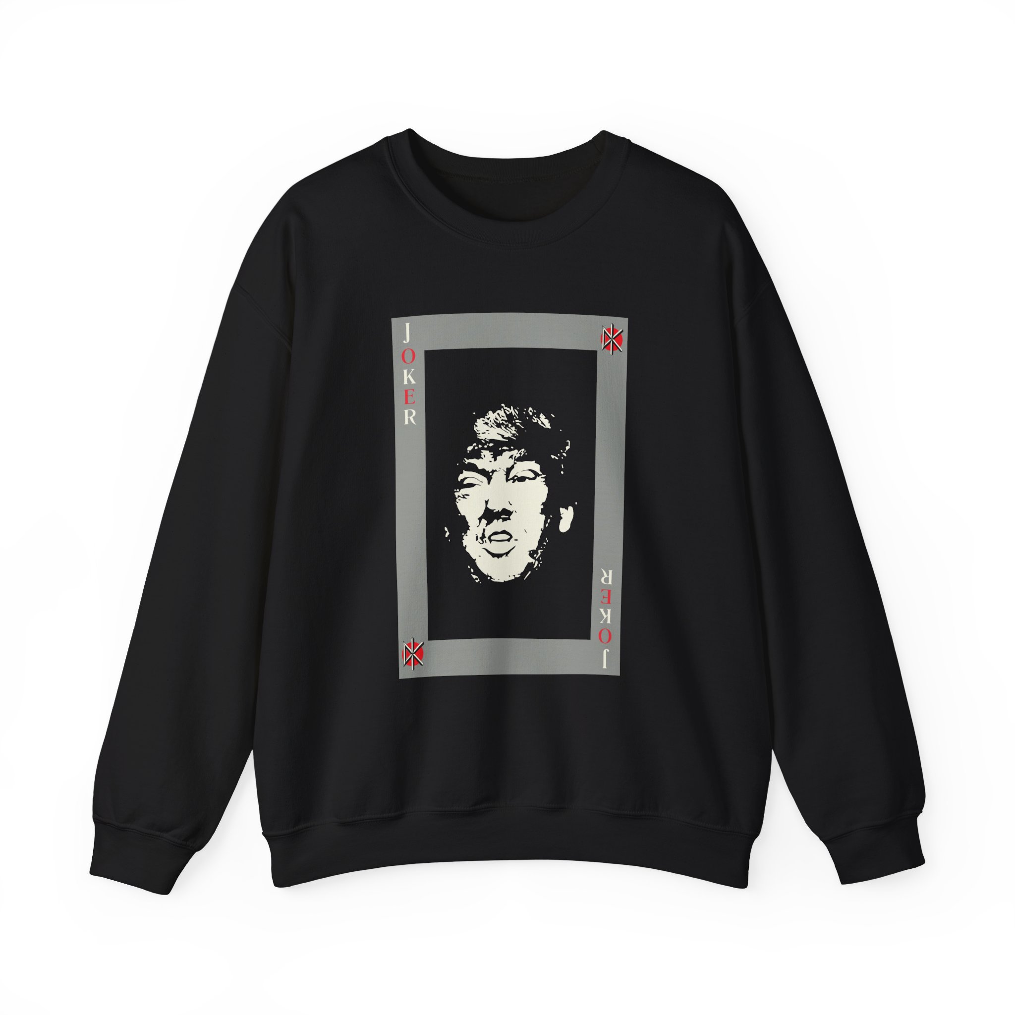 Ideal for any situation, a Dead Kennedys Joker unisex heavy blend crewneck sweatshirt is pure comfort. These garments are made from polyester and cotton. This combination helps designs come out looking fresh and beautiful. The collar is ribbed knit, so it retains its shape even after washing. There are no itchy side seams on these sweaters.