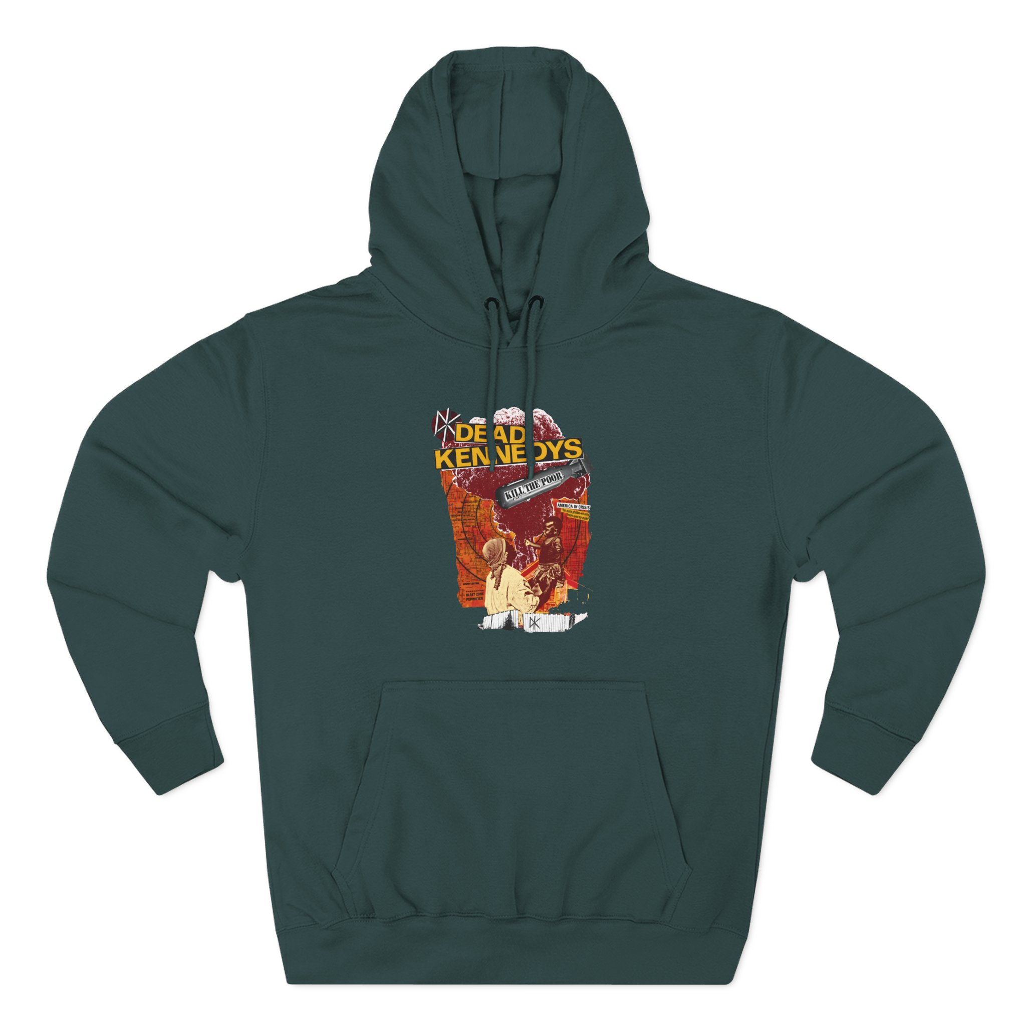 Beat the cold with this Dead Kennedys Kill the Poor premium pullover hoodie that’s just the right layer of warm and cozy. Made with three-panel fleece lining, this pullover is double stitched for durability and roomy. Pick one in your favorite color to match your style.