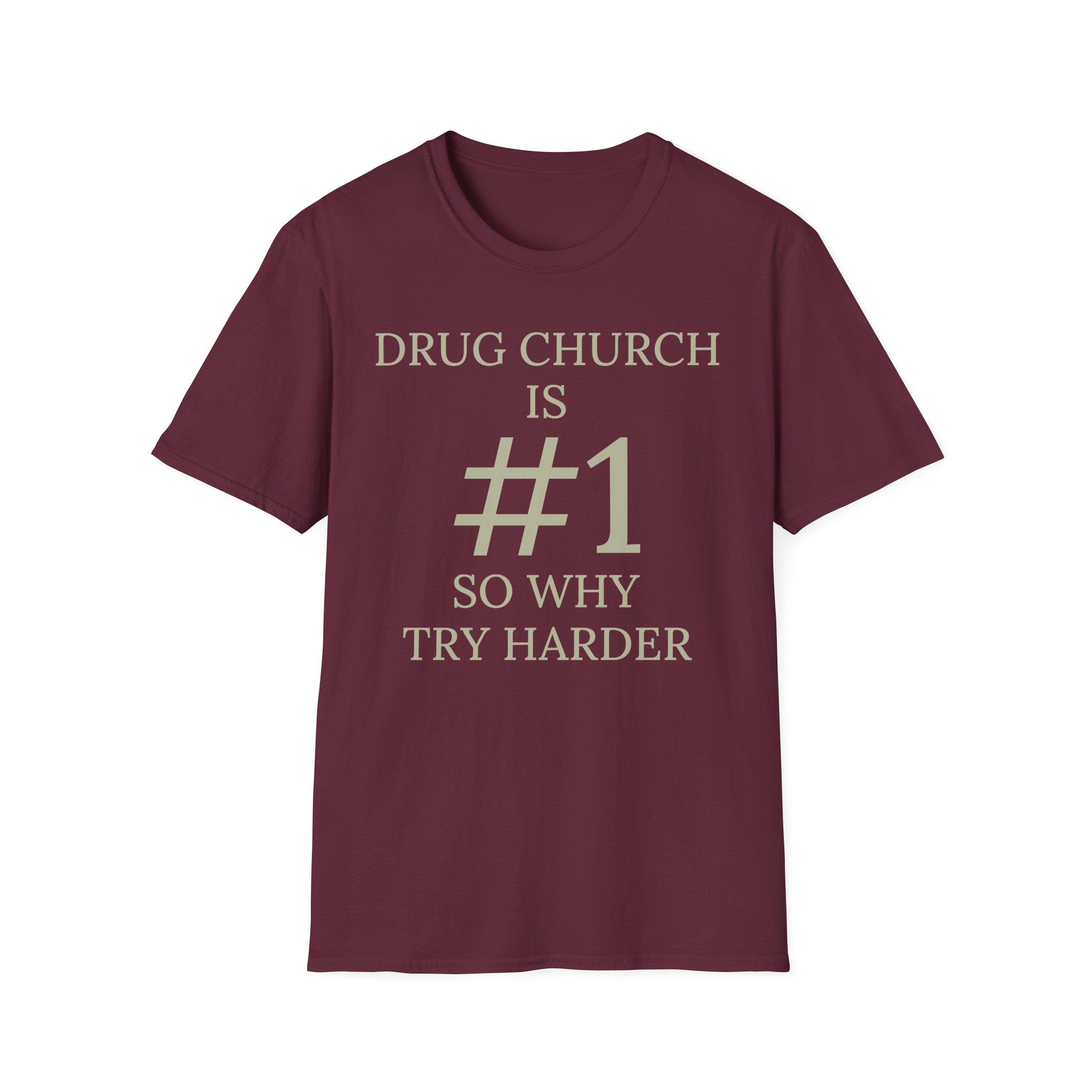 The Drug Church Is Number 1 unisex soft-style t-shirt puts a new spin on casual comfort. Made from very soft materials, this tee is 100% cotton for solid colors. Heather colors and sports grey include polyester. The shoulders have twill tape for improved durability. There are no side seams. The collar is made with ribbed knitting to prevent curling damage.