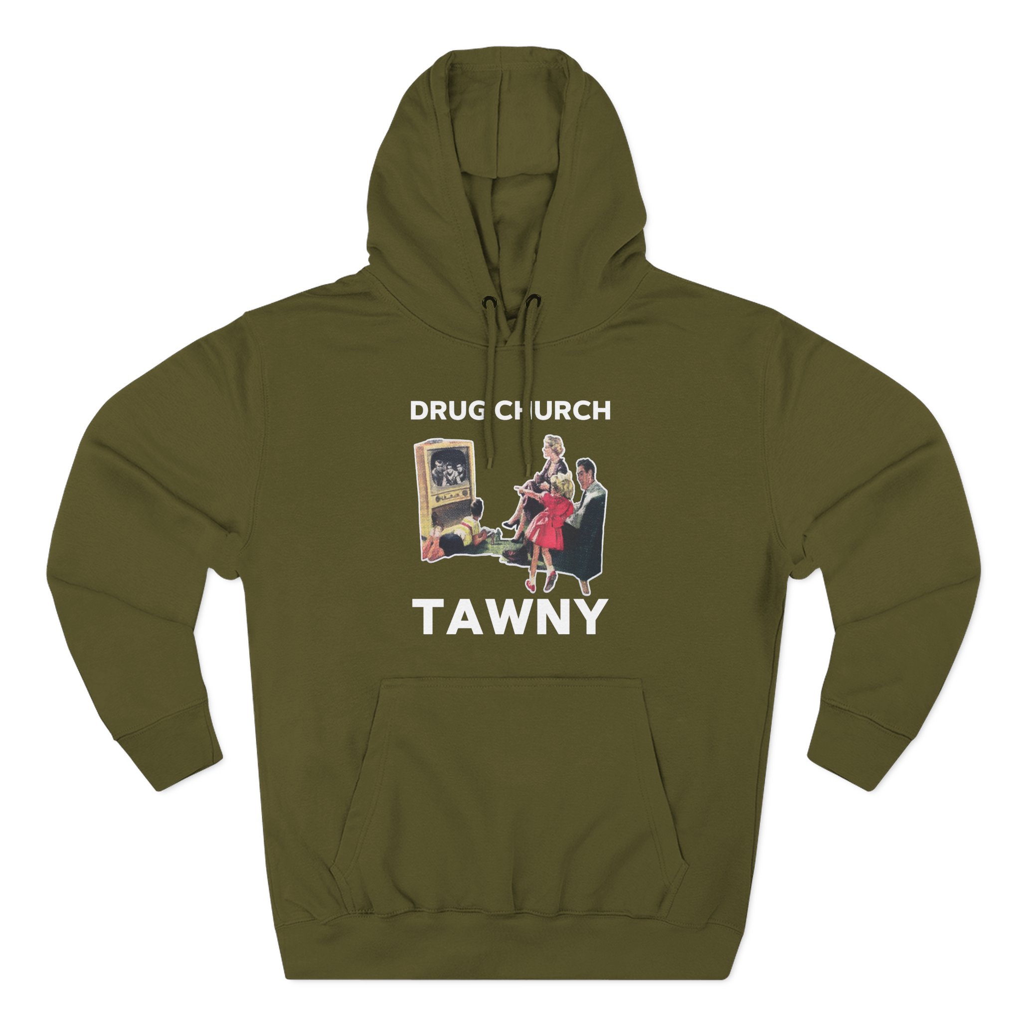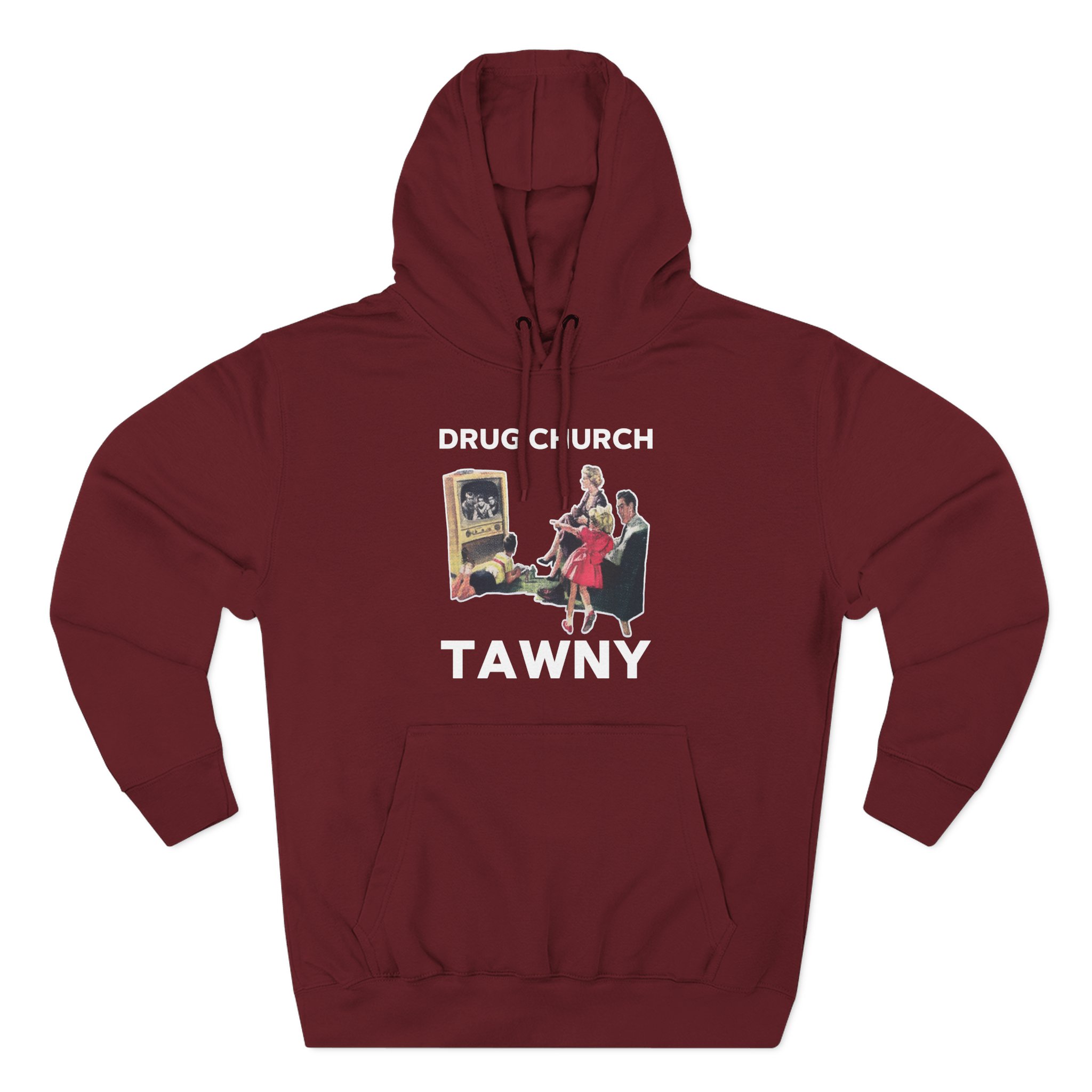 Beat the cold with this Drug Church TV premium pullover hoodie that’s just the right layer of warm and cozy. Made with three-panel fleece lining, this pullover is double stitched for durability and roomy. Pick one in your favorite color to match your style.