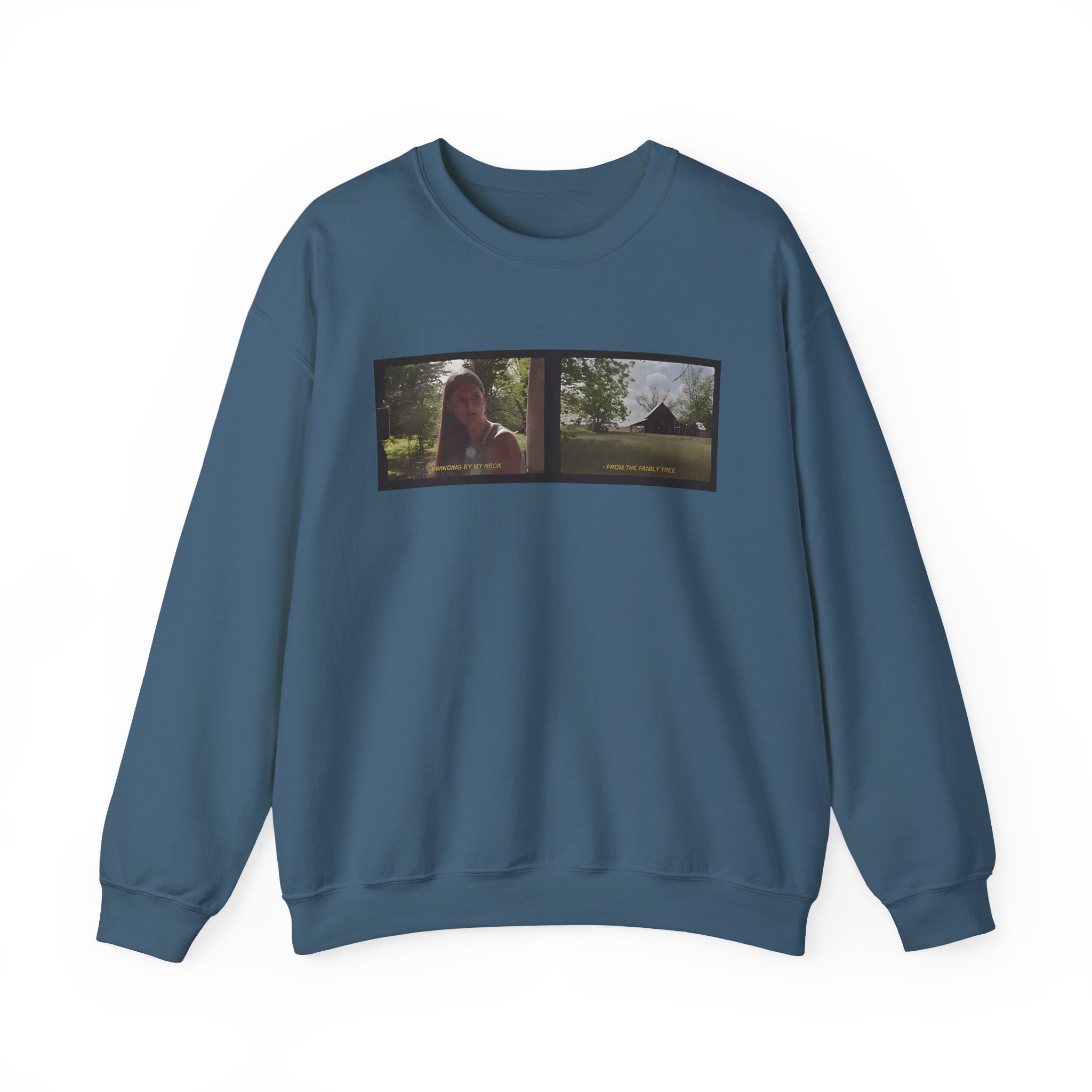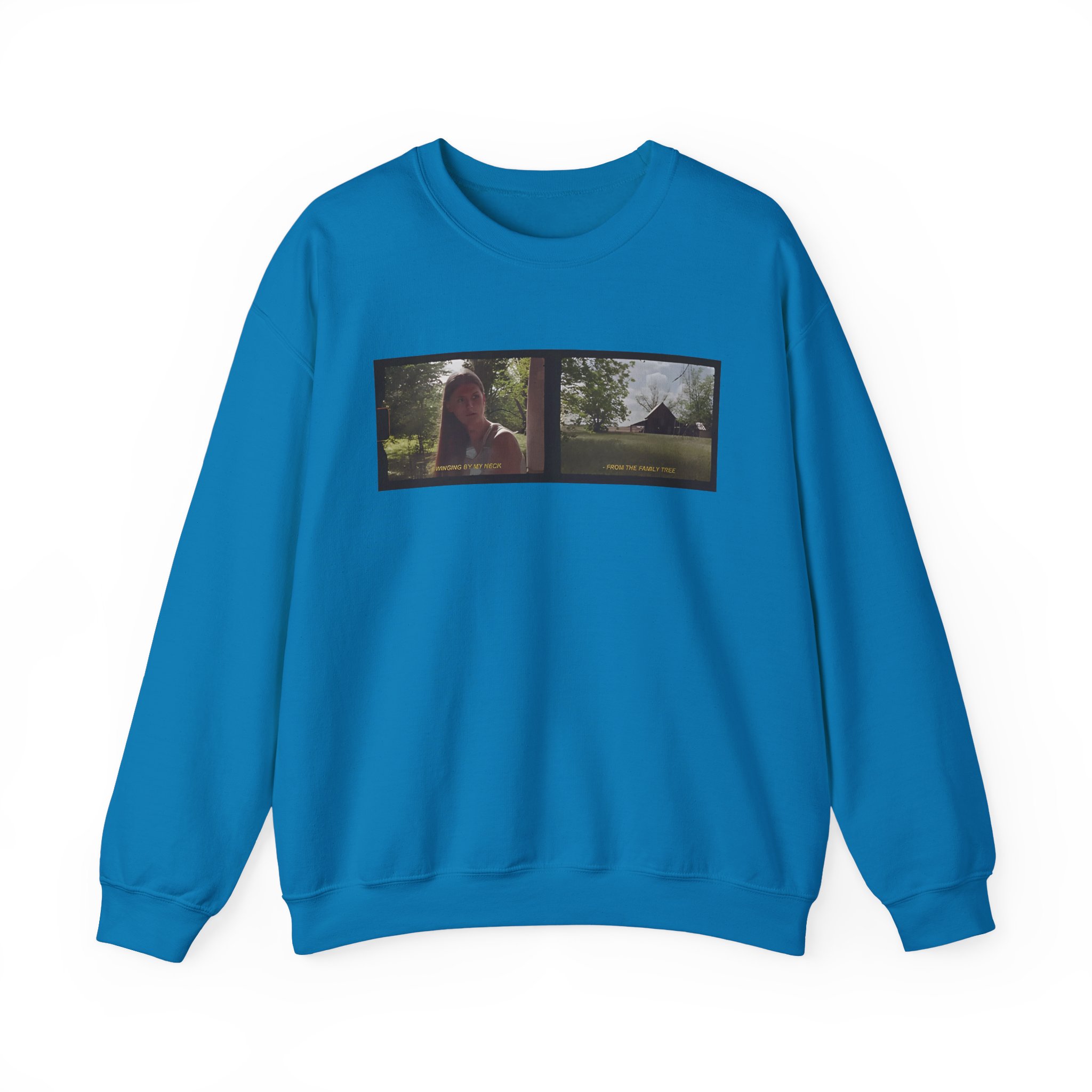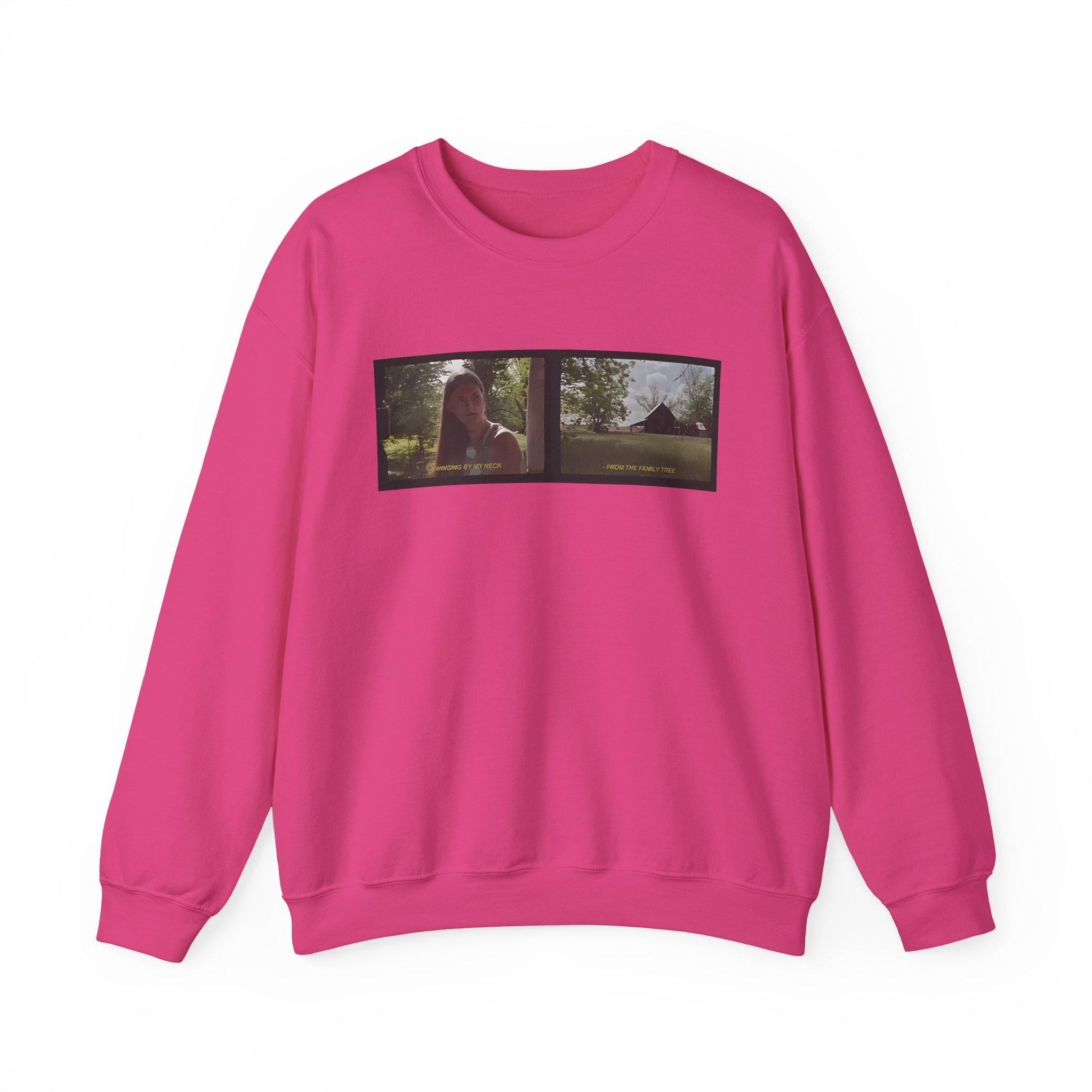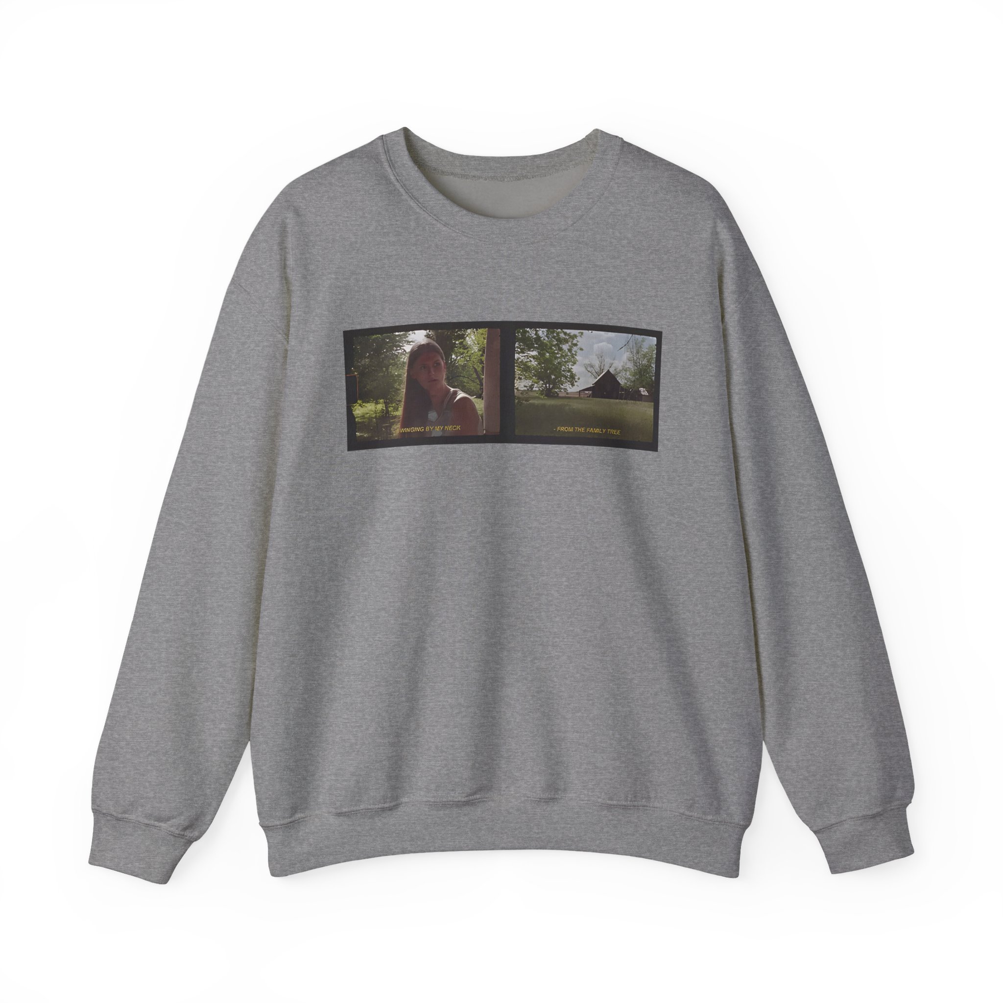 Ideal for any situation, a Ethel Cain Family Tree Film Still Nebraska unisex heavy blend crewneck sweatshirt is pure comfort. These garments are made from polyester and cotton. This combination helps designs come out looking fresh and beautiful. The collar is ribbed knit, so it retains its shape even after washing. There are no itchy side seams on these sweaters.