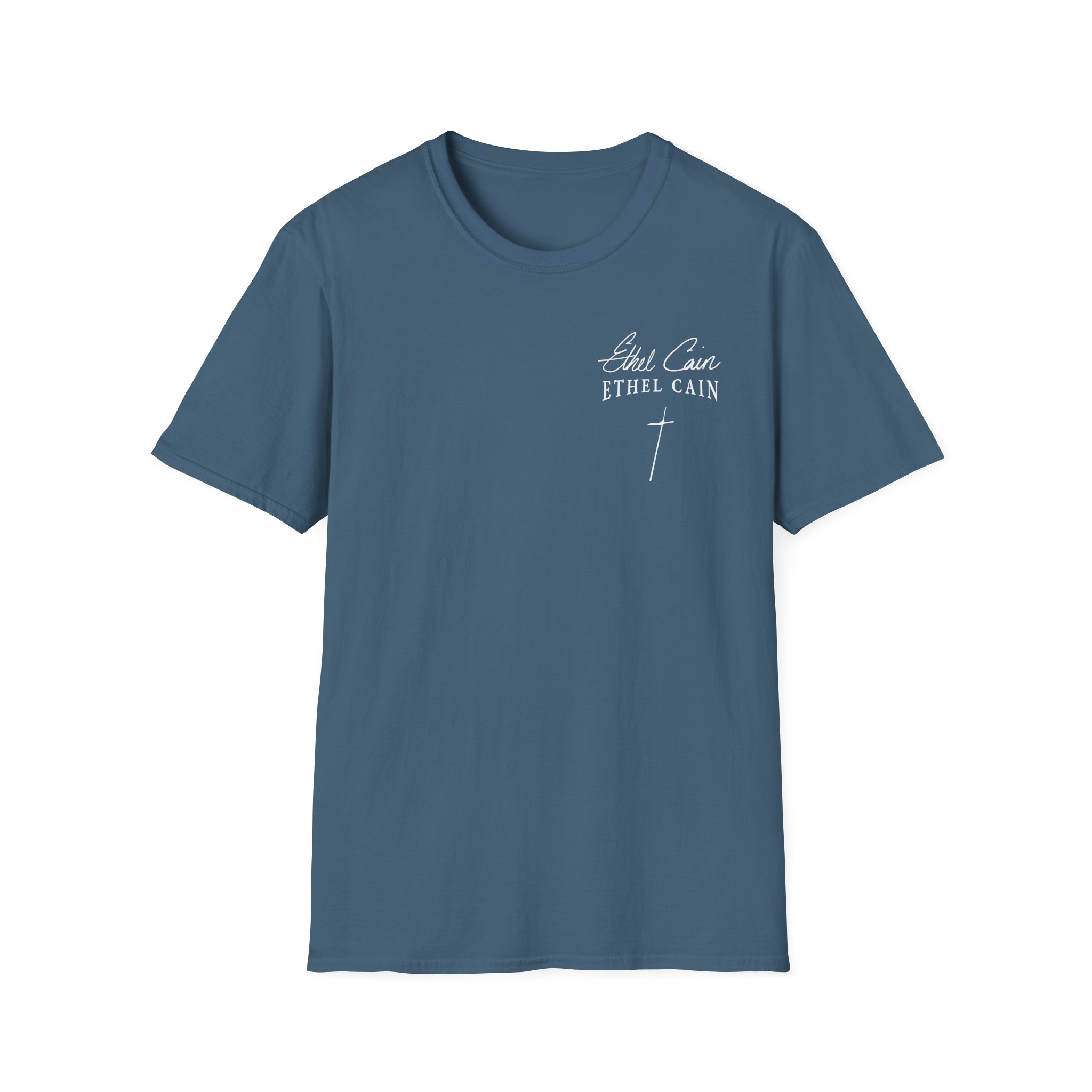 The Ethel Cain Logo unisex soft-style t-shirt puts a new spin on casual comfort. Made from very soft materials, this tee is 100% cotton for solid colors. Heather colors and sports grey include polyester. The shoulders have twill tape for improved durability. There are no side seams. The collar is made with ribbed knitting to prevent curling damage.