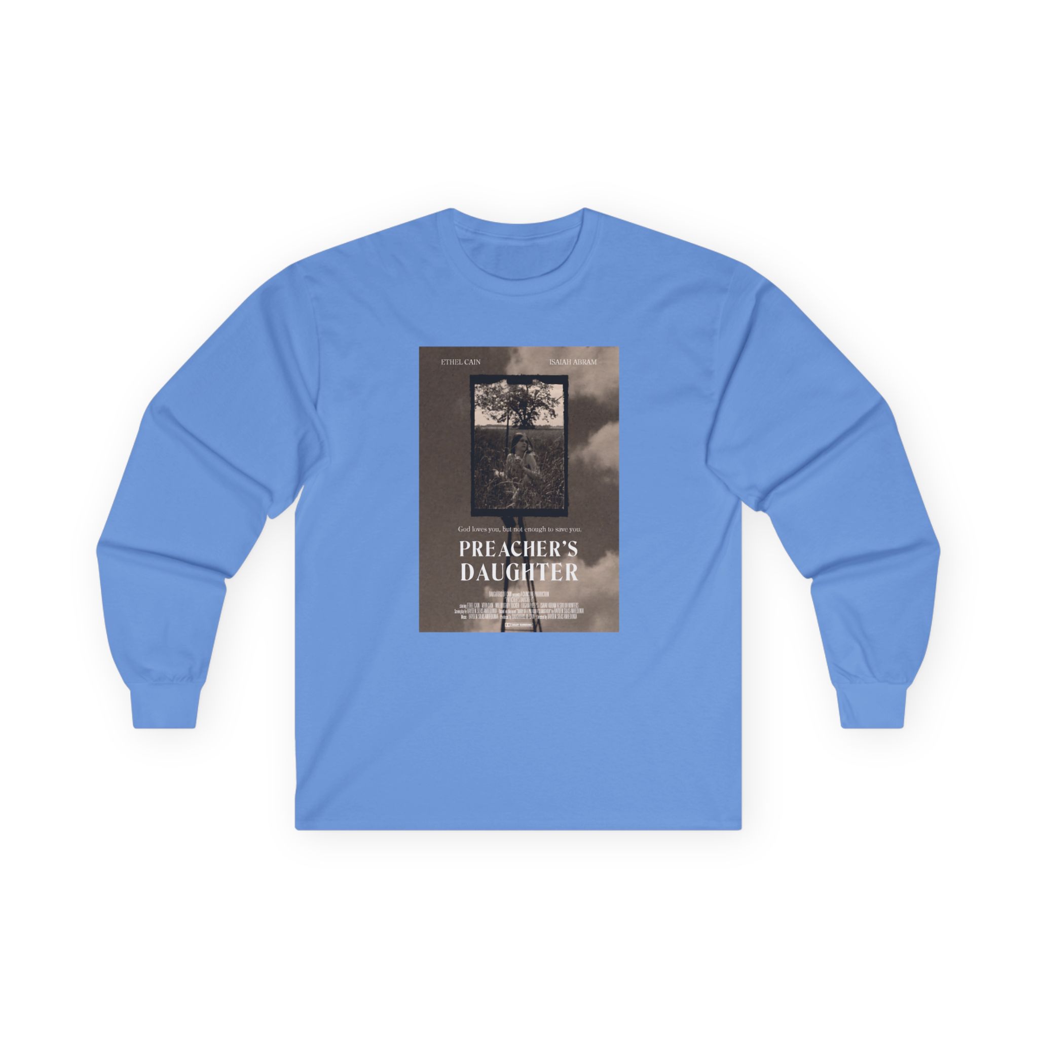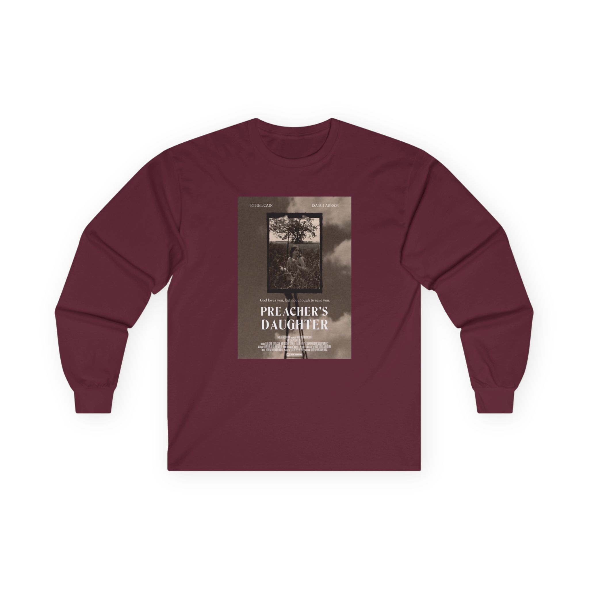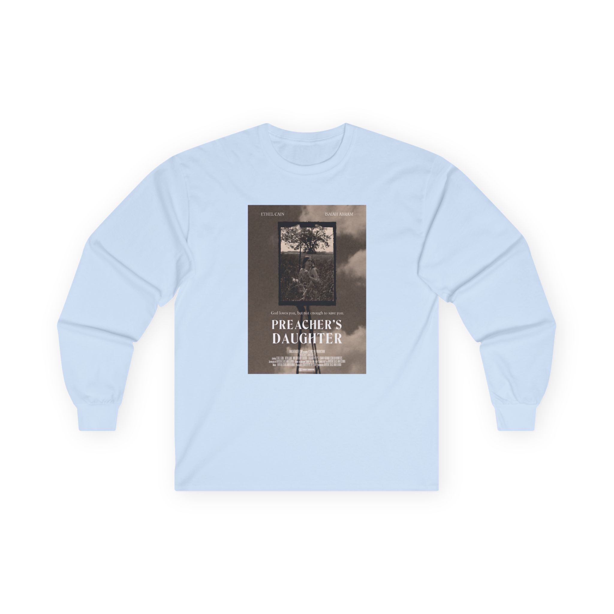 A bit more formal than a standard-issue t-shirt, the Ethel Cain Preacher’s Daughter Movie Poster ultra cotton long sleeve tee is a clear comfort winner. The sleeves also act as a nice frame. There are no side seams. The shoulders are taped for improved durability. This makes for a good fitting around the shoulders and neck. The cotton used for these shirts is environmentally friendly.