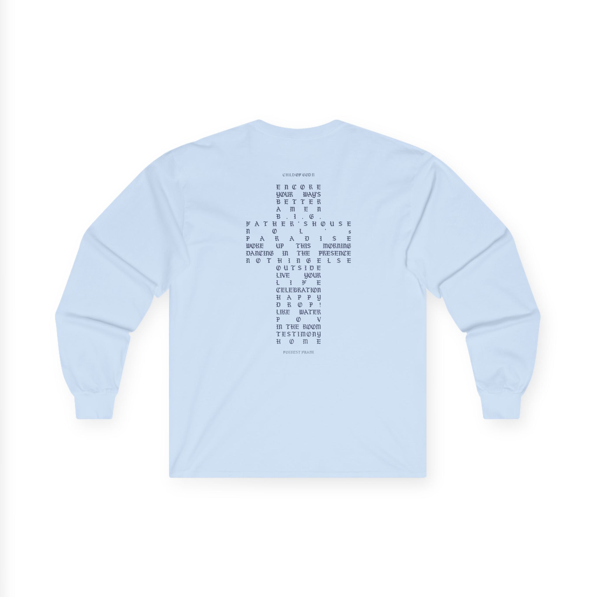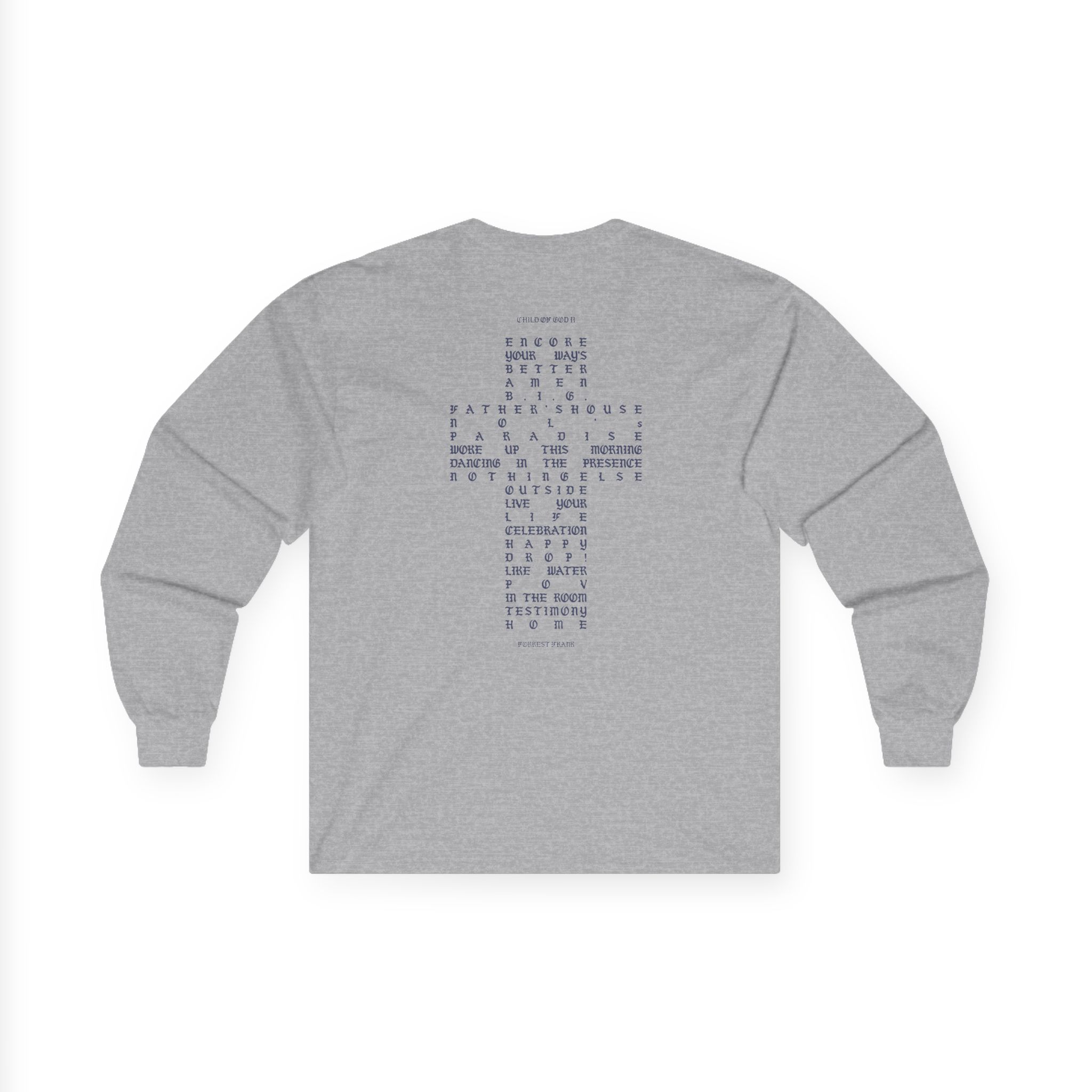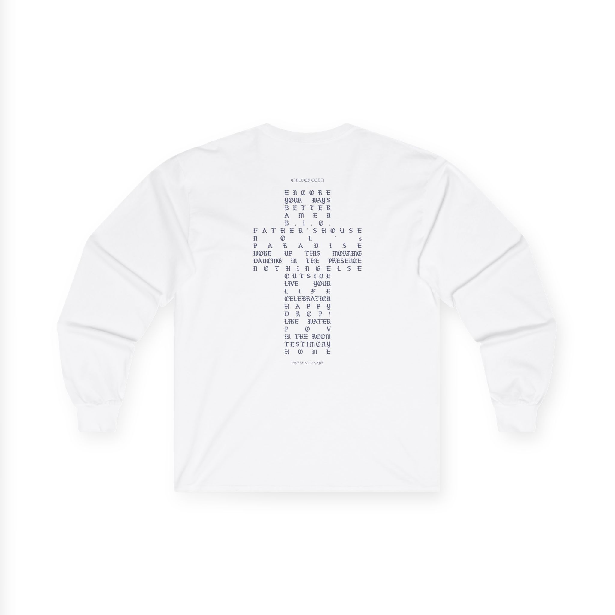 A bit more formal than a standard-issue t-shirt, the Forrest Frank Child of God Ii Tracklist ultra cotton long sleeve tee is a clear comfort winner. The sleeves also act as a nice frame. There are no side seams. The shoulders are taped for improved durability. This makes for a good fitting around the shoulders and neck. The cotton used for these shirts is environmentally friendly.