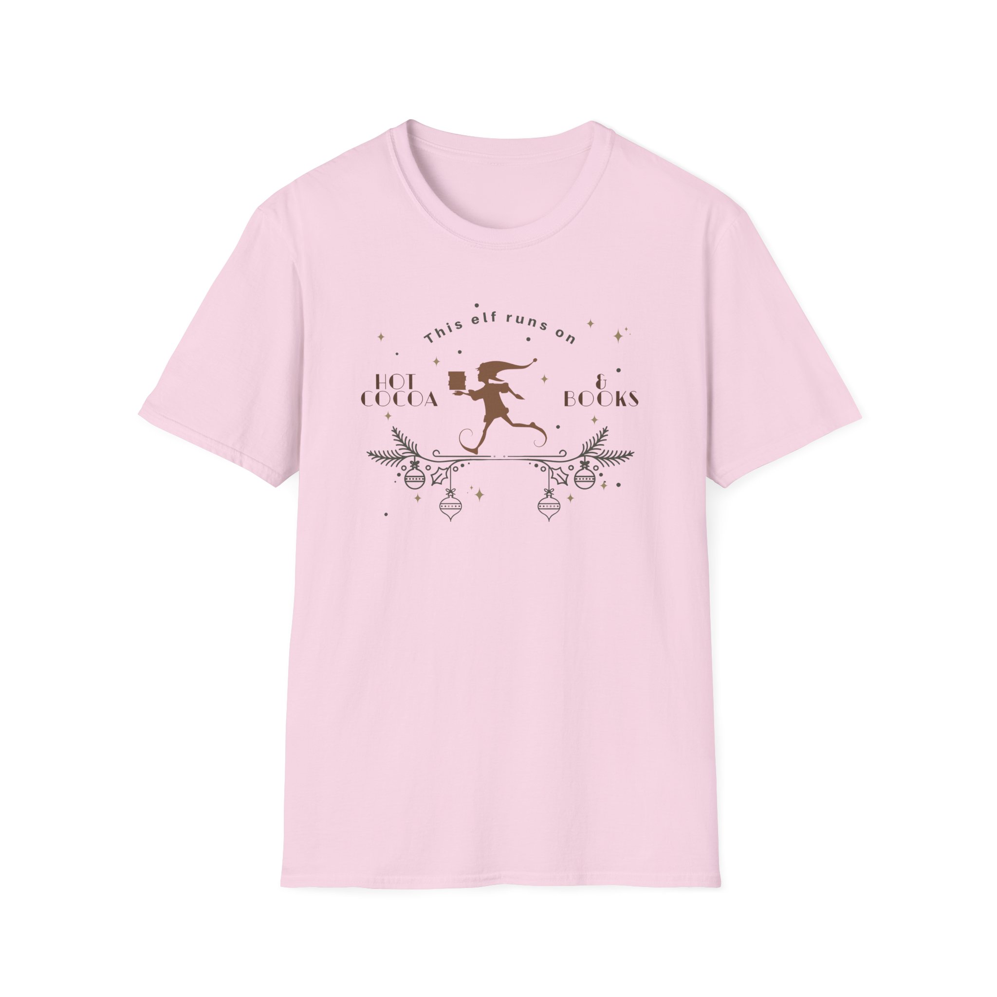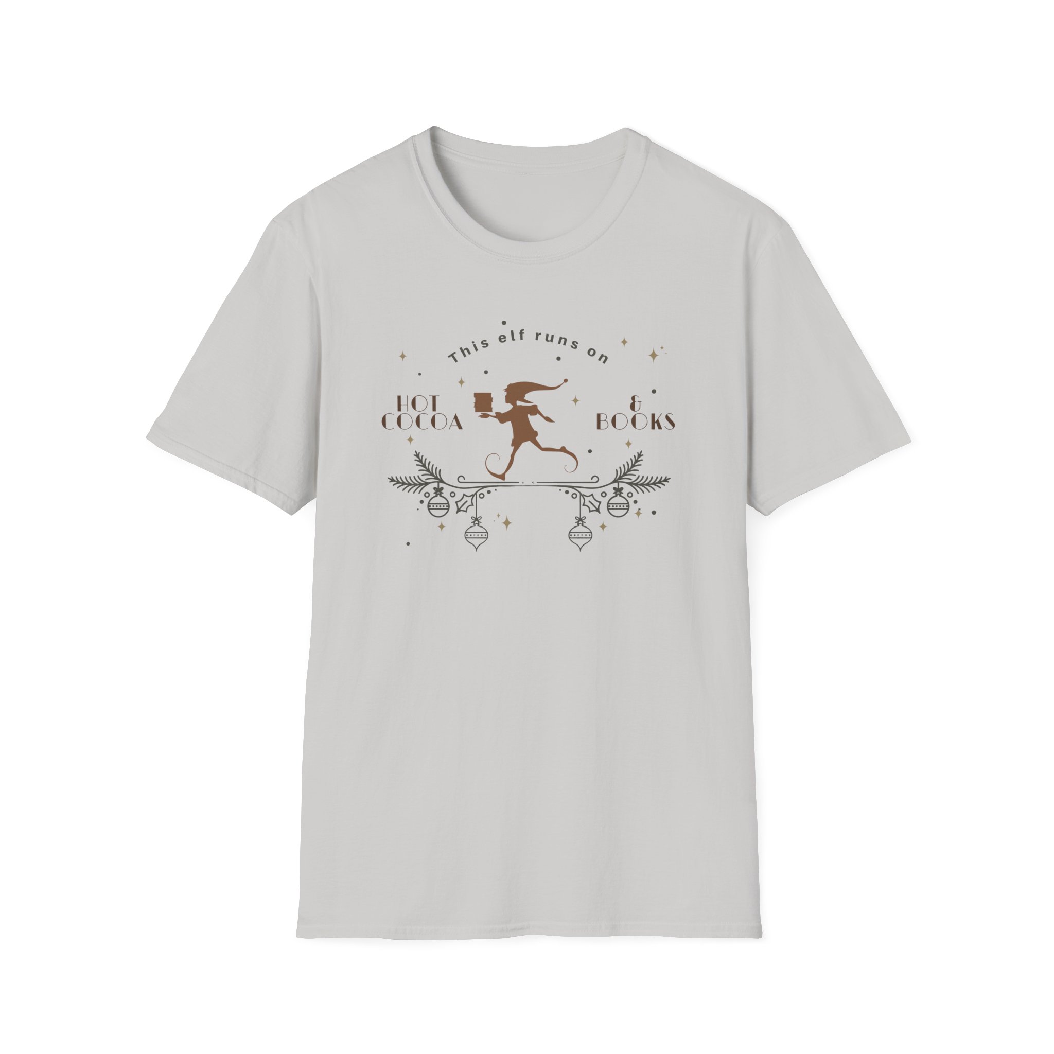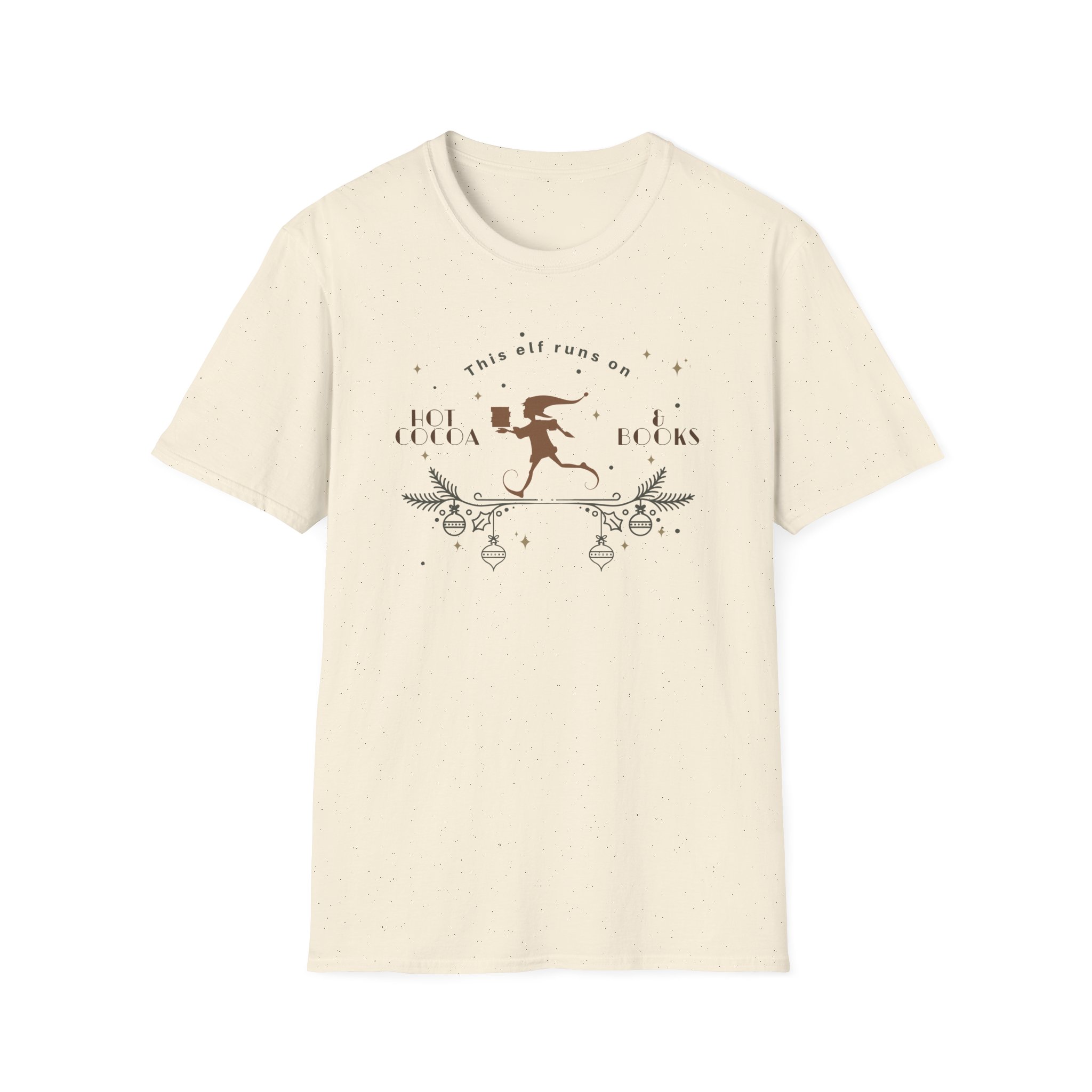 The Fourth Wing This Elf Runs on Hot Cocoa and Books unisex soft-style t-shirt puts a new spin on casual comfort. Made from very soft materials, this tee is 100% cotton for solid colors. Heather colors and sports grey include polyester. The shoulders have twill tape for improved durability. There are no side seams. The collar is made with ribbed knitting to prevent curling damage.