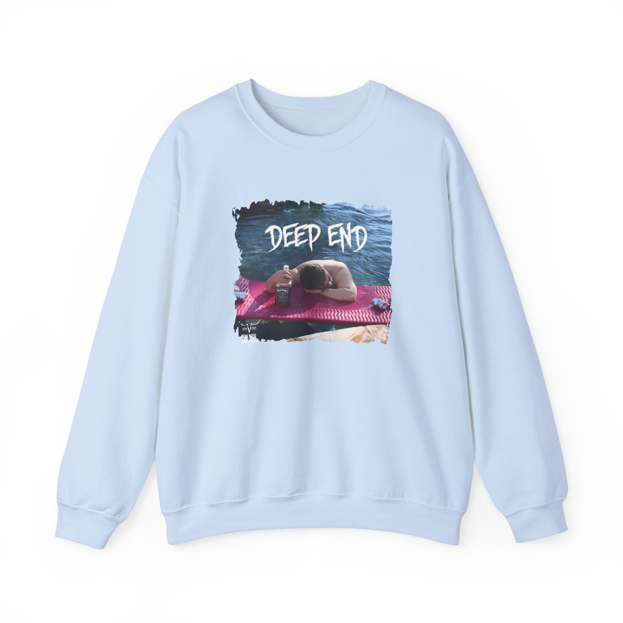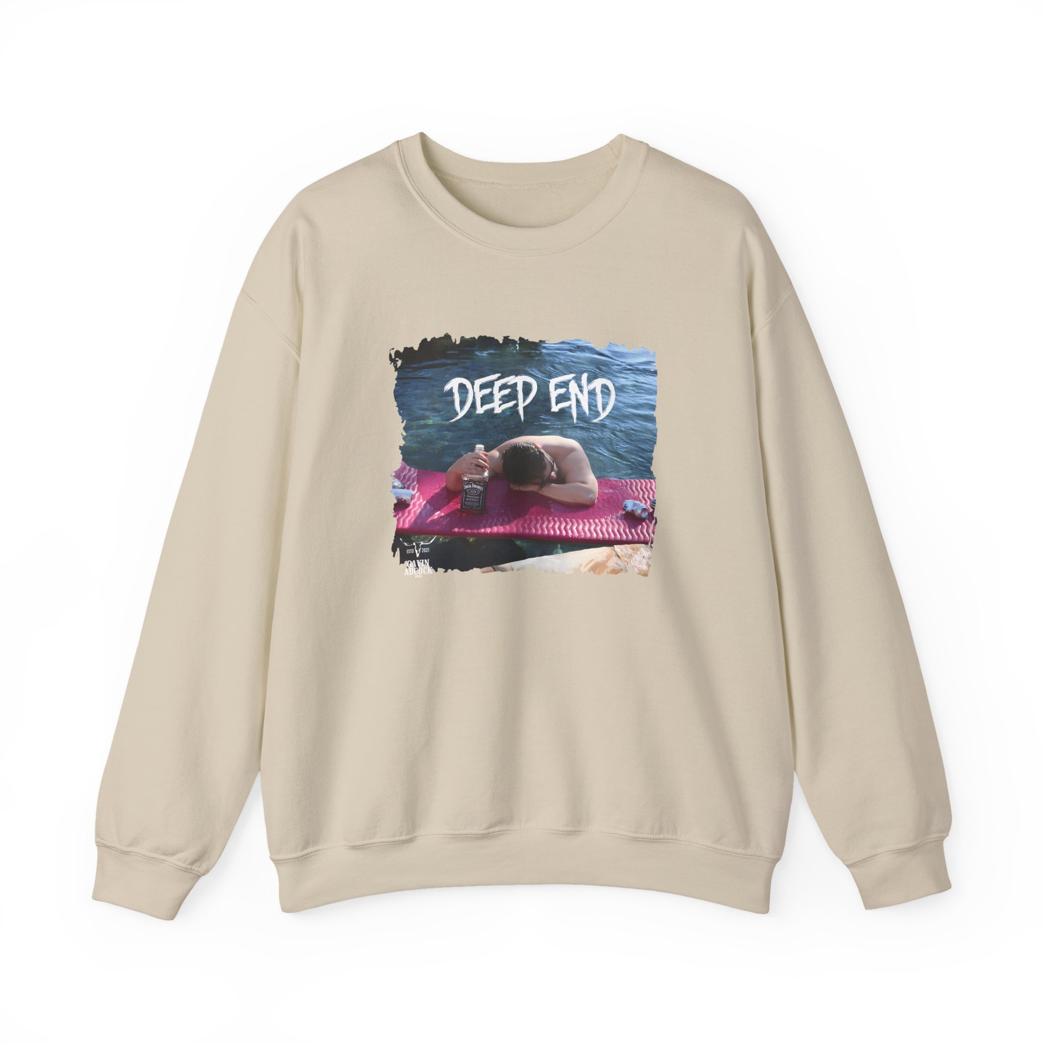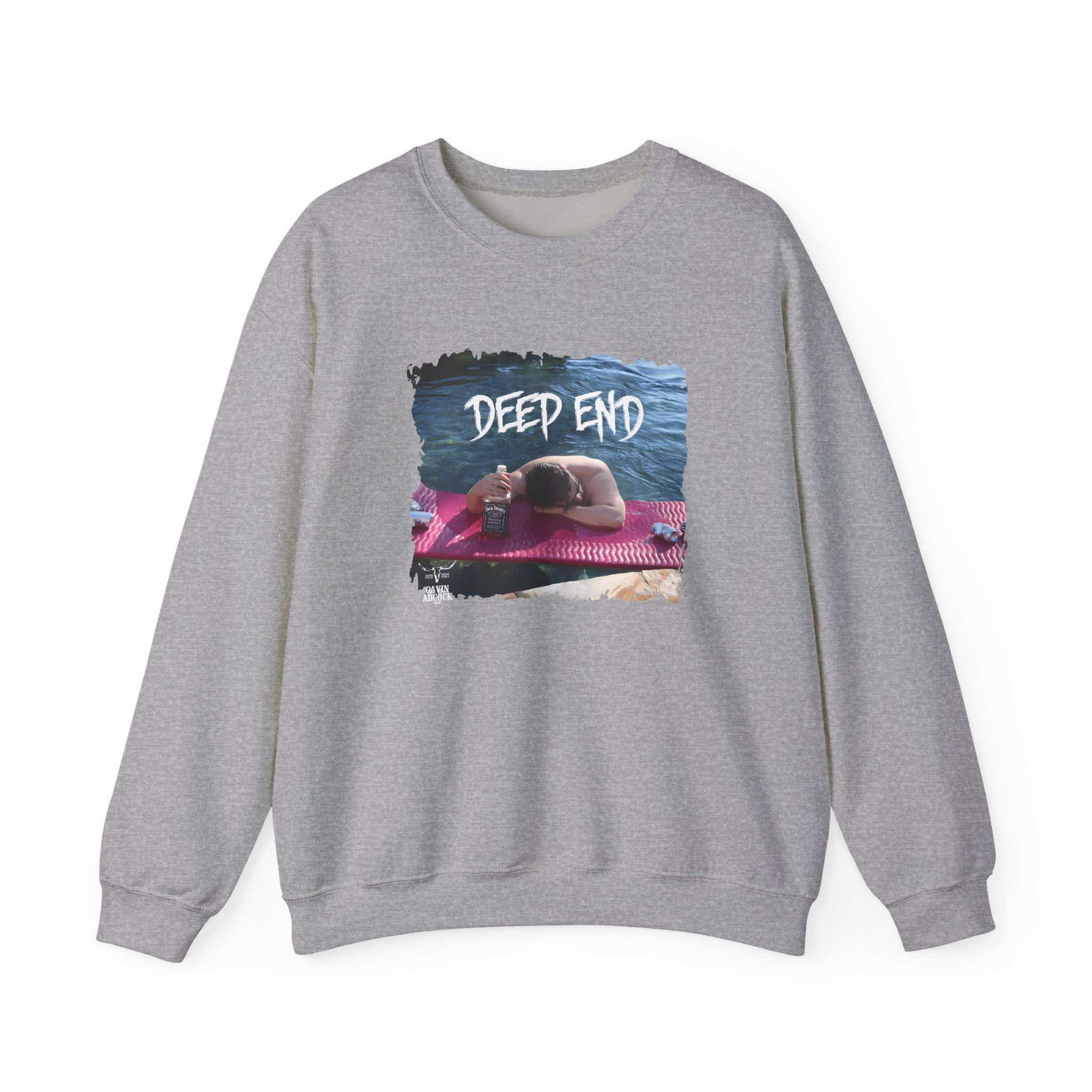 Ideal for any situation, a Gavin Adcock Deep End unisex heavy blend crewneck sweatshirt is pure comfort. These garments are made from polyester and cotton. This combination helps designs come out looking fresh and beautiful. The collar is ribbed knit, so it retains its shape even after washing. There are no itchy side seams on these sweaters.