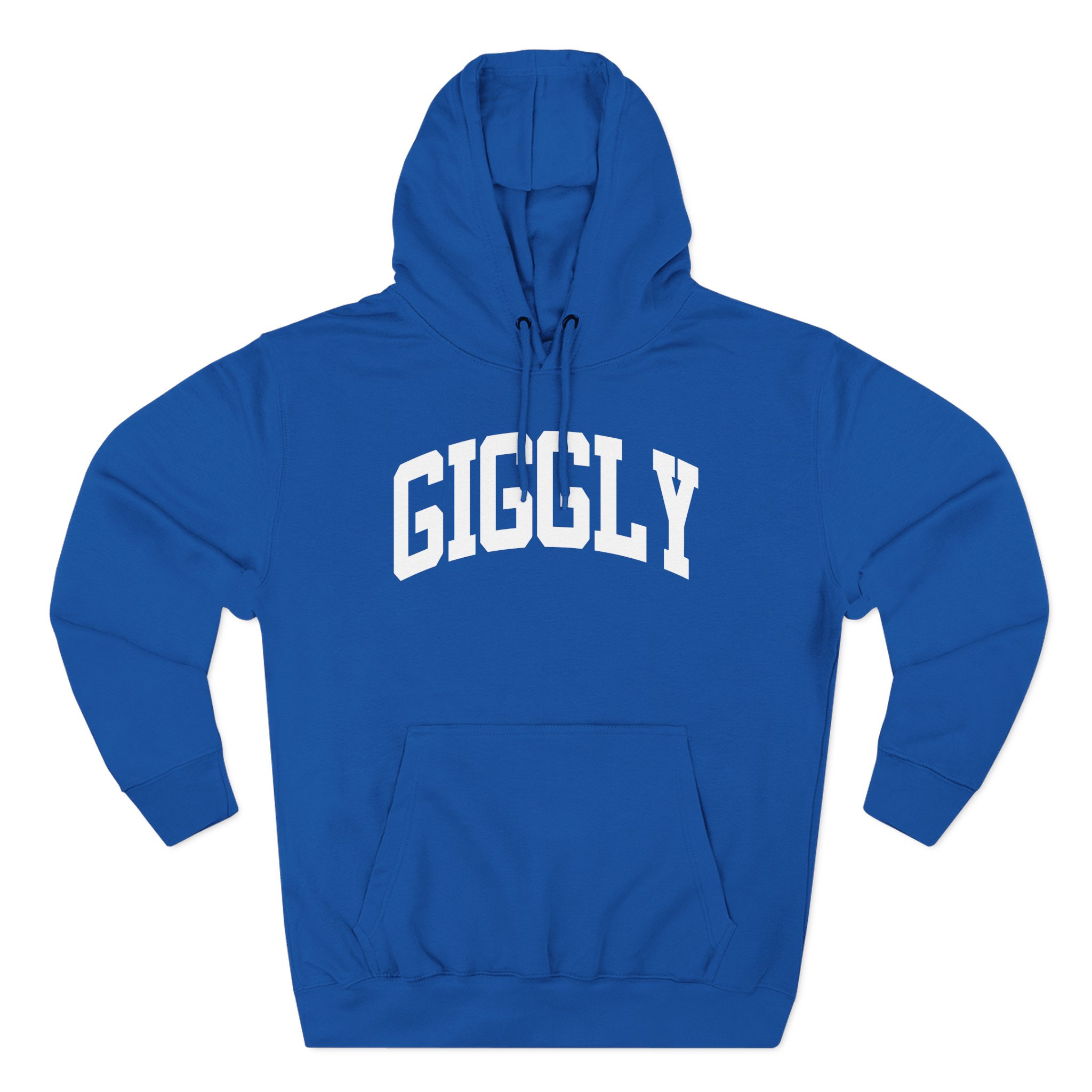 Beat the cold with this Giggly Squad Collegiate premium pullover hoodie that’s just the right layer of warm and cozy. Made with three-panel fleece lining, this pullover is double stitched for durability and roomy. Pick one in your favorite color to match your style.