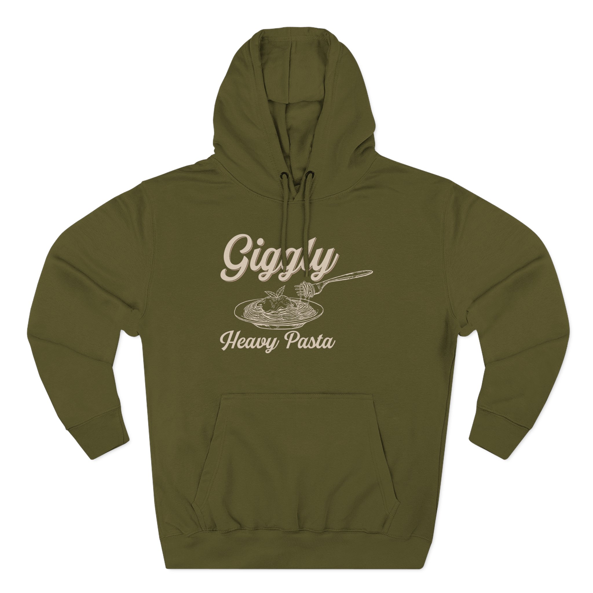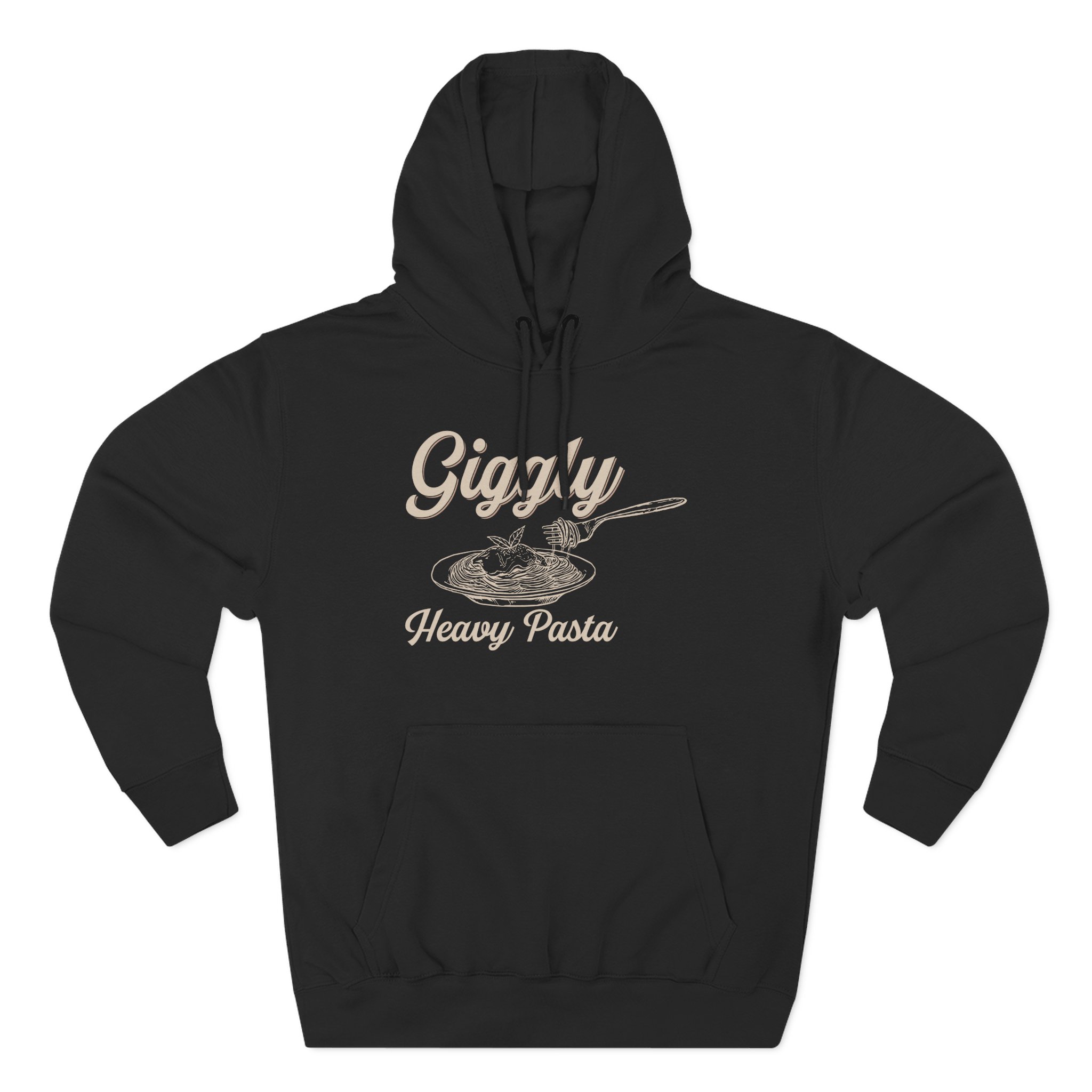 Beat the cold with this Giggly Squad Heavy Pasta premium pullover hoodie that’s just the right layer of warm and cozy. Made with three-panel fleece lining, this pullover is double stitched for durability and roomy. Pick one in your favorite color to match your style.