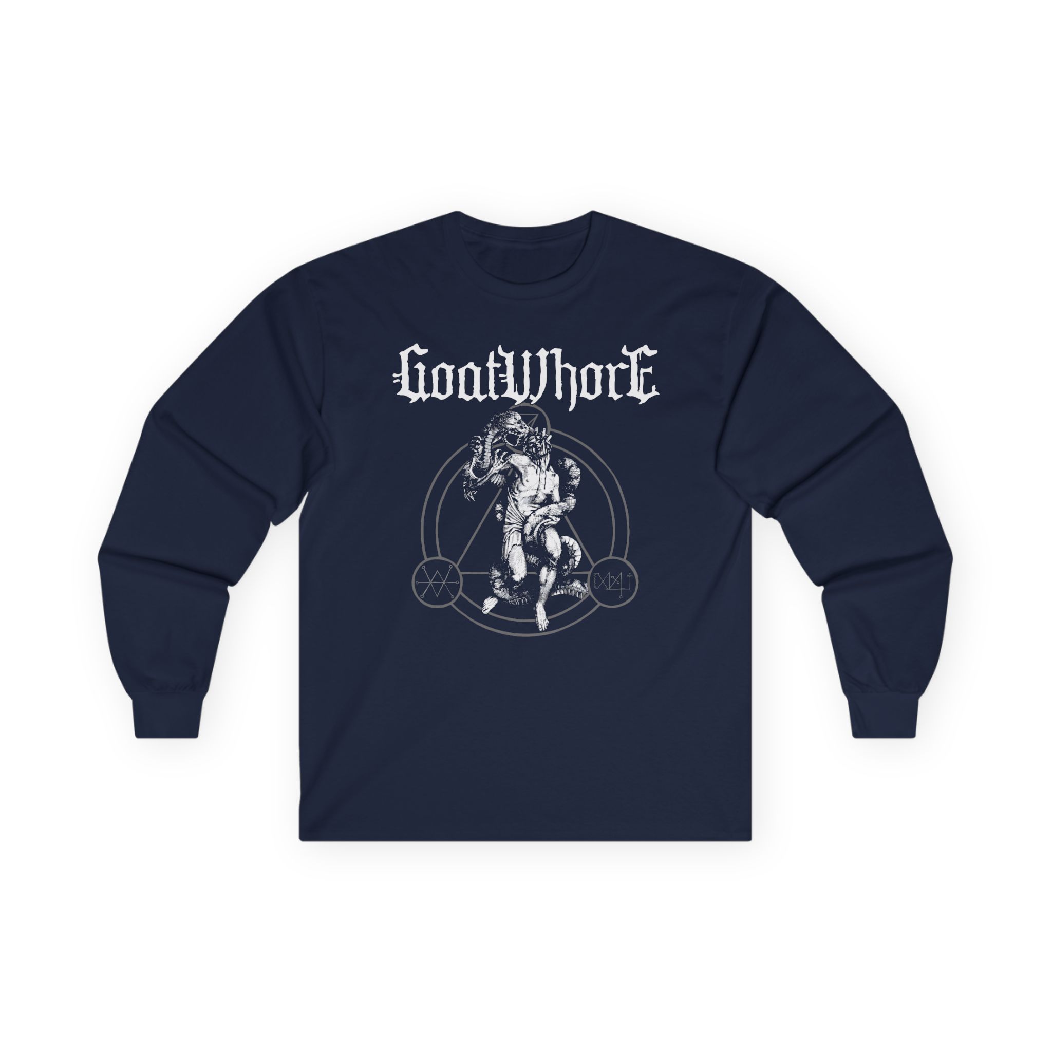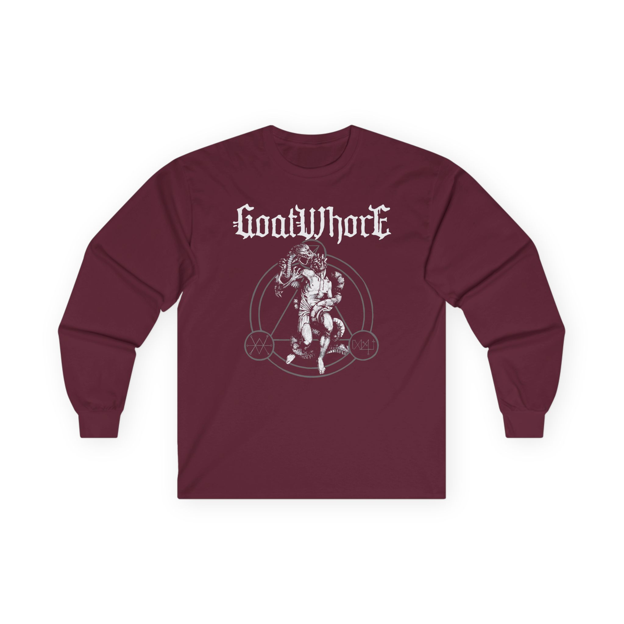 A bit more formal than a standard-issue t-shirt, the Goatwhore serpent Soul ultra cotton long sleeve tee is a clear comfort winner. The sleeves also act as a nice frame. There are no side seams. The shoulders are taped for improved durability. This makes for a good fitting around the shoulders and neck. The cotton used for these shirts is environmentally friendly.