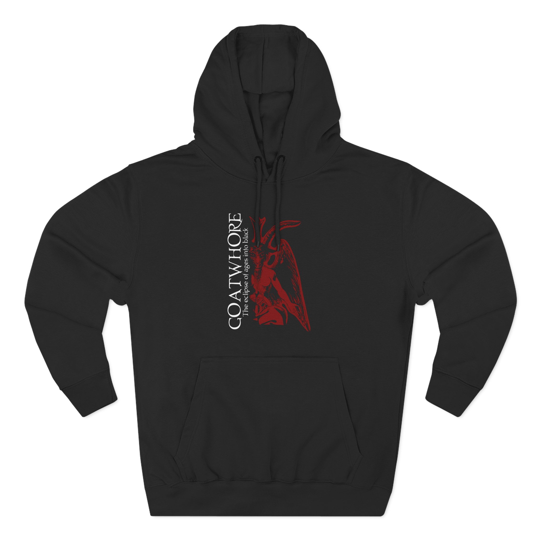 Beat the cold with this premium Goatwhore pullover hoodie that’s just the right layer of warm and cozy. Made with three-panel fleece lining, this pullover is double stitched for durability and roomy. Pick one in your favorite color to match your style.