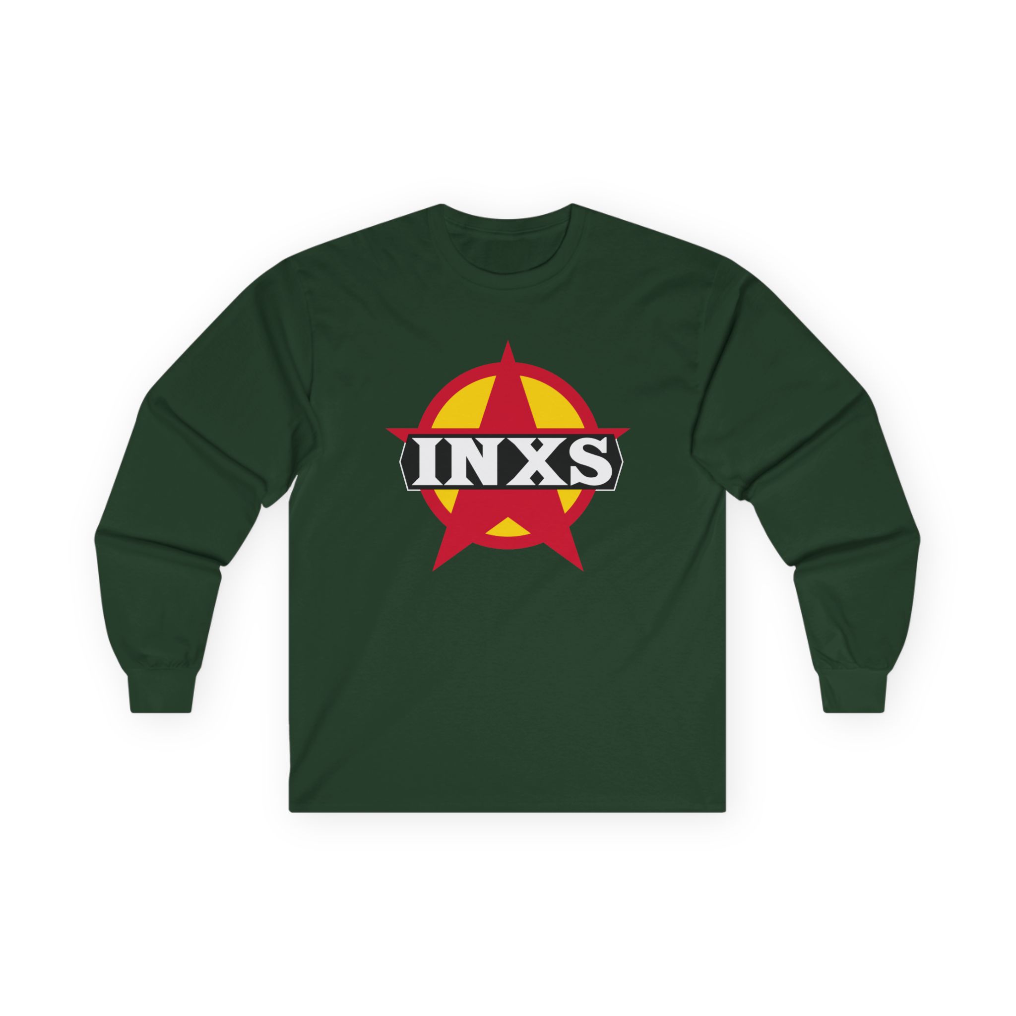 A bit more formal than a standard-issue t-shirt, the Inxs Vintage Star Logo ultra cotton long sleeve tee is a clear comfort winner. The sleeves also act as a nice frame. There are no side seams. The shoulders are taped for improved durability. This makes for a good fitting around the shoulders and neck. The cotton used for these shirts is environmentally friendly.