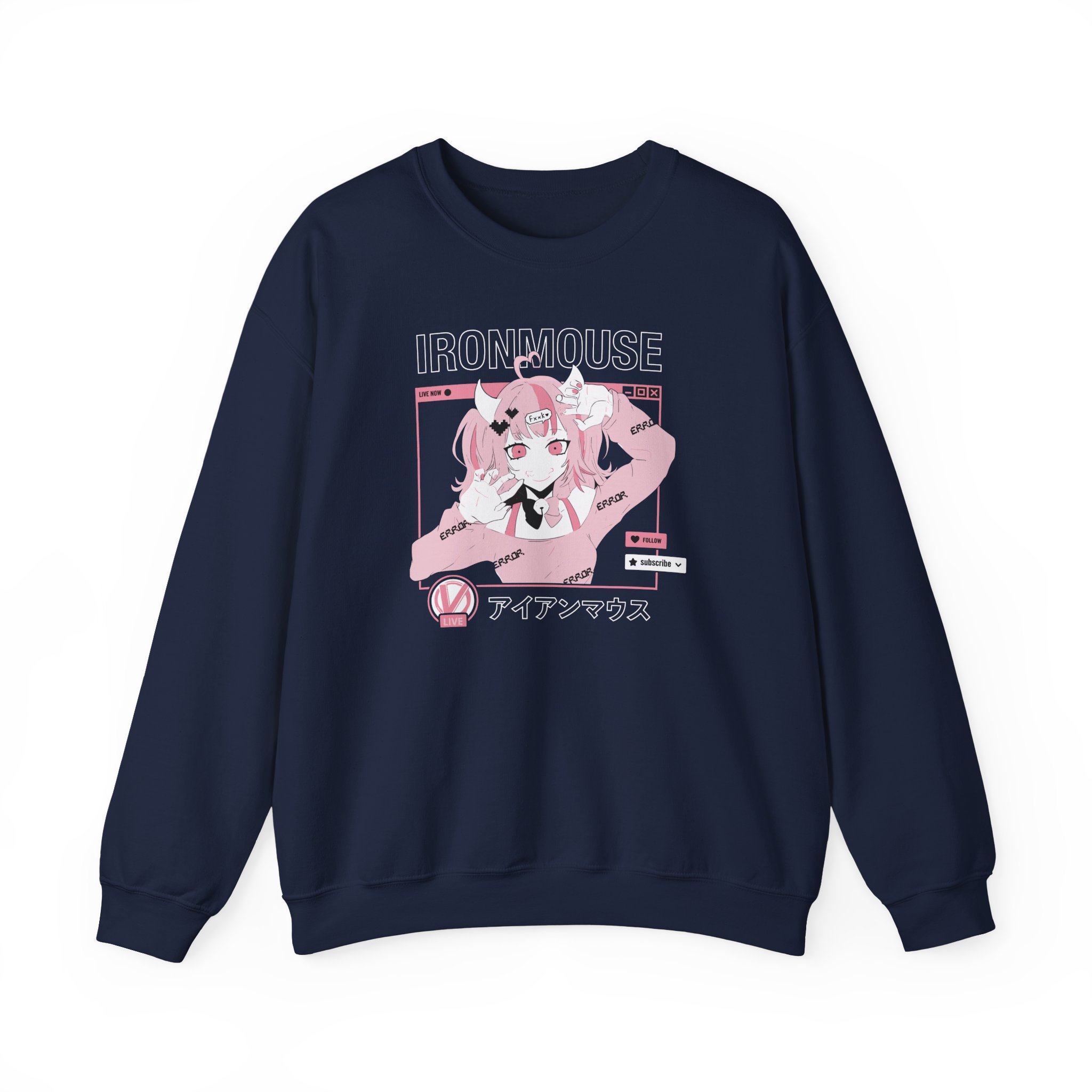 Ideal for any situation, a Ironmouse Live unisex heavy blend crewneck sweatshirt is pure comfort. These garments are made from polyester and cotton. This combination helps designs come out looking fresh and beautiful. The collar is ribbed knit, so it retains its shape even after washing. There are no itchy side seams on these sweaters.