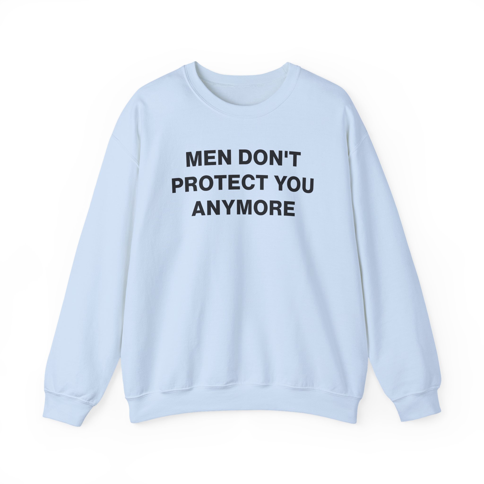 Ideal for any situation, a Jenny Holzer Men Don´t Protect You Anymore unisex heavy blend crewneck sweatshirt is pure comfort. These garments are made from polyester and cotton. This combination helps designs come out looking fresh and beautiful. The collar is ribbed knit, so it retains its shape even after washing. There are no itchy side seams on these sweaters.