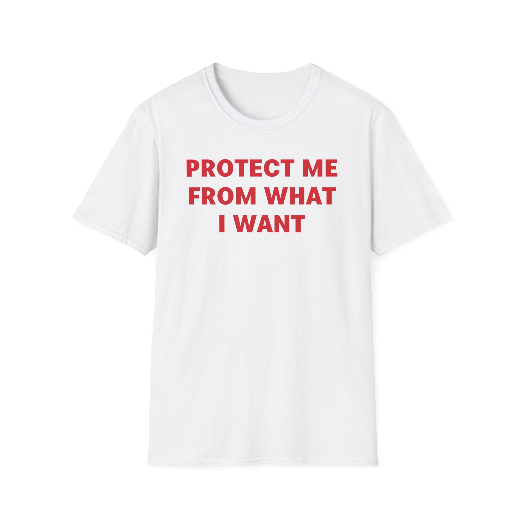 The Jenny Holzer Protect Me From What I Want unisex soft-style t-shirt puts a new spin on casual comfort. Made from very soft materials, this tee is 100% cotton for solid colors. Heather colors and sports grey include polyester. The shoulders have twill tape for improved durability. There are no side seams. The collar is made with ribbed knitting to prevent curling damage.