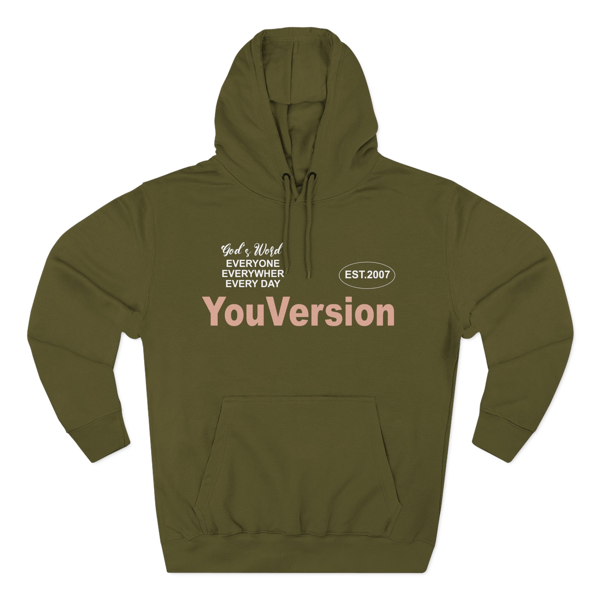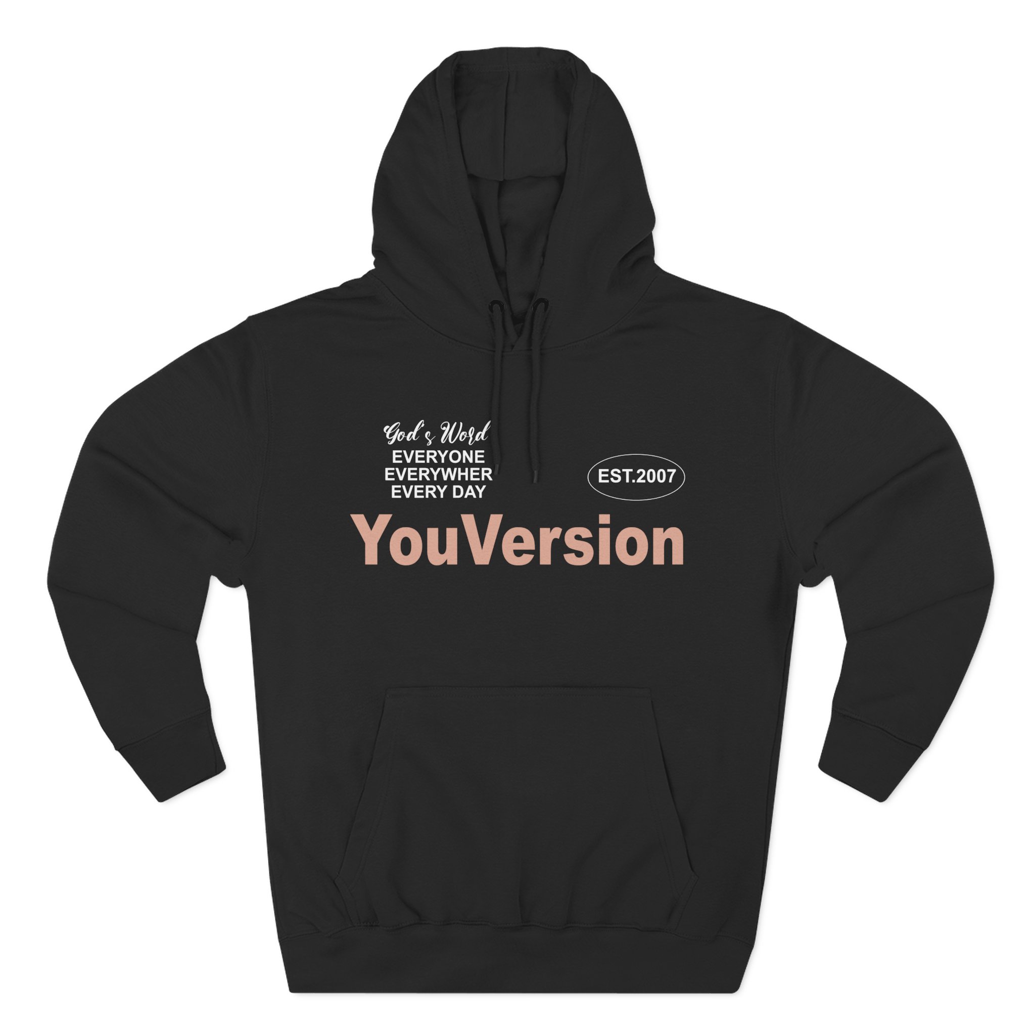 Beat the cold with this Life Church Youversion premium pullover hoodie that’s just the right layer of warm and cozy. Made with three-panel fleece lining, this pullover is double stitched for durability and roomy. Pick one in your favorite color to match your style.