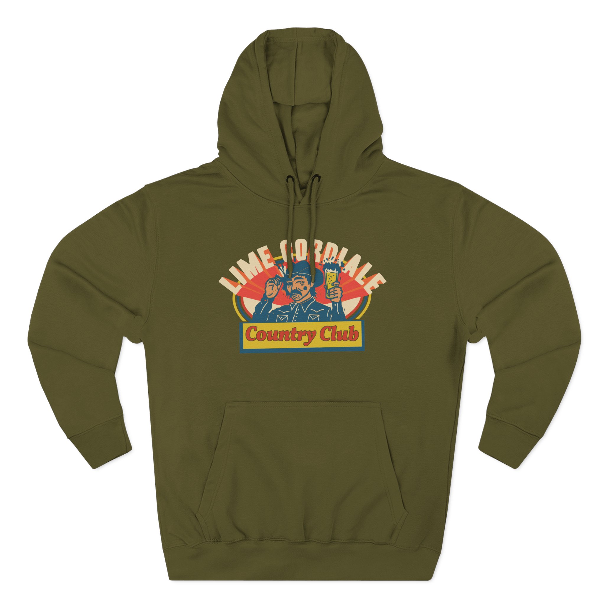 Beat the cold with this Lime Cordiale Country Club premium pullover hoodie that’s just the right layer of warm and cozy. Made with three-panel fleece lining, this pullover is double stitched for durability and roomy. Pick one in your favorite color to match your style.