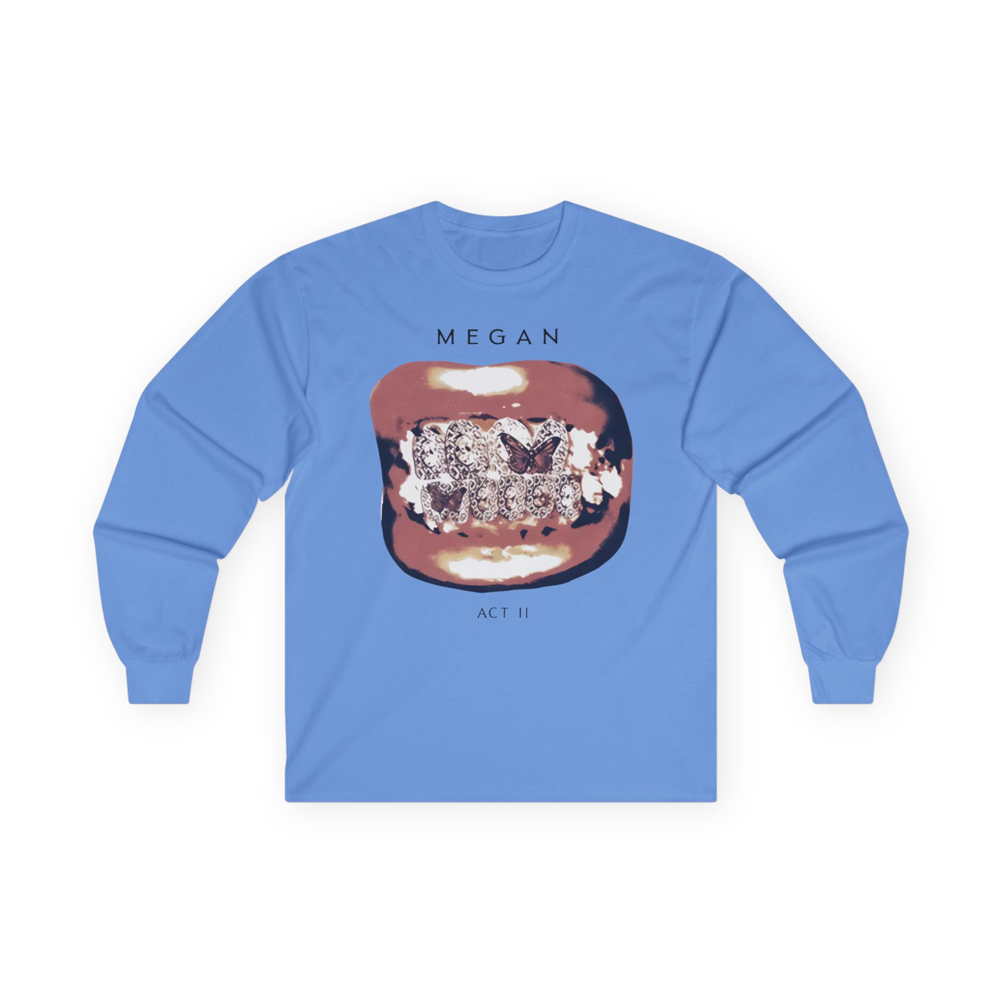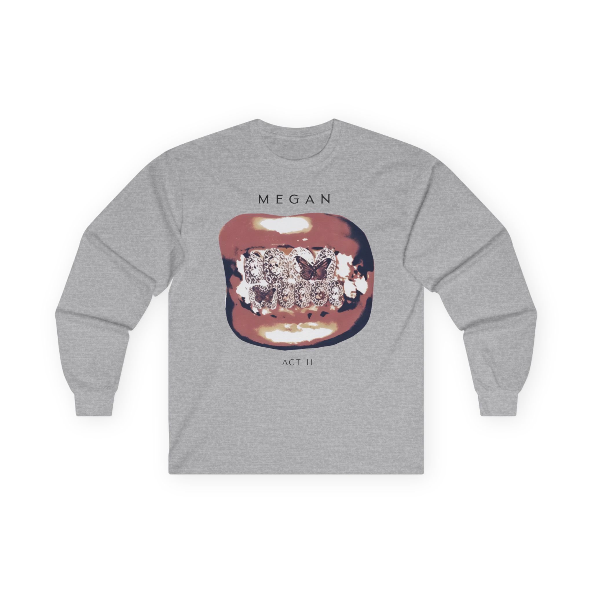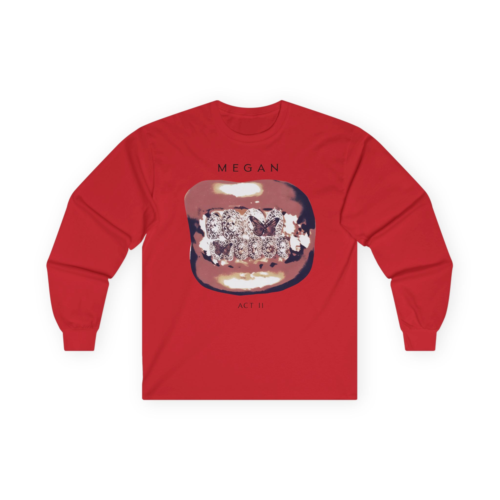 A bit more formal than a standard-issue t-shirt, the Megan Thee Stallion Act II Grillz ultra cotton long sleeve tee is a clear comfort winner. The sleeves also act as a nice frame. There are no side seams. The shoulders are taped for improved durability. This makes for a good fitting around the shoulders and neck. The cotton used for these shirts is environmentally friendly.
