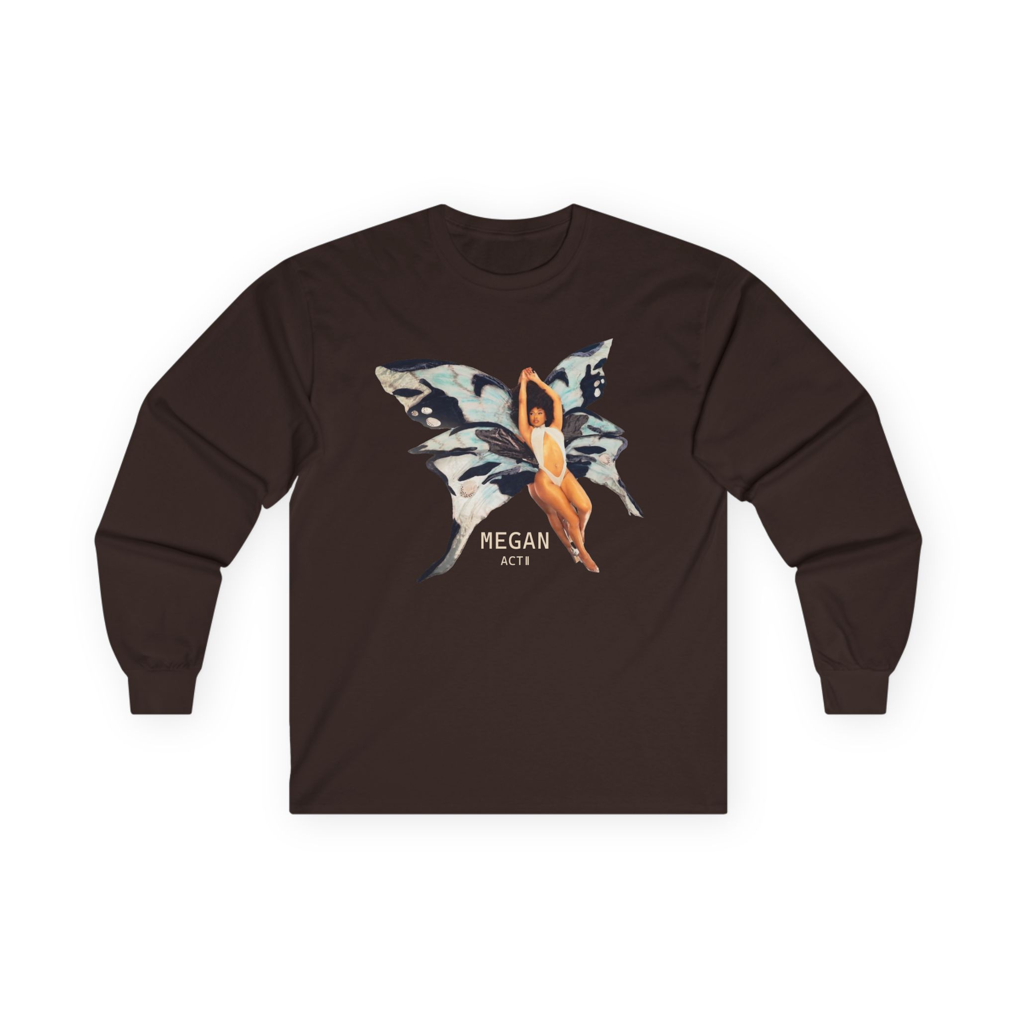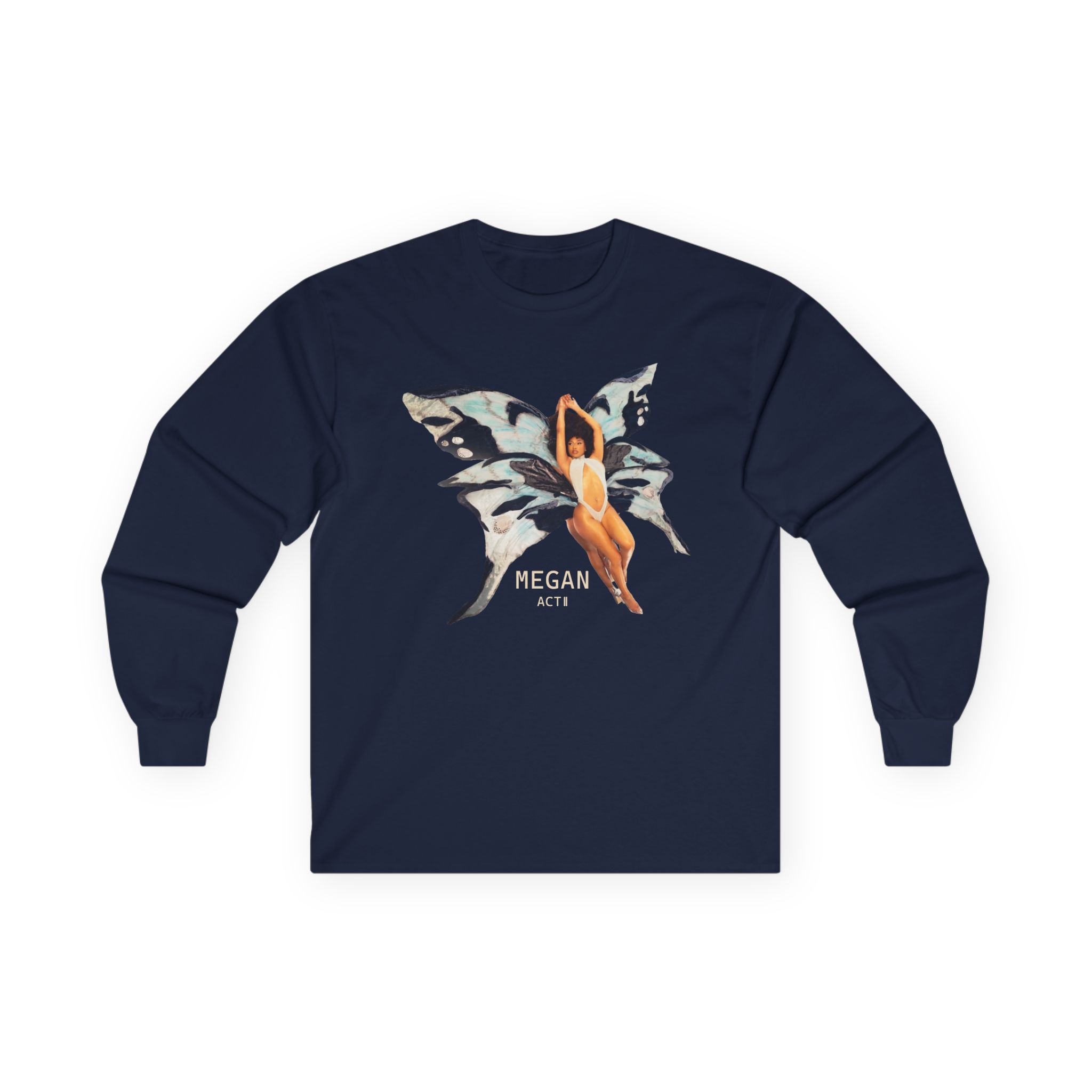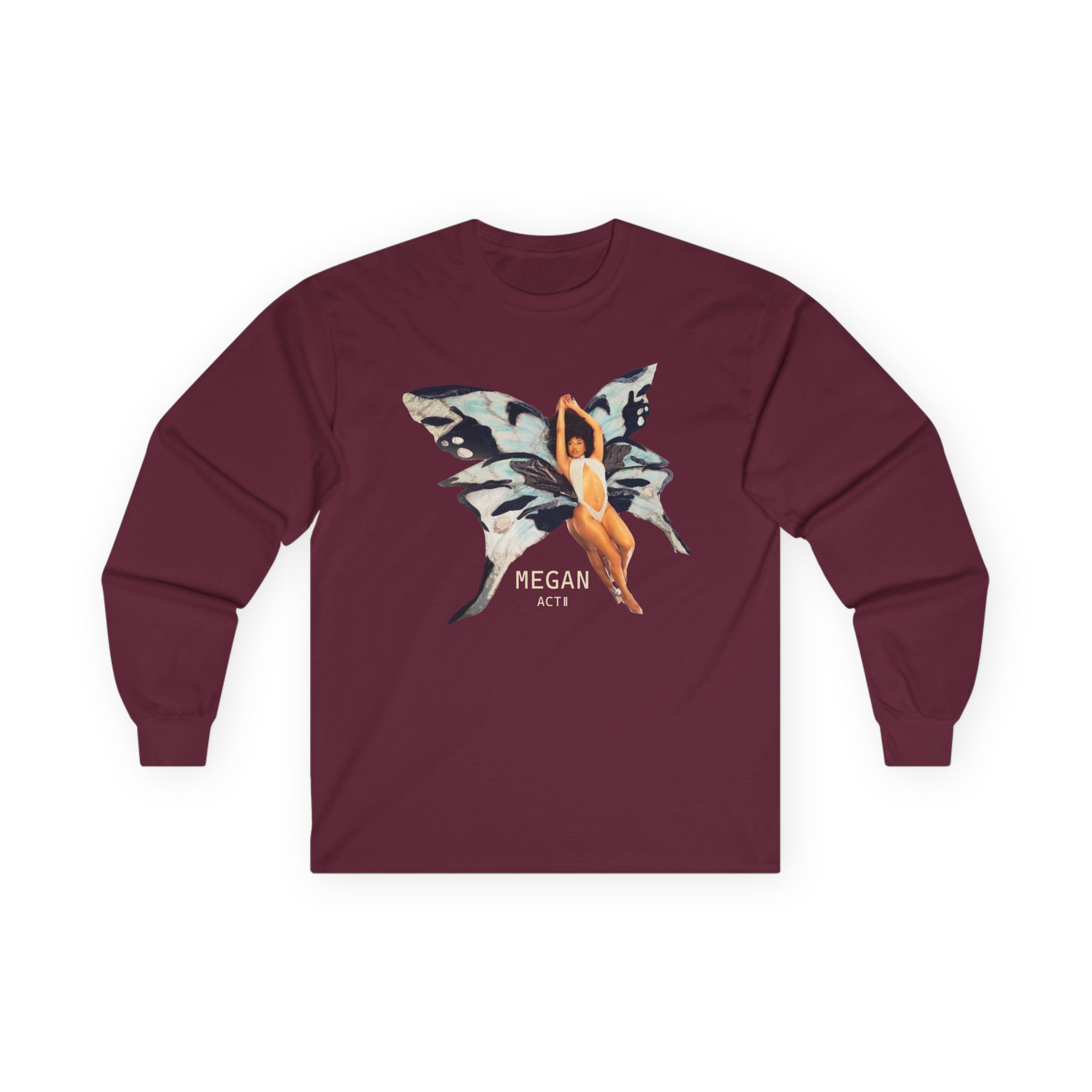 A bit more formal than a standard-issue t-shirt, the Megan Thee Stallion Butterfly ultra cotton long sleeve tee is a clear comfort winner. The sleeves also act as a nice frame. There are no side seams. The shoulders are taped for improved durability. This makes for a good fitting around the shoulders and neck. The cotton used for these shirts is environmentally friendly.