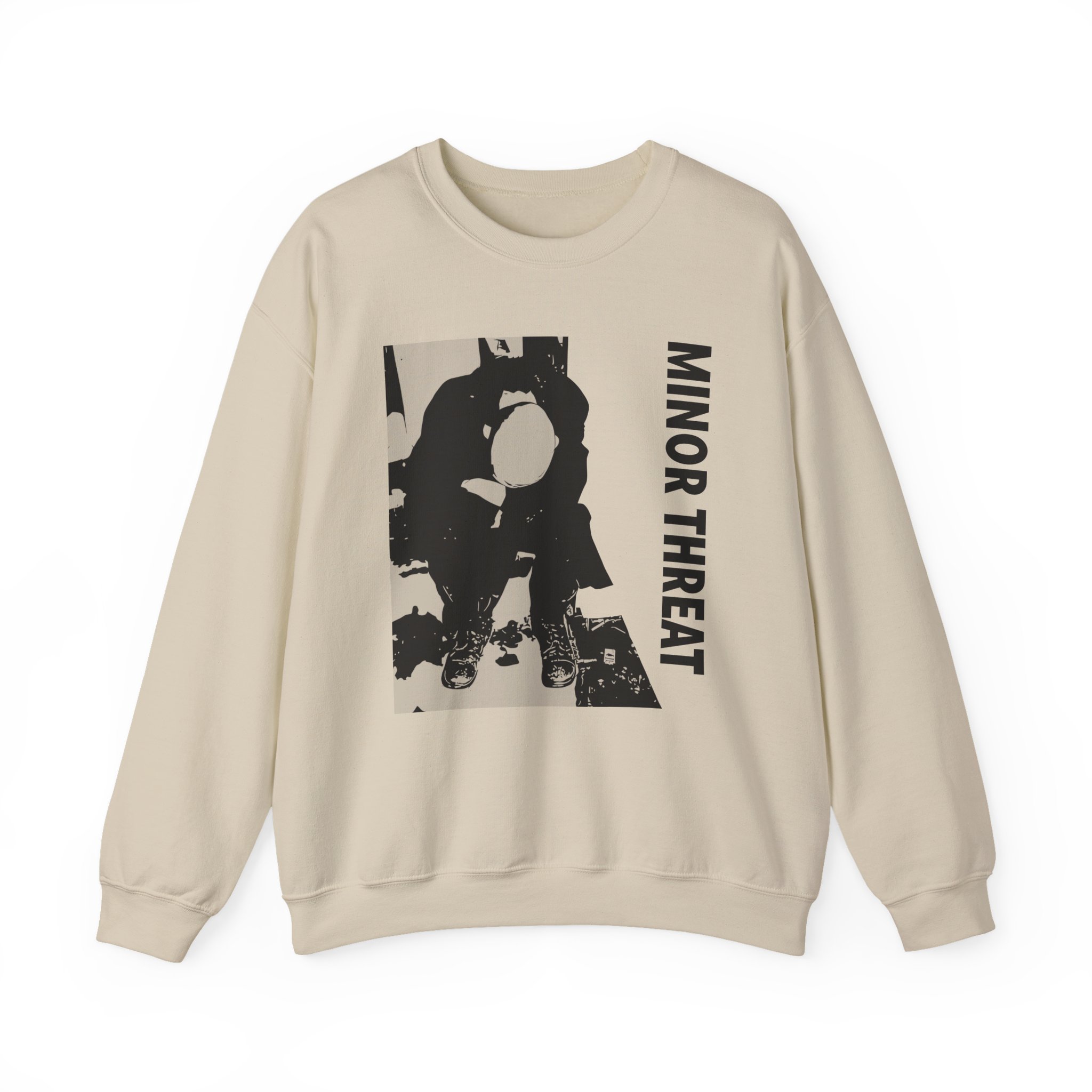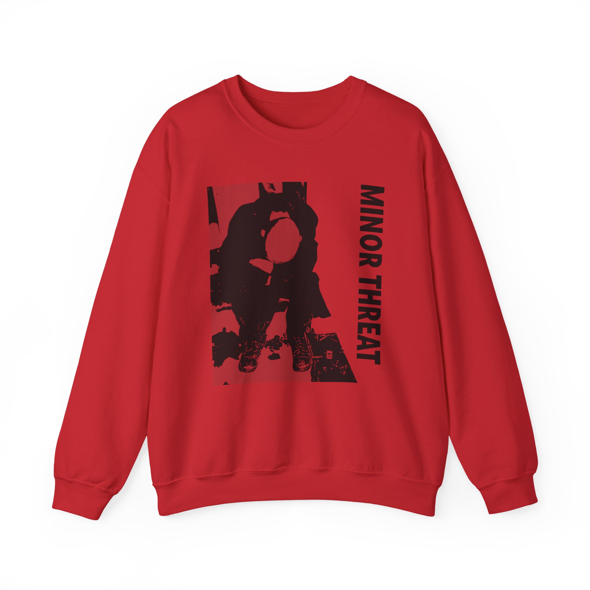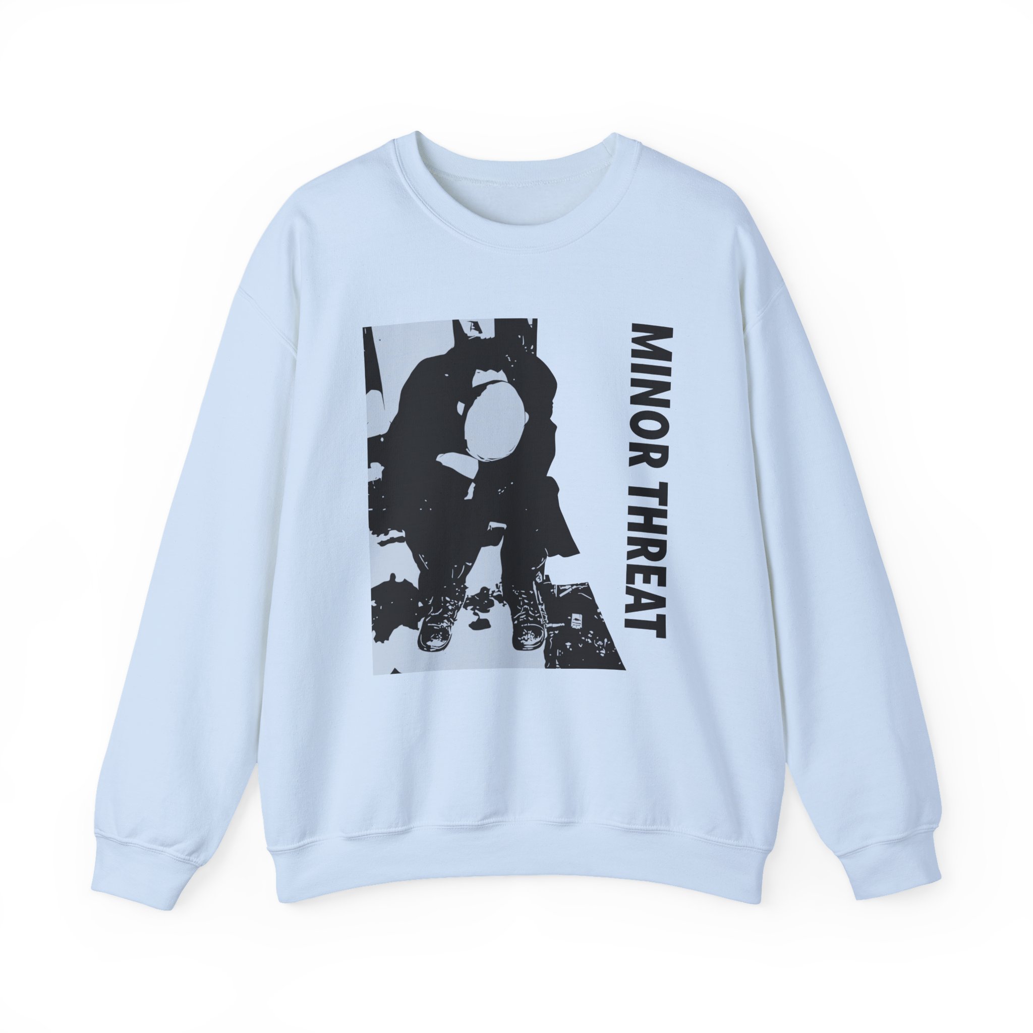 Ideal for any situation, a Minor Threat Lp unisex heavy blend crewneck sweatshirt is pure comfort. These garments are made from polyester and cotton. This combination helps designs come out looking fresh and beautiful. The collar is ribbed knit, so it retains its shape even after washing. There are no itchy side seams on these sweaters.