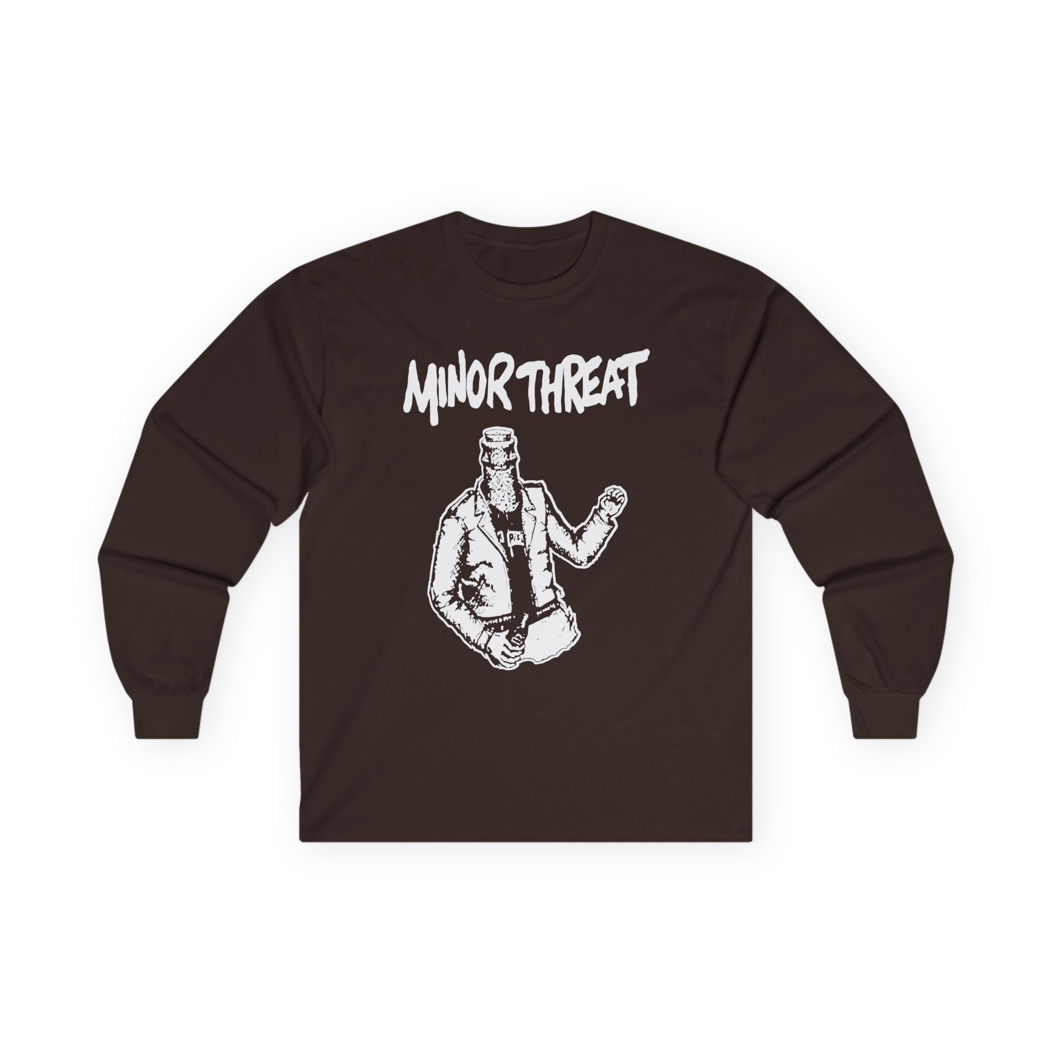 A bit more formal than a standard-issue t-shirt, the Minor Threat Minor Threat Bottled Violence Punk ultra cotton long sleeve tee is a clear comfort winner. The sleeves also act as a nice frame. There are no side seams. The shoulders are taped for improved durability. This makes for a good fitting around the shoulders and neck. The cotton used for these shirts is environmentally friendly.