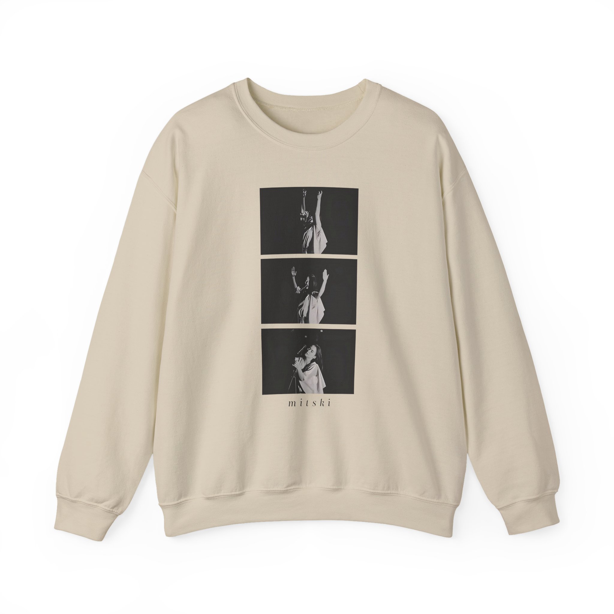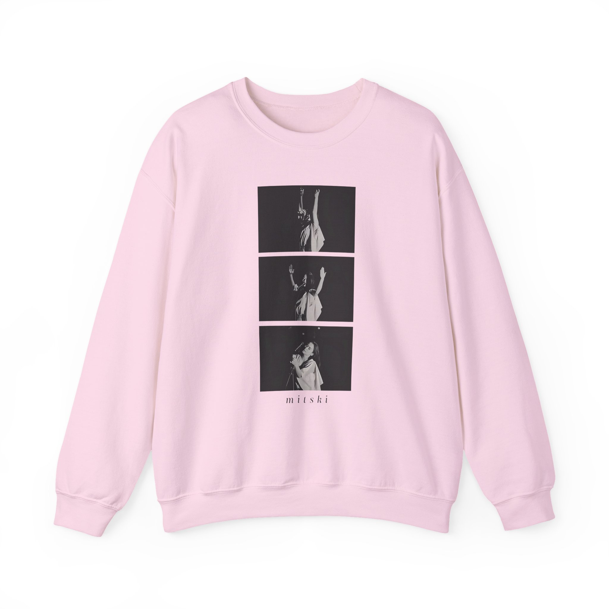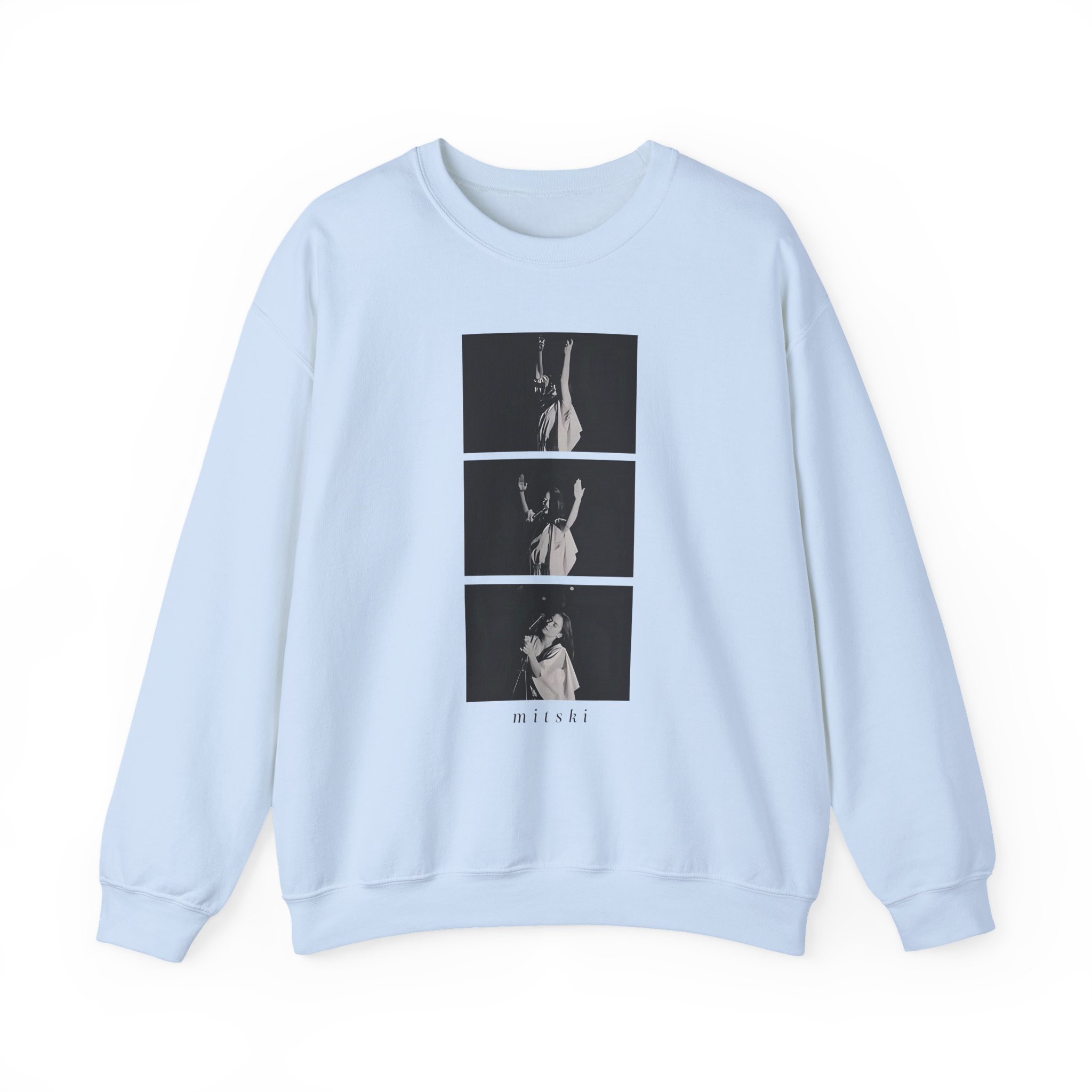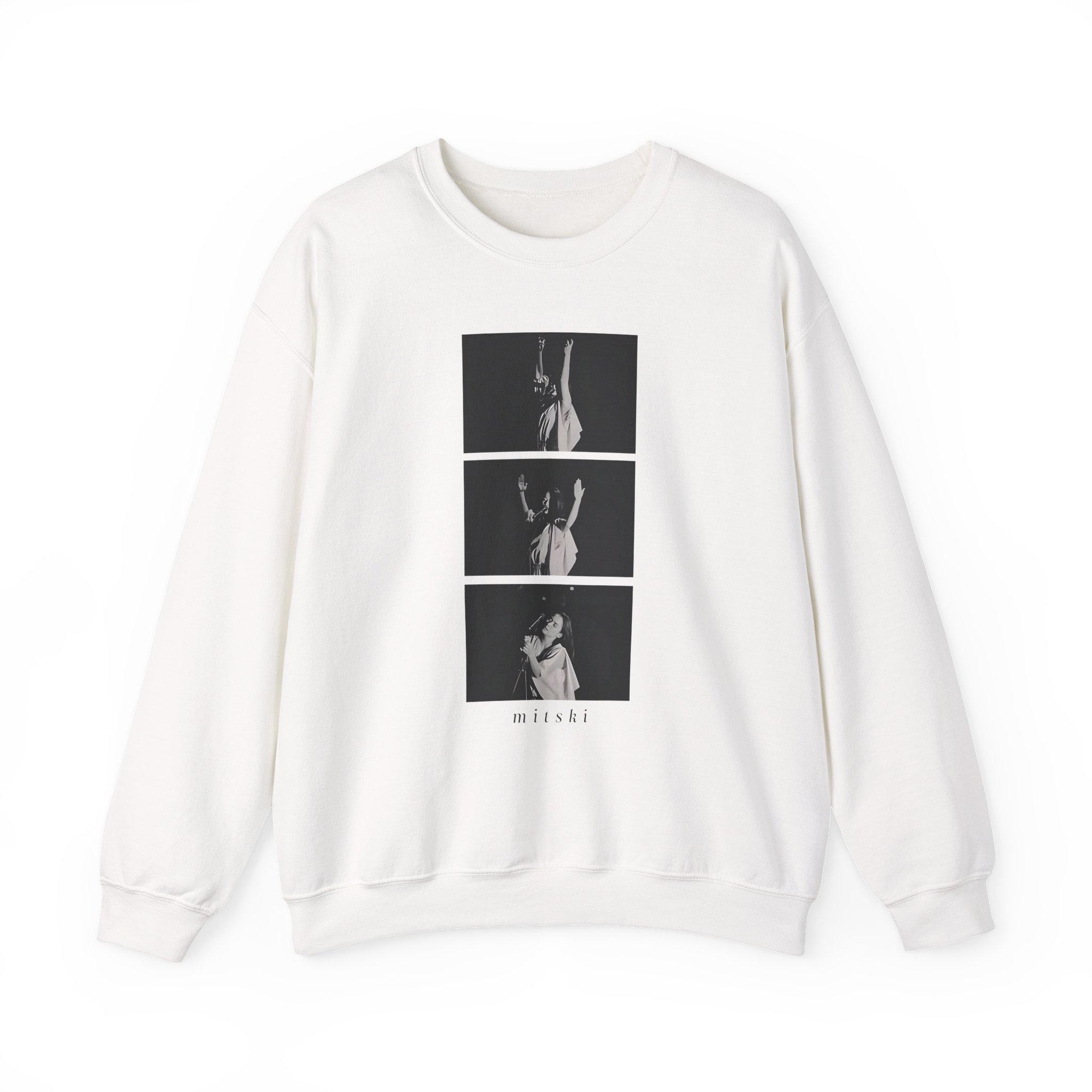 Ideal for any situation, a Mitski Photo Sequence unisex heavy blend crewneck sweatshirt is pure comfort. These garments are made from polyester and cotton. This combination helps designs come out looking fresh and beautiful. The collar is ribbed knit, so it retains its shape even after washing. There are no itchy side seams on these sweaters.