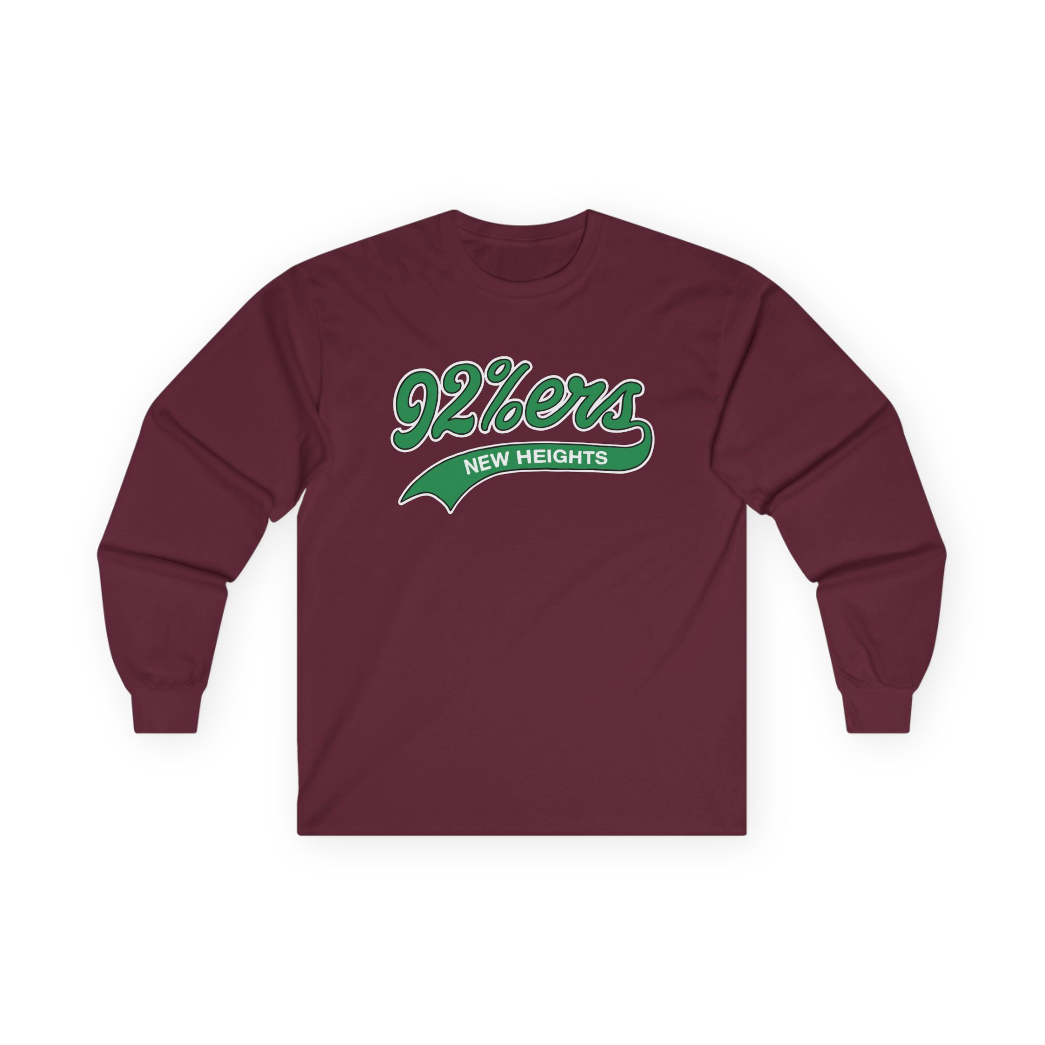 A bit more formal than a standard-issue t-shirt, the New Heights 92%ers ultra cotton long sleeve tee is a clear comfort winner. The sleeves also act as a nice frame. There are no side seams. The shoulders are taped for improved durability. This makes for a good fitting around the shoulders and neck. The cotton used for these shirts is environmentally friendly.