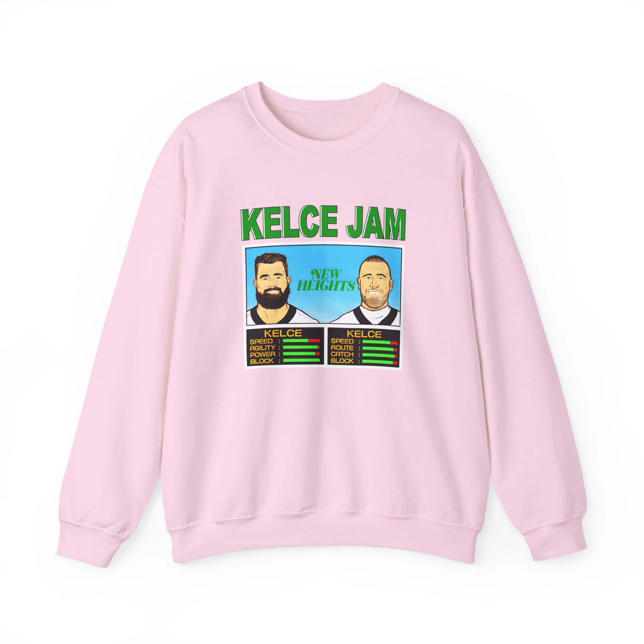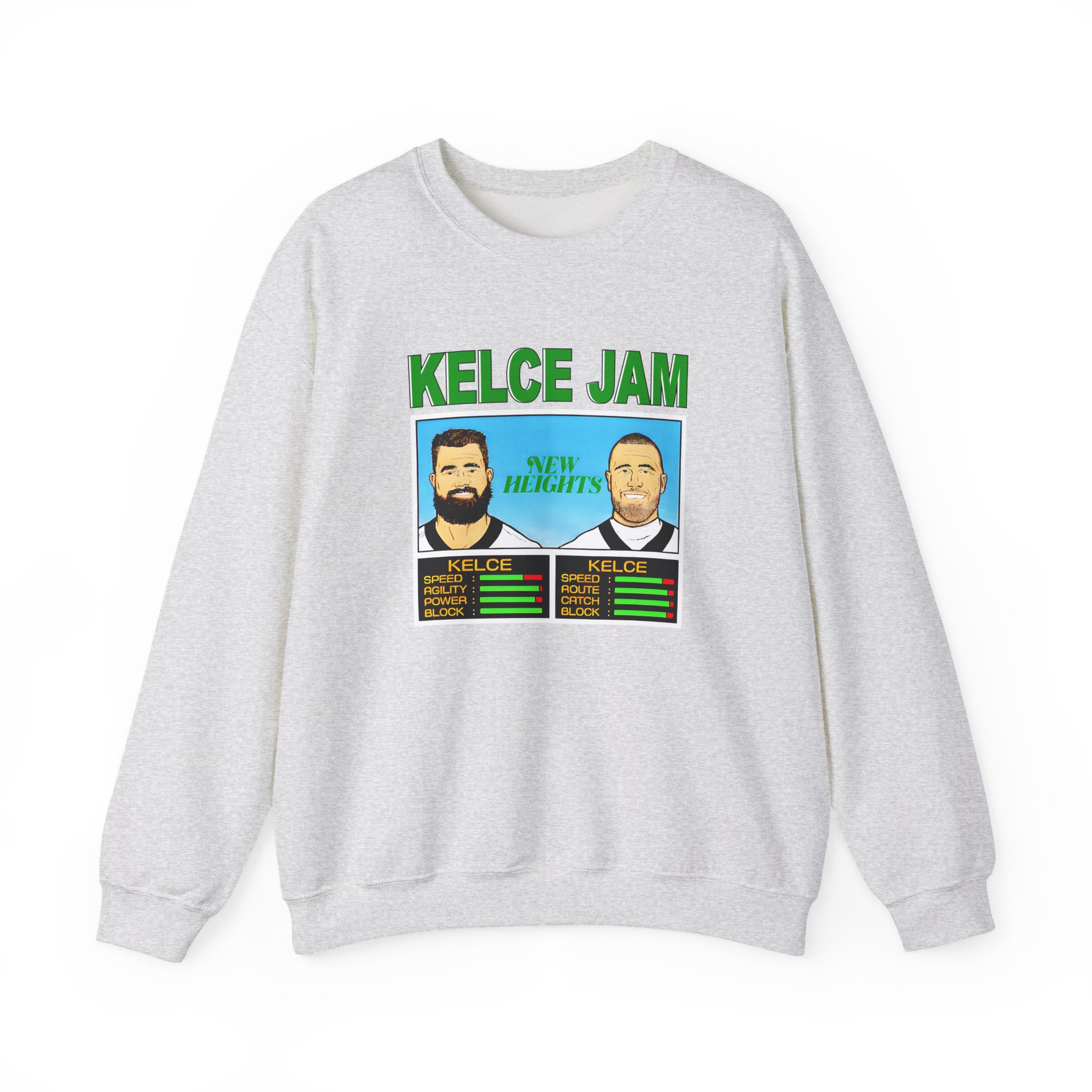 Ideal for any situation, a New Heights Kelce Jam Jason And Travis unisex heavy blend crewneck sweatshirt is pure comfort. These garments are made from polyester and cotton. This combination helps designs come out looking fresh and beautiful. The collar is ribbed knit, so it retains its shape even after washing. There are no itchy side seams on these sweaters.