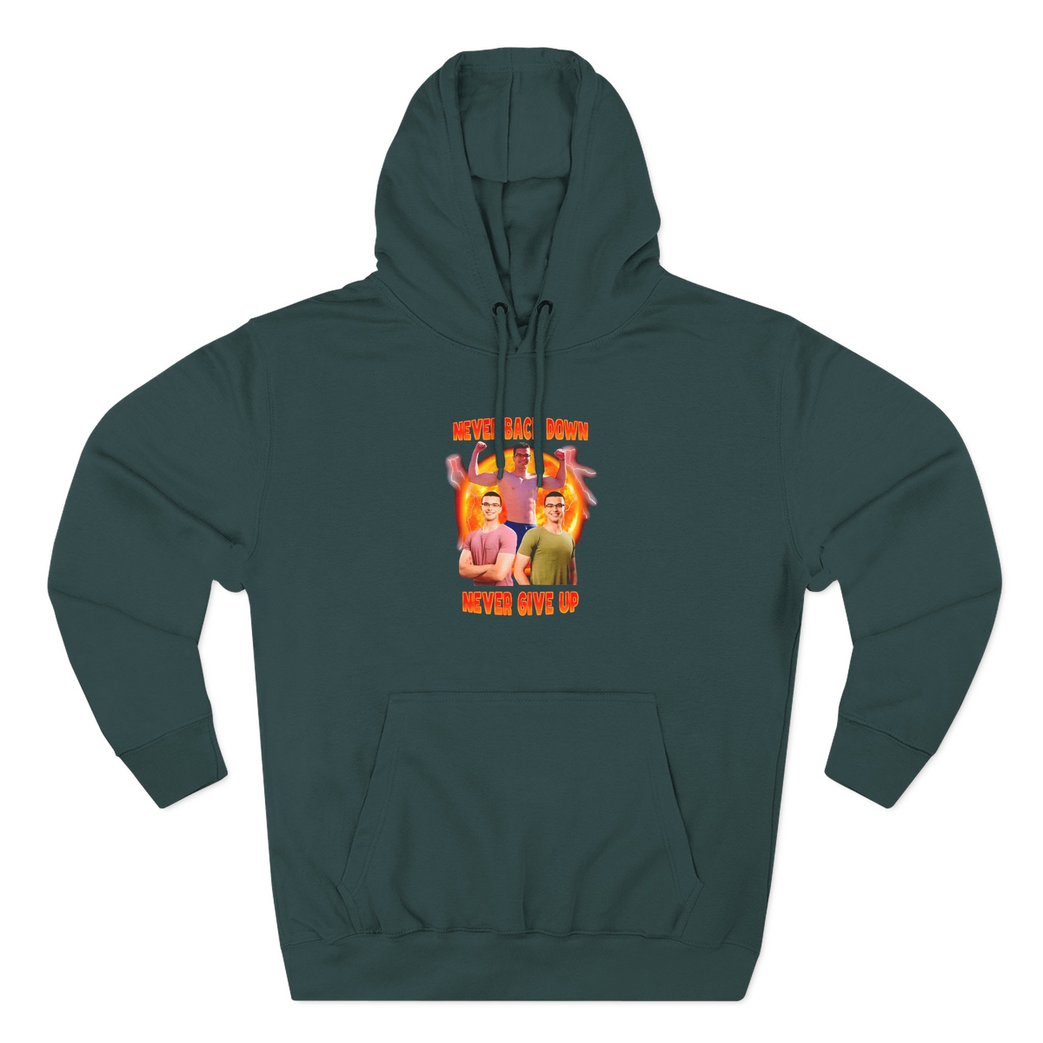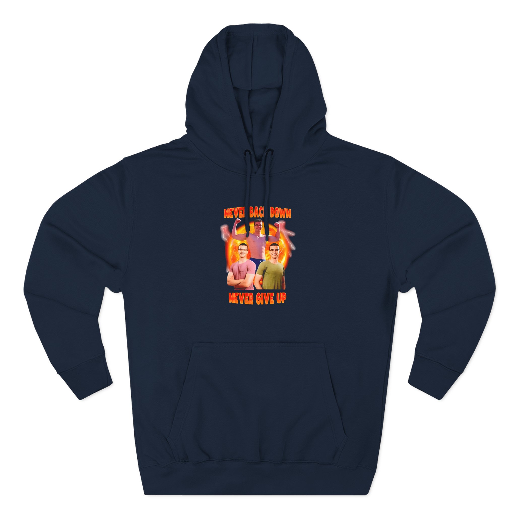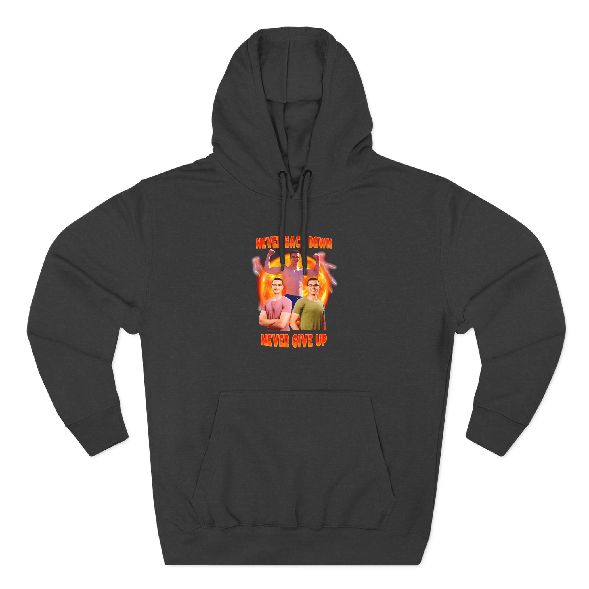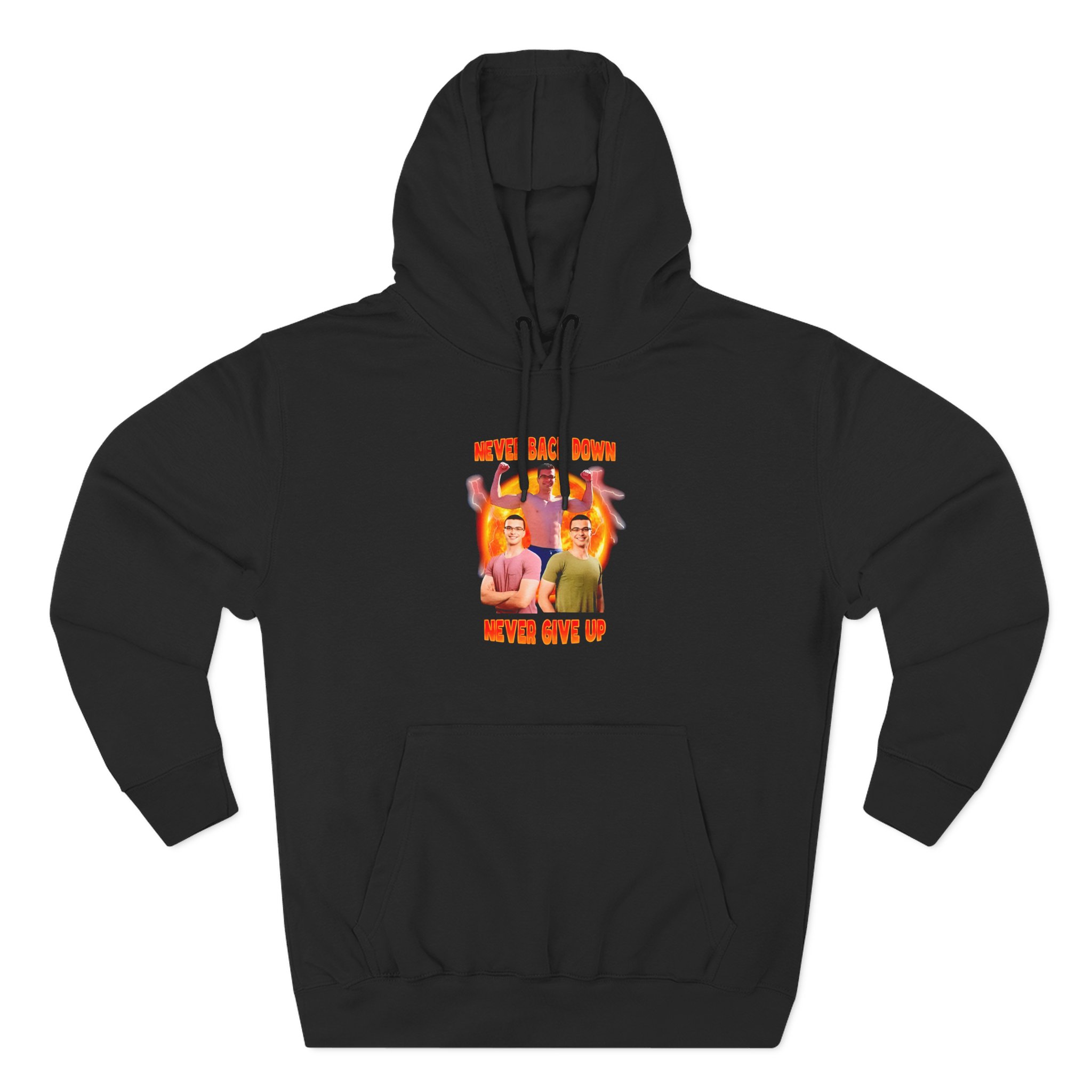 Beat the cold with this Nick Eh 30 Never Back Down Never Give Up premium pullover hoodie that’s just the right layer of warm and cozy. Made with three-panel fleece lining, this pullover is double stitched for durability and roomy. Pick one in your favorite color to match your style.