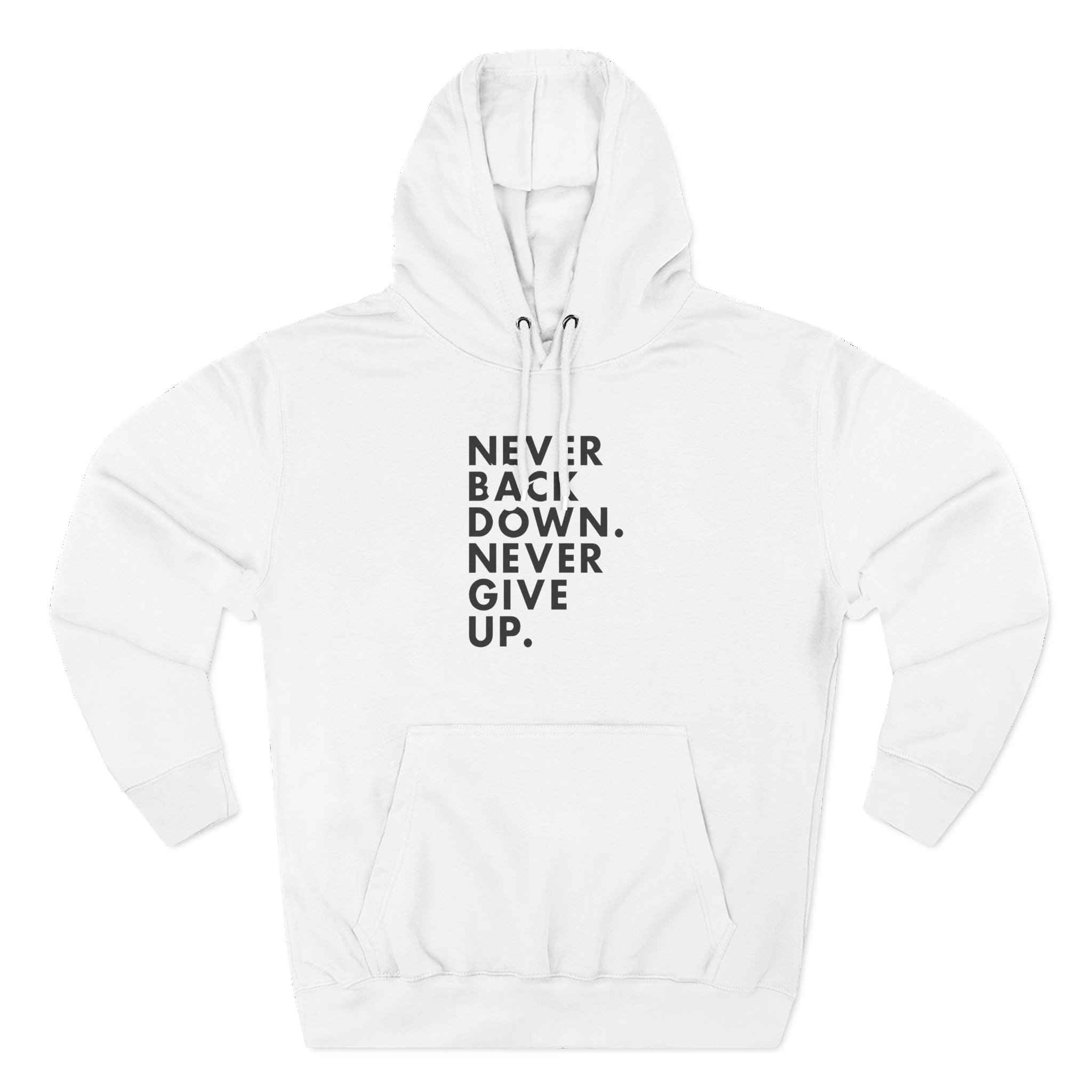 Beat the cold with this Nick Eh 30 Never Back Down Never Give Up premium pullover hoodie that’s just the right layer of warm and cozy. Made with three-panel fleece lining, this pullover is double stitched for durability and roomy. Pick one in your favorite color to match your style.