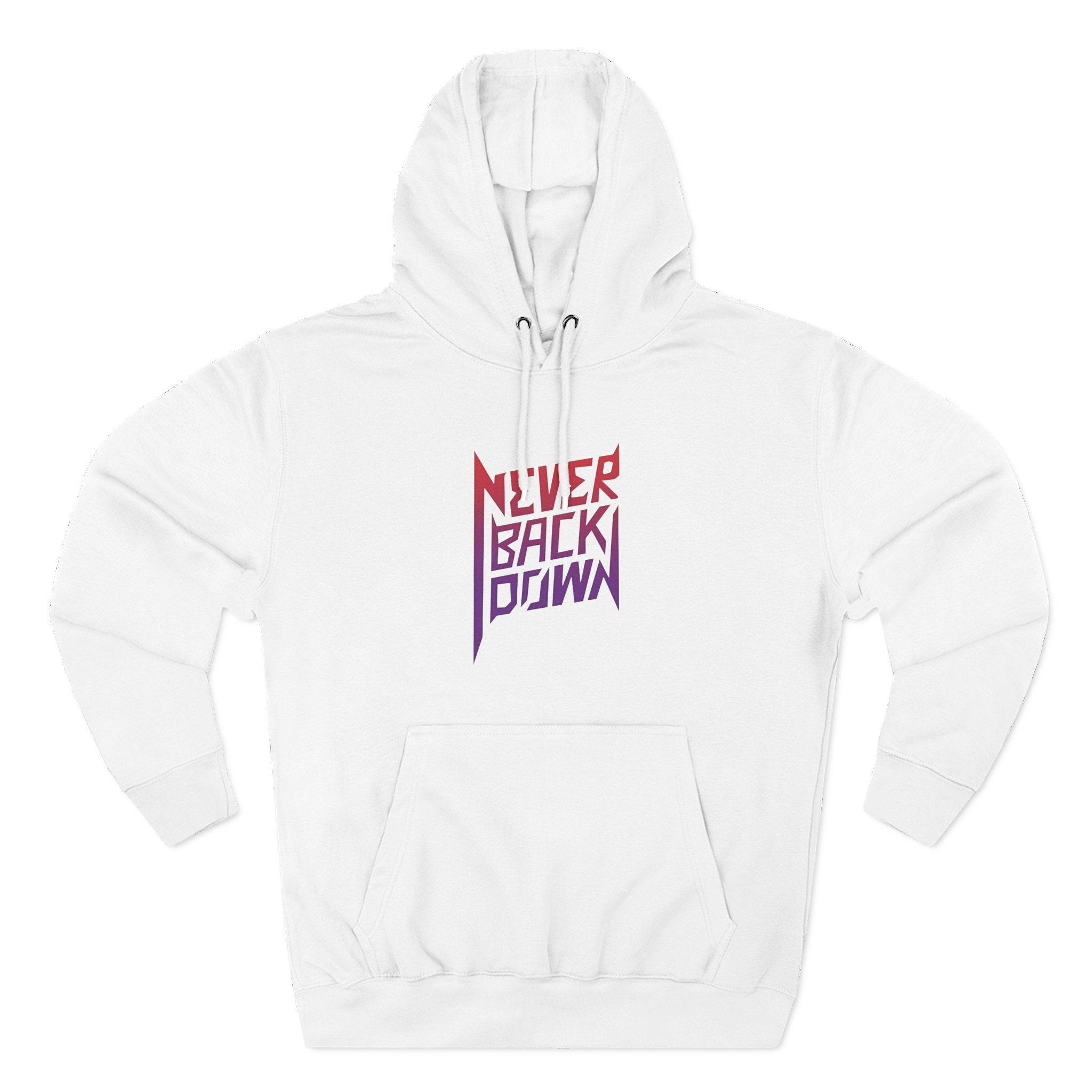Beat the cold with this Nick Eh 30 Never Back Down premium pullover hoodie that’s just the right layer of warm and cozy. Made with three-panel fleece lining, this pullover is double stitched for durability and roomy. Pick one in your favorite color to match your style.
